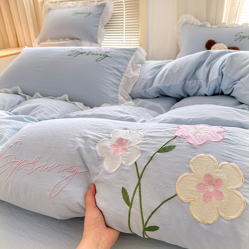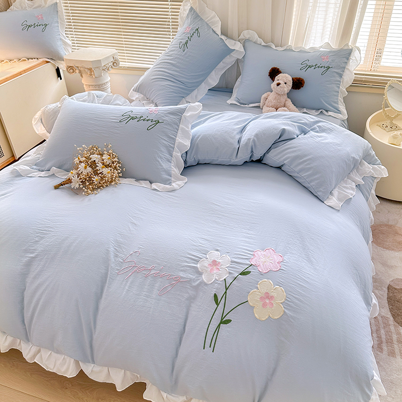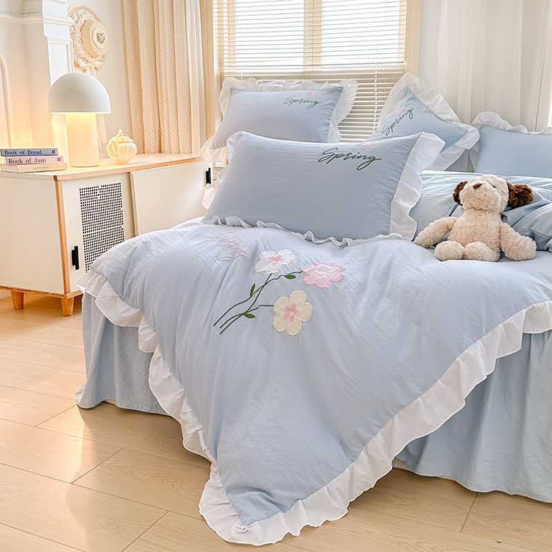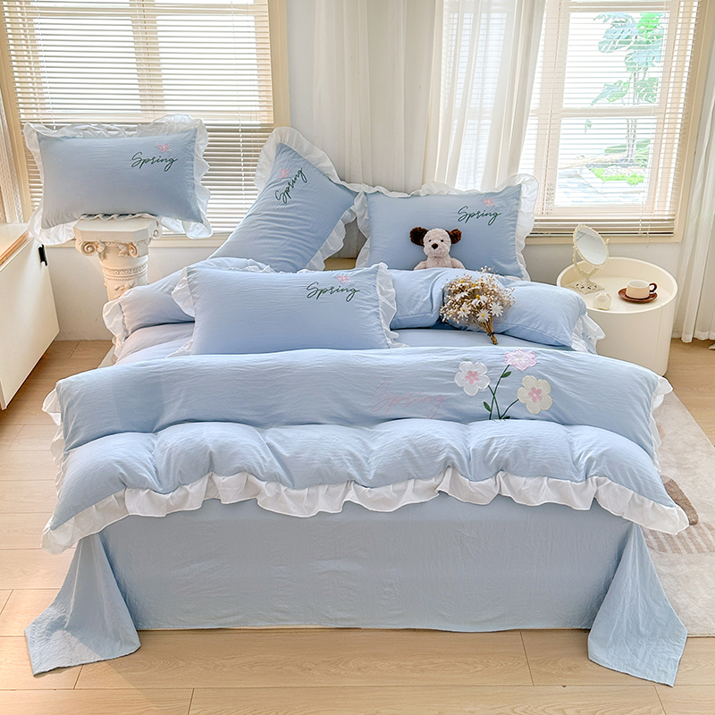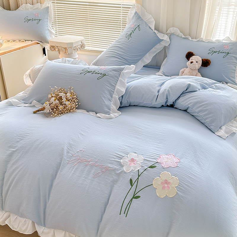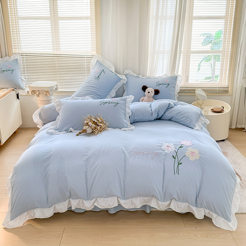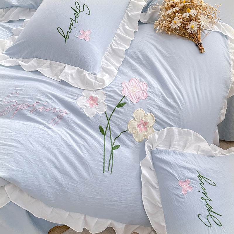当前位置: 91家纺网 > 商品网购 > 床品套件 > 四件套 > 其它四件套 > 家贝爱 2025新款花边刺绣四件套繁朵系列 繁朵-兰