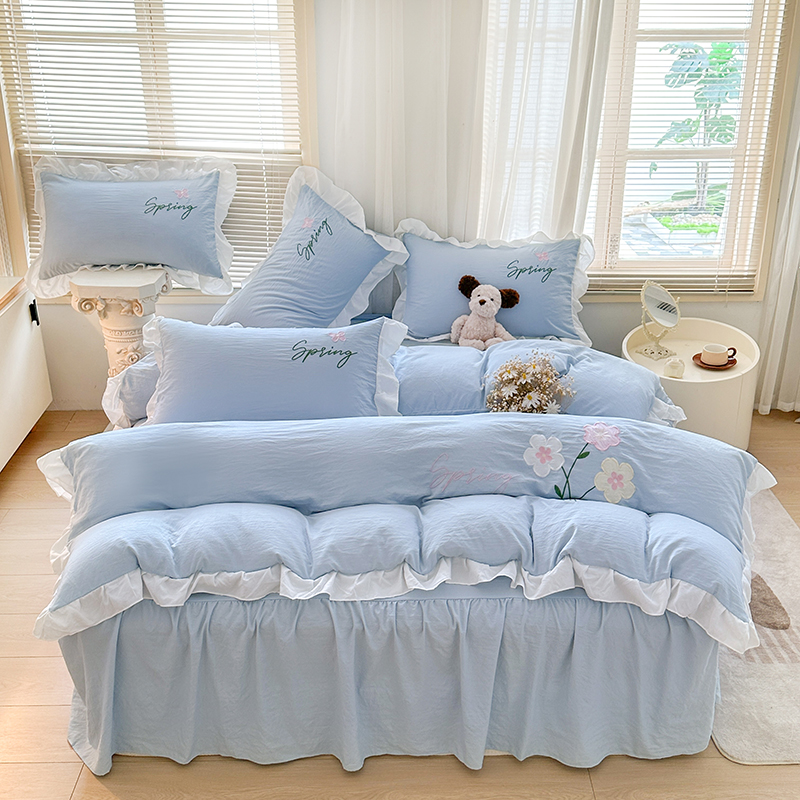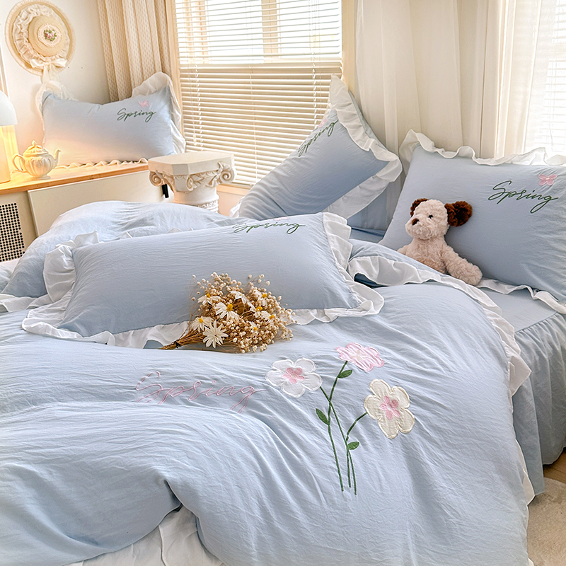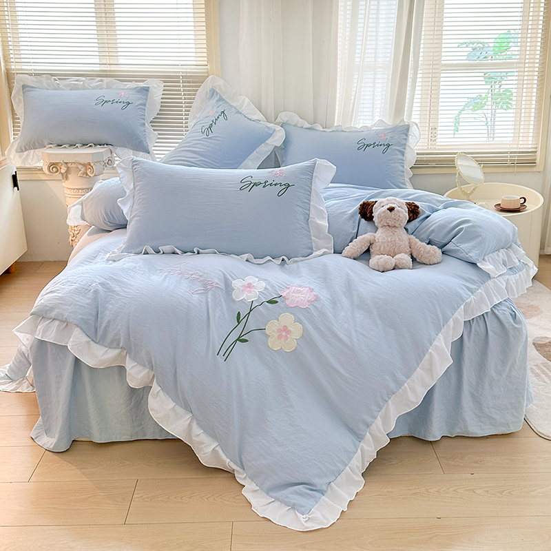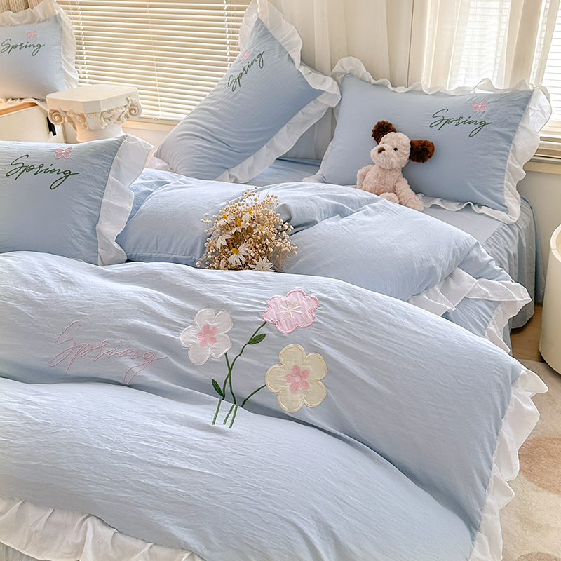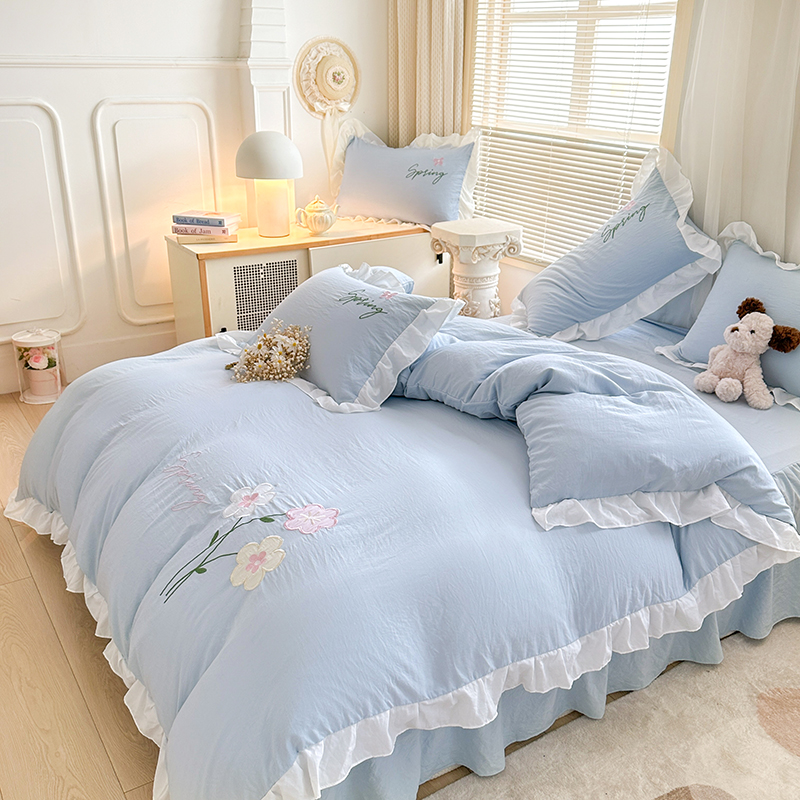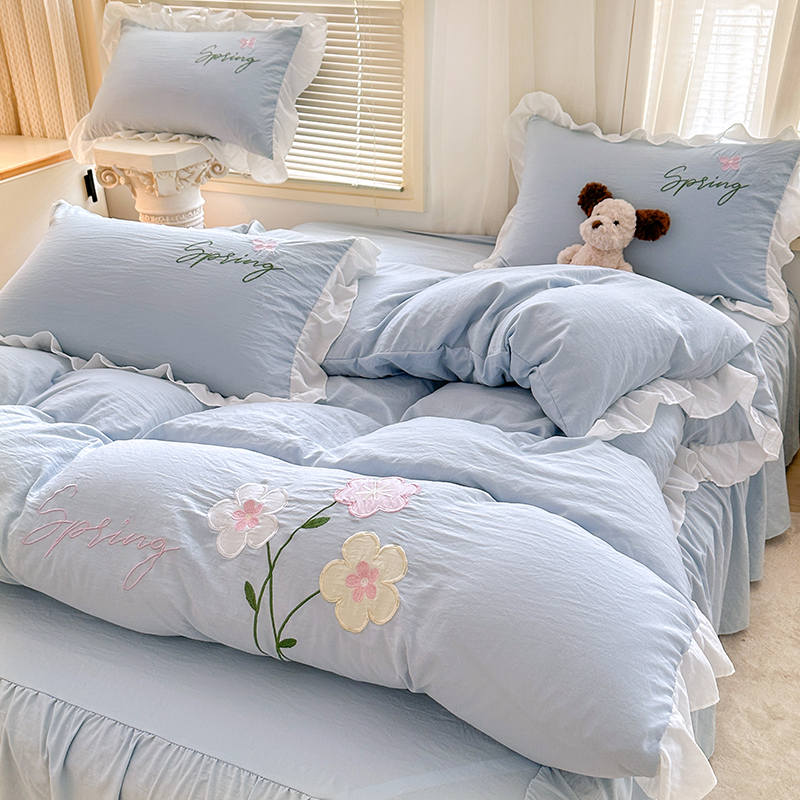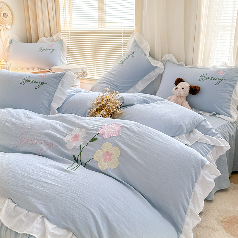 当前位置: 91家纺网 > 商品网购 > 床品套件 > 四件套 > 其它四件套 > 家贝爱 2025新款花边刺绣四件套繁朵系列 繁朵-兰