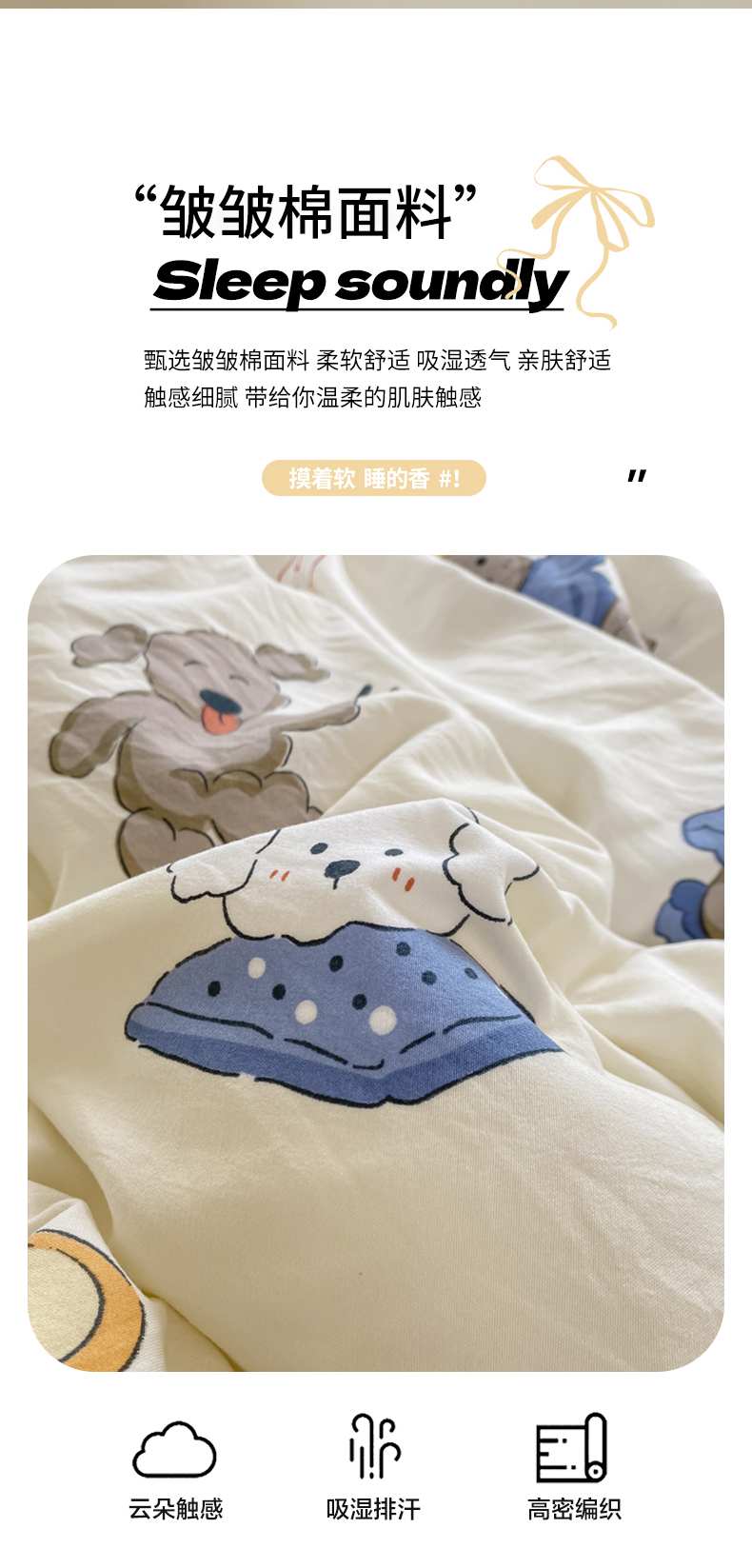 【提供买家秀】2025直播云感皱皱棉四件套水洗棉小清新碎花简约风单品单被套 叛逃小狗