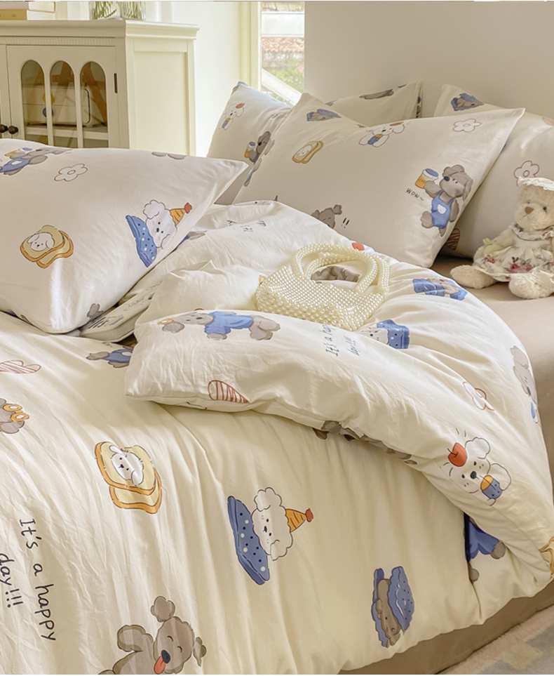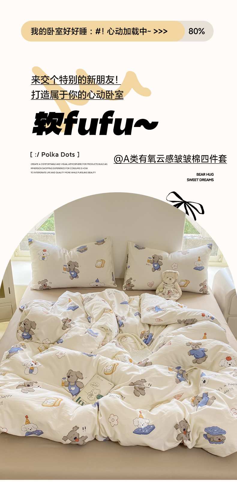 (总)【提供买家秀】2025直播云感皱皱棉四件套水洗棉简约风小碎花被套床笠三件套-叠拍图,一帘幽梦,波点白,蛋糕熊,繁花兔,繁华,馥芮白,馥芮蓝,好事橙双,玫瑰庄园,叛逃小狗,蜻蜓点水,同心结,童话森林,小桃糯糯,幸运狗,组合