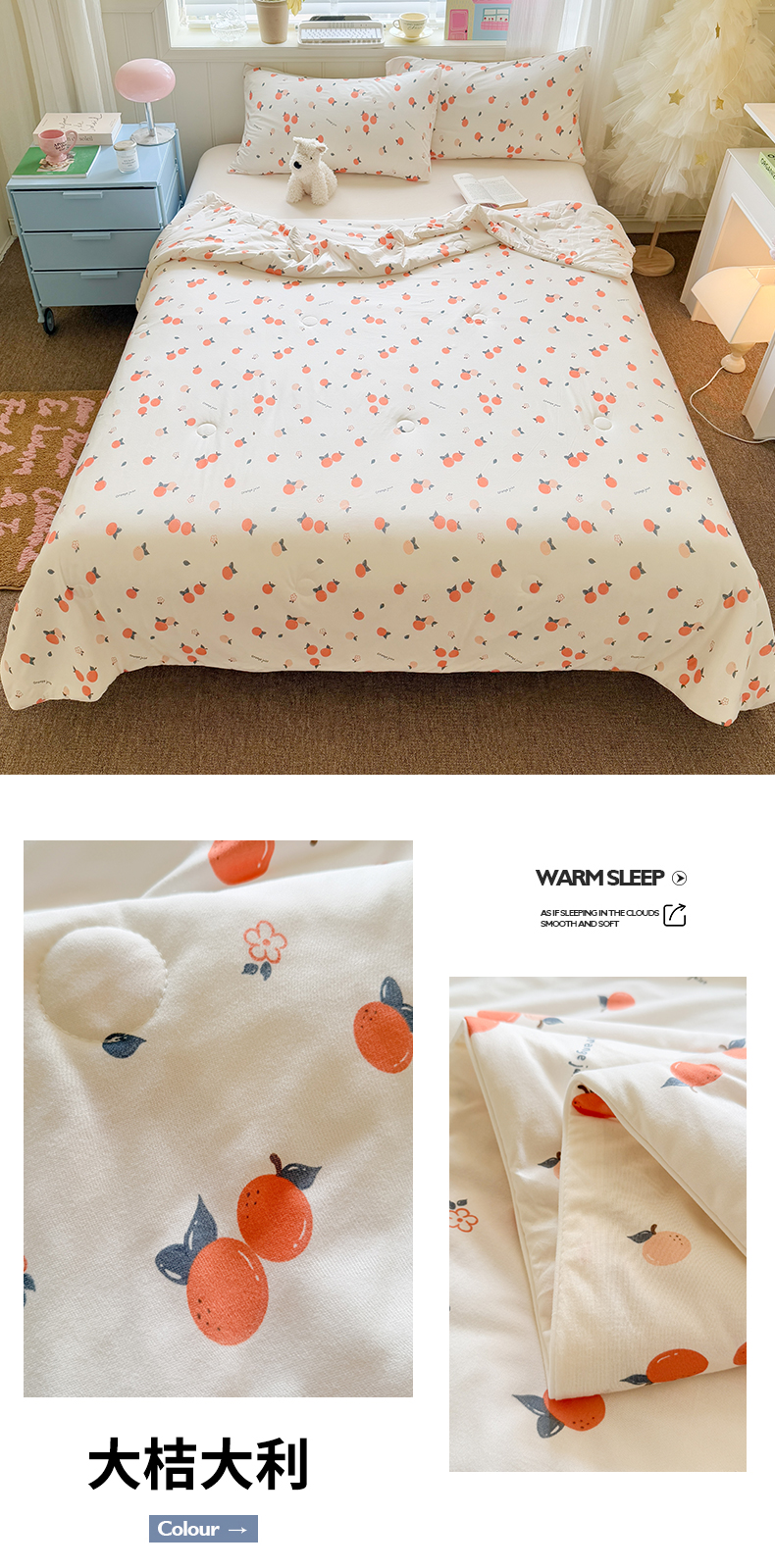 商品名称:名兮家居 2025新款针织棉夏凉被 大桔大利