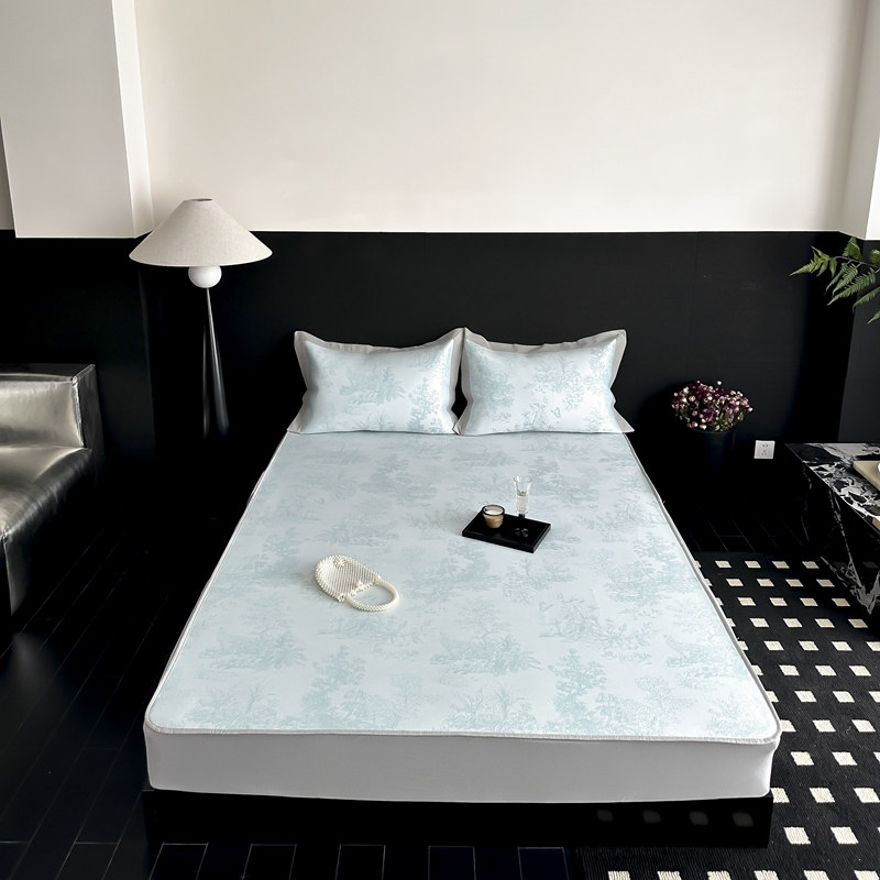 商品名称:三味舒屋 2025新款抗菌防螨凉感提花冰丝凉席席子-西雅图 西雅图绿床笠