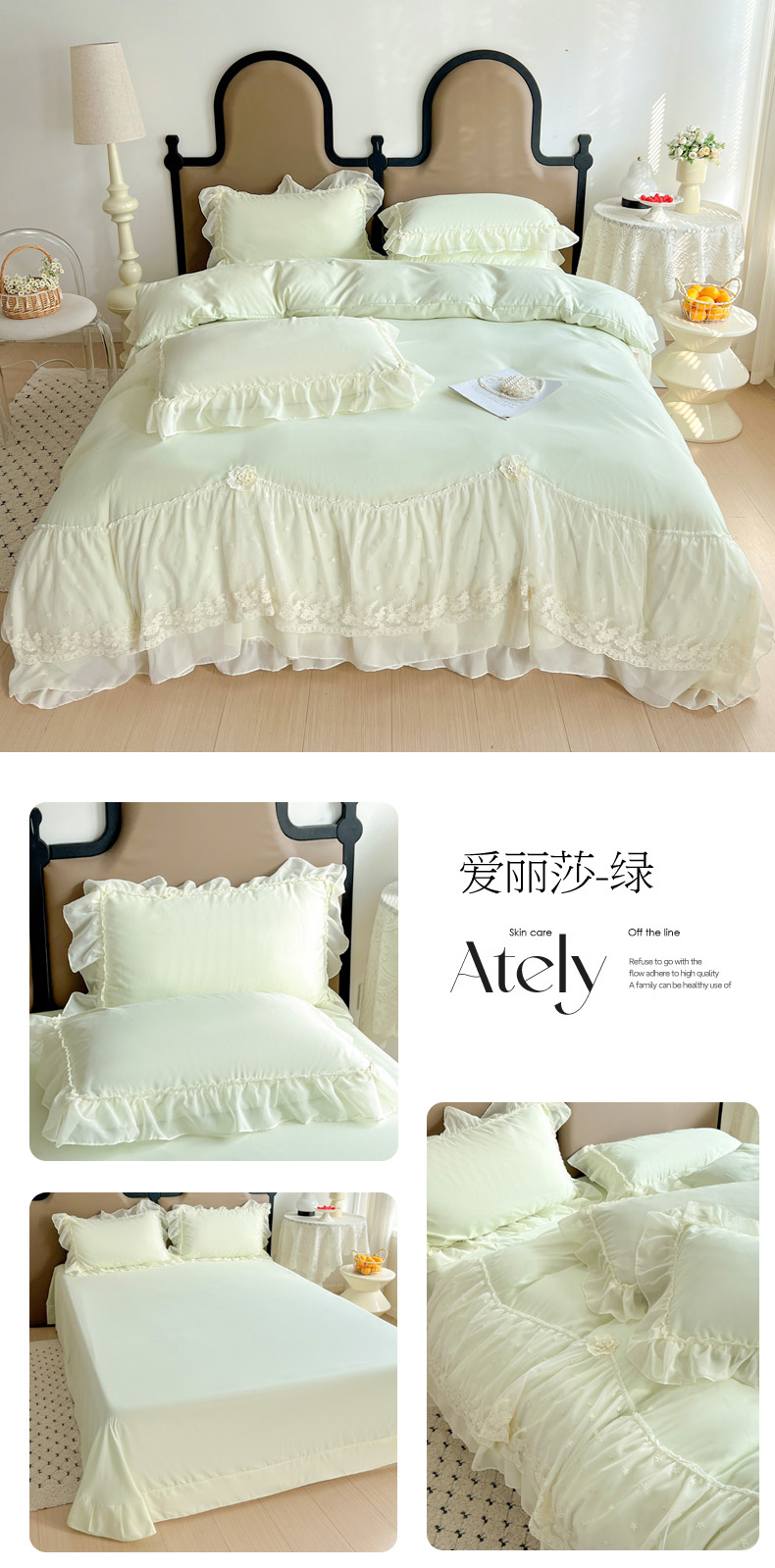 商品名称:艺玲家纺 2025新款糯小棉爱丽莎雪纺花边四件套 爱丽莎-绿
