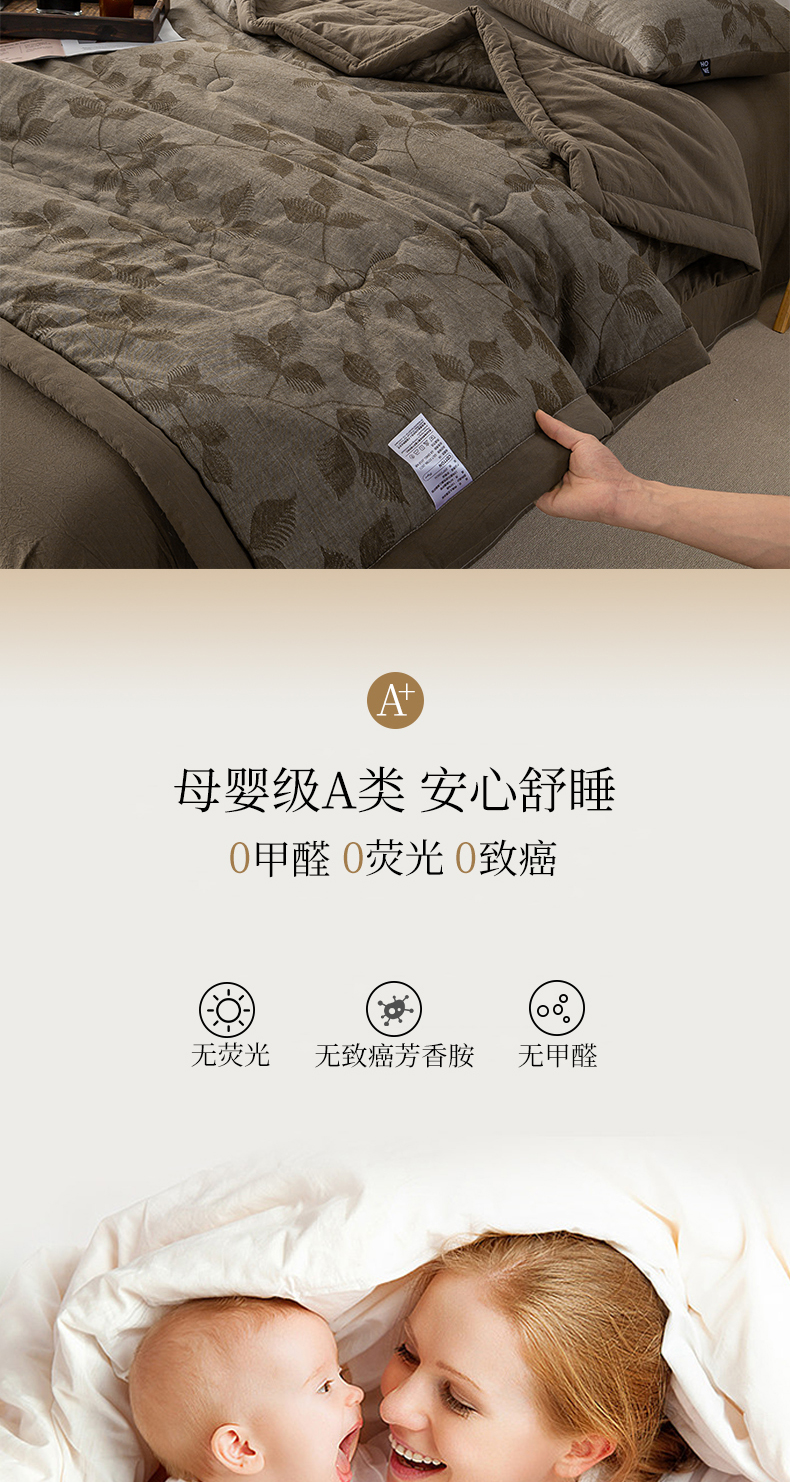 • 91家纺网 家纺一手货源 找家纺 恋人优选 2025新款樱花叶全棉提花夏被 樱花叶-咖