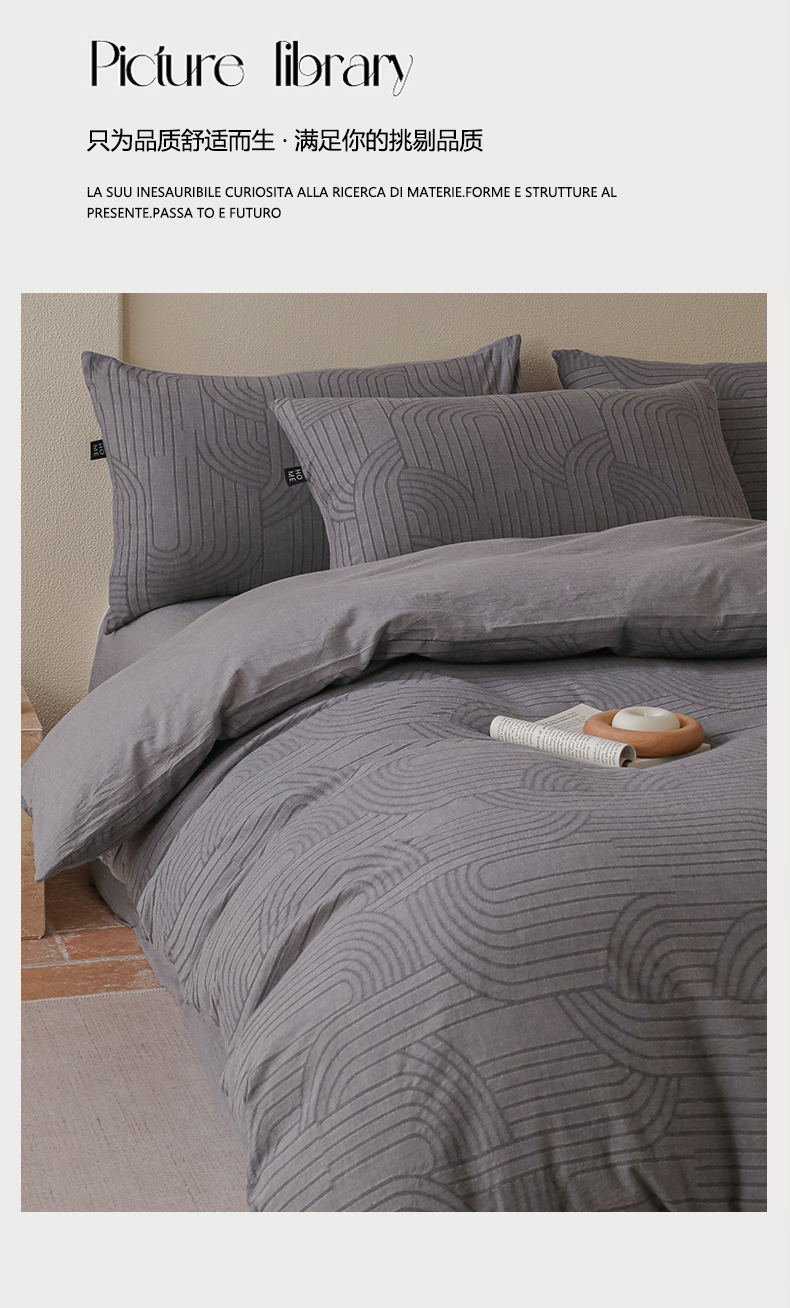 商品名称:恋人优选 2025新款浮光全棉提花四件套 浮光灰