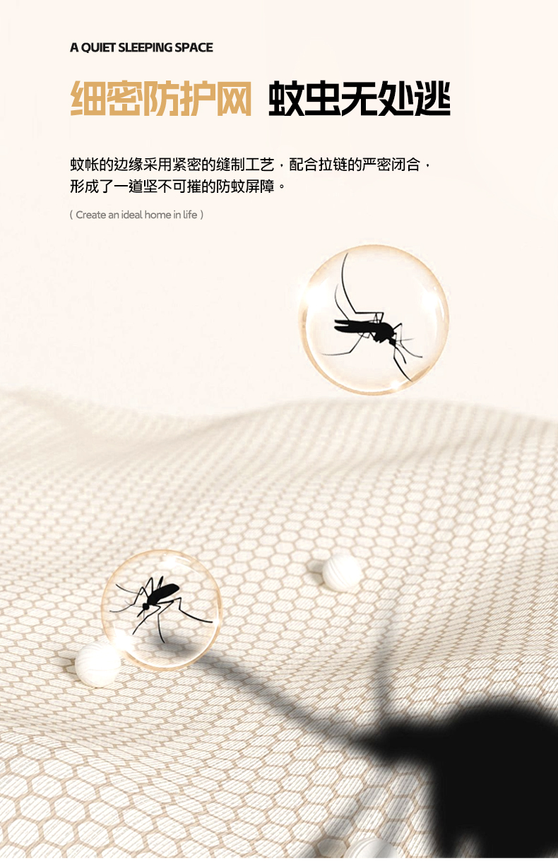 (总)冉美家纺 2025新款纯白色学生蚊帐拉链款,纯白