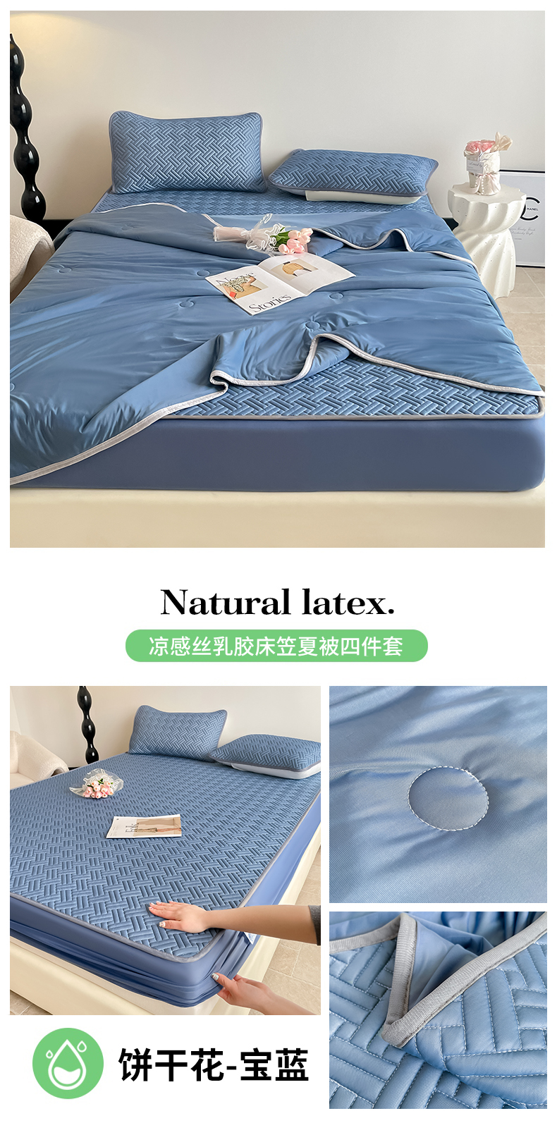 2025新款加厚乳胶床笠款经典纯色夏被套件 饼干花-宝蓝