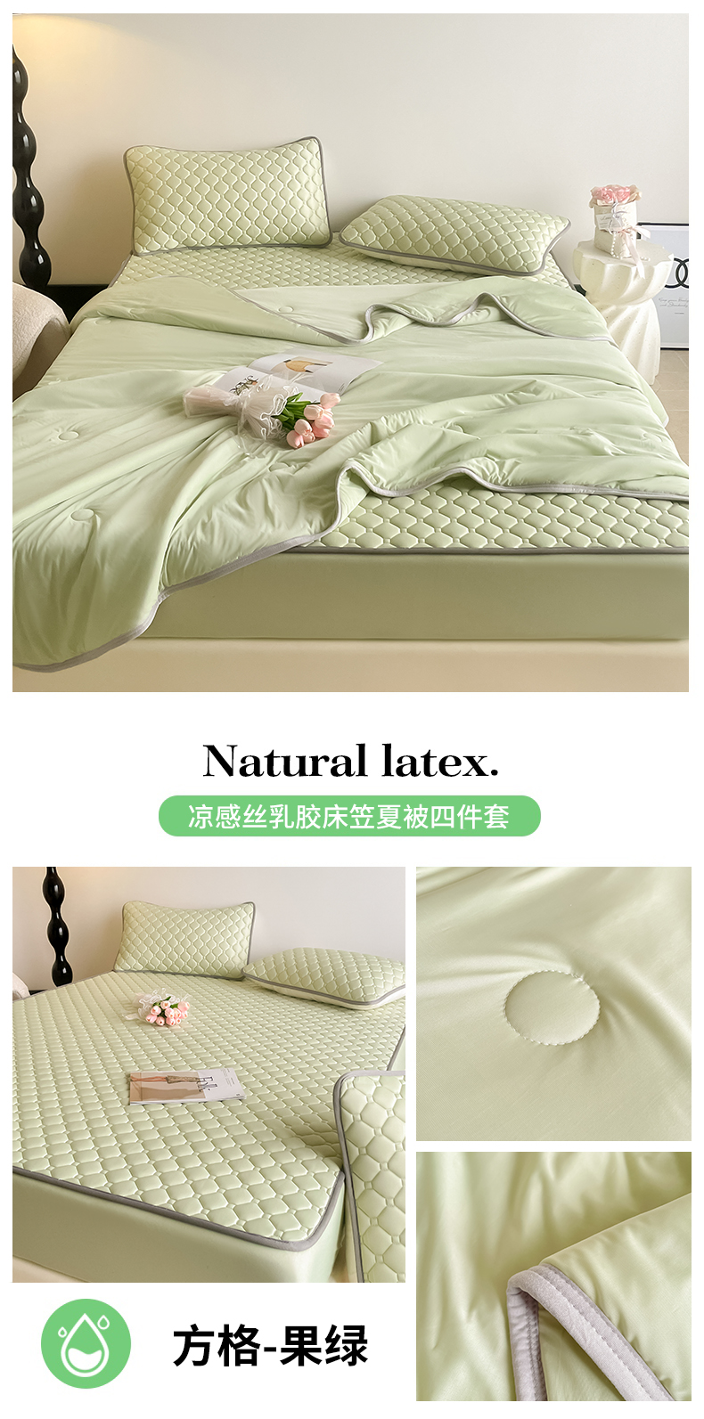 2025新款加厚乳胶床笠款经典纯色夏被套件 方格-果绿