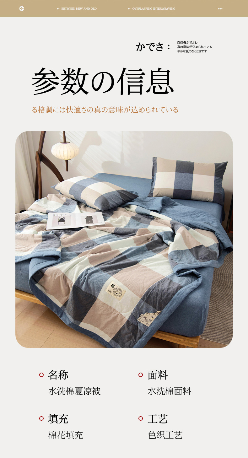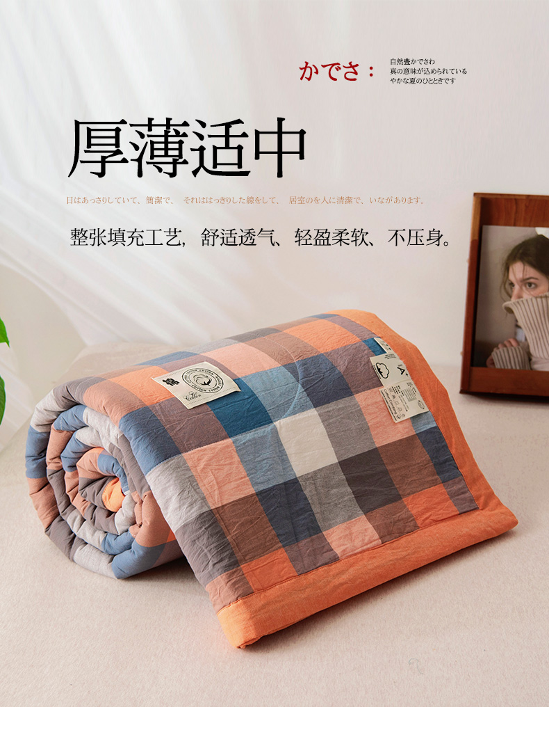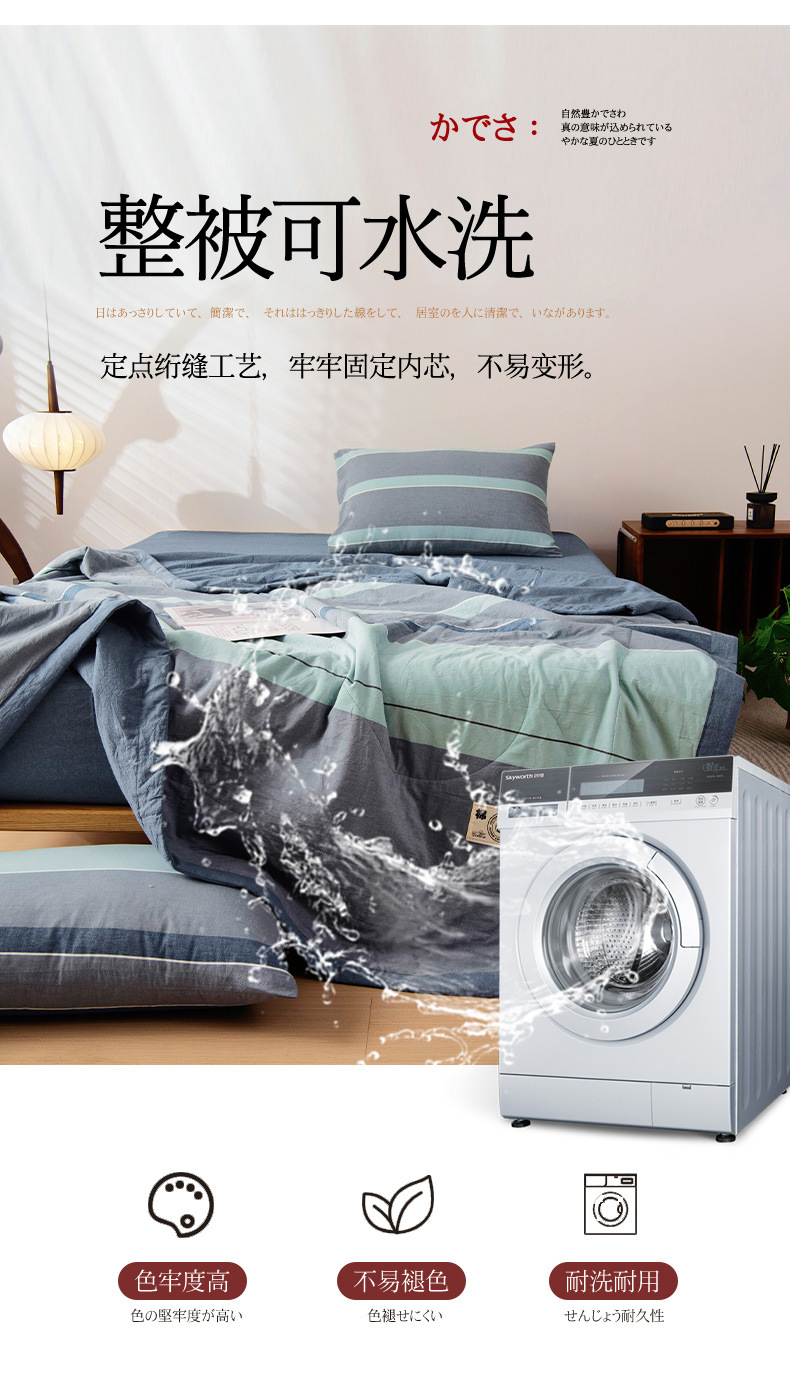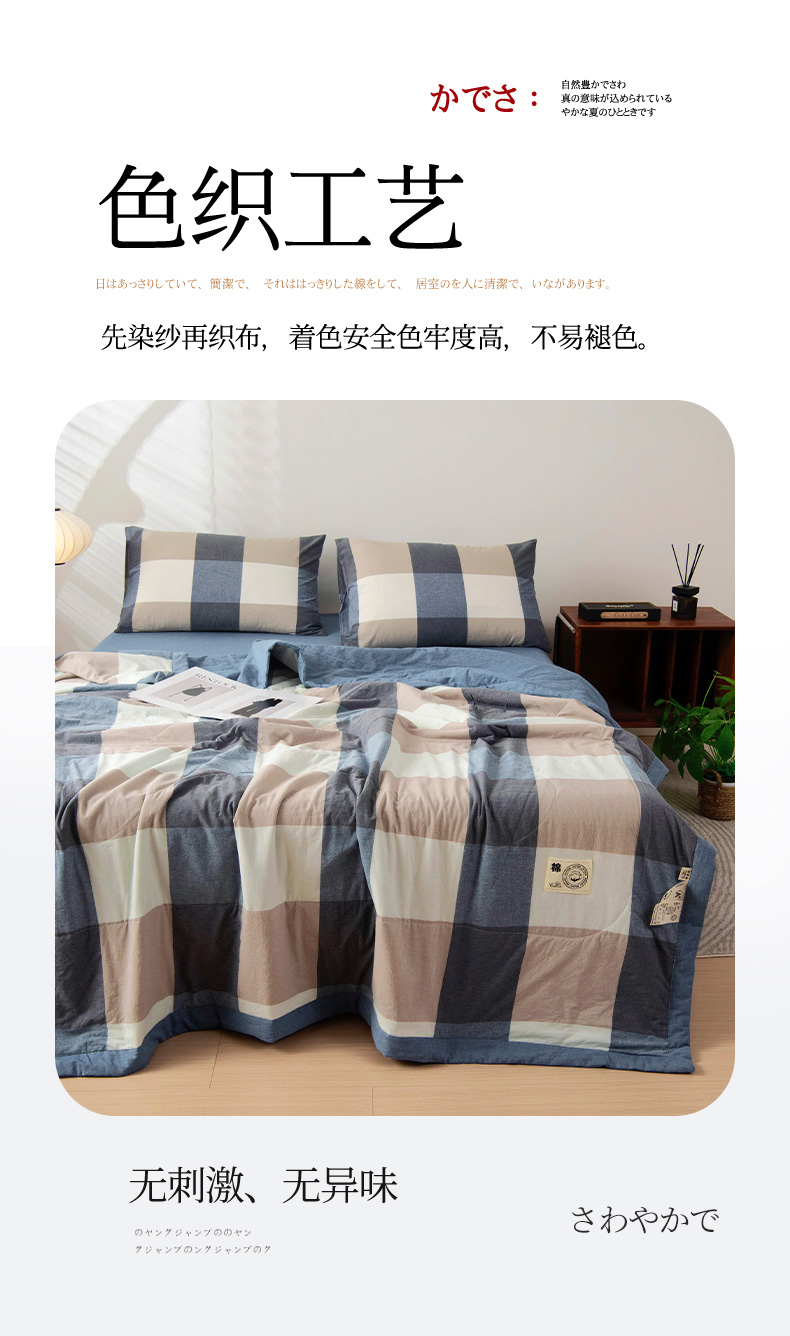 鑫棉坊 2024新款A类烫画款全棉色织水洗棉棉花夏被 叠拍主图,叠拍主图