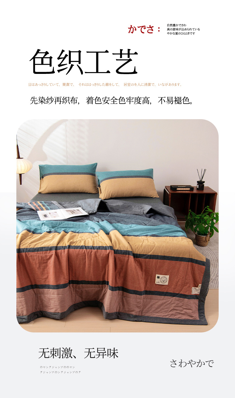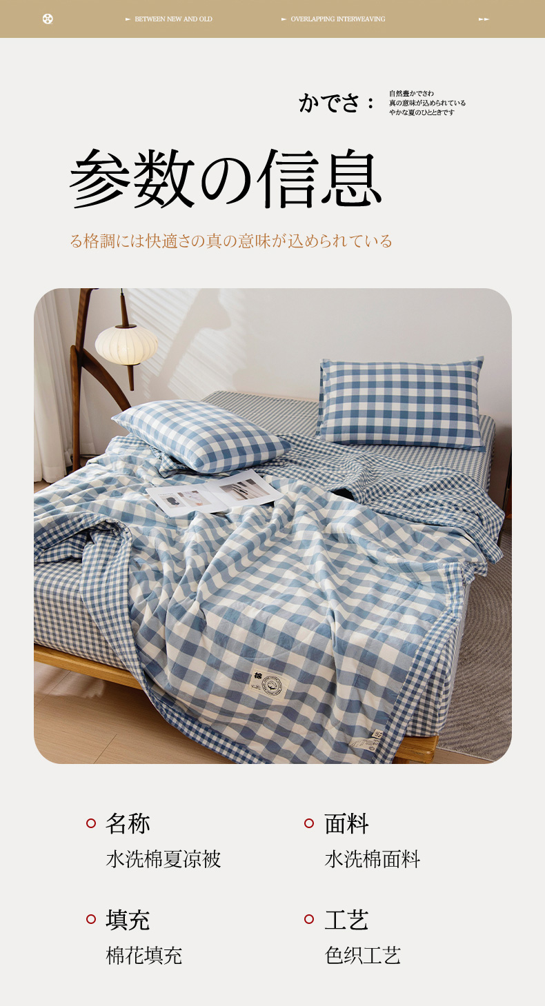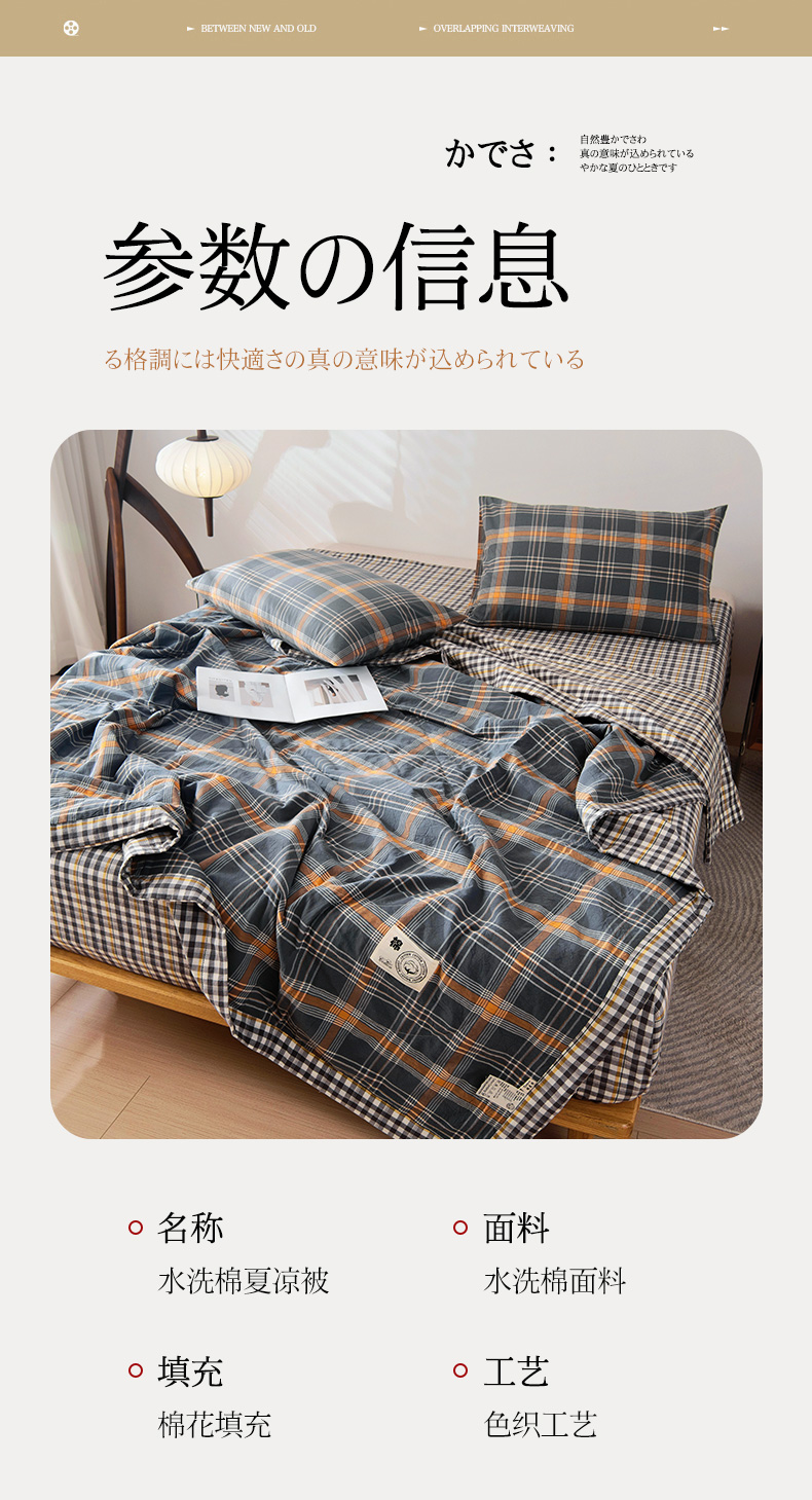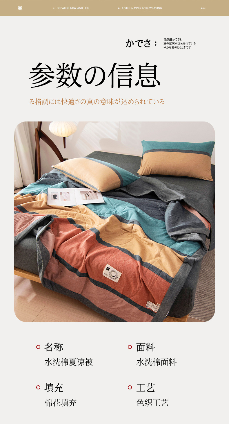 鑫棉坊 2024新款A类烫画款全棉色织水洗棉棉花夏被 叠拍主图,叠拍主图