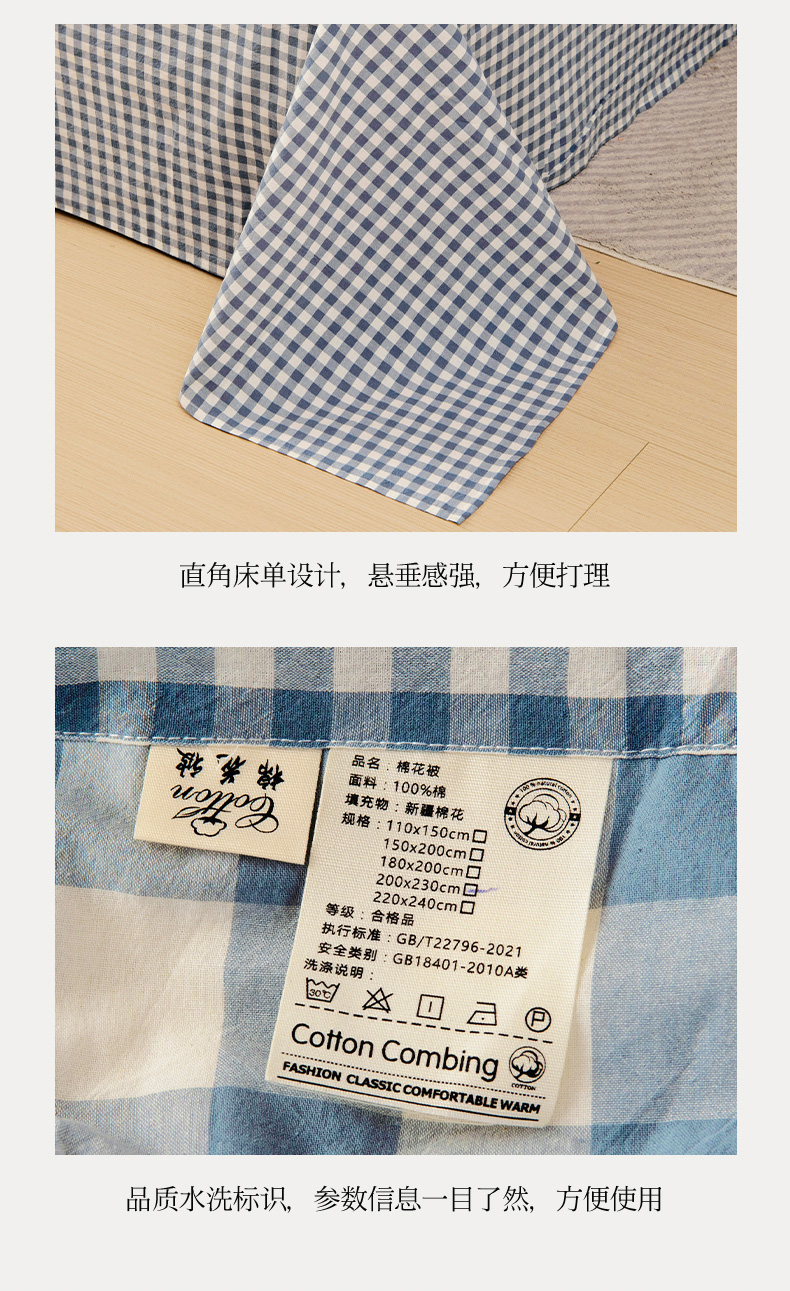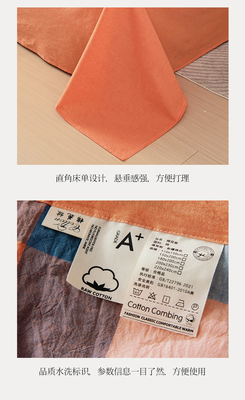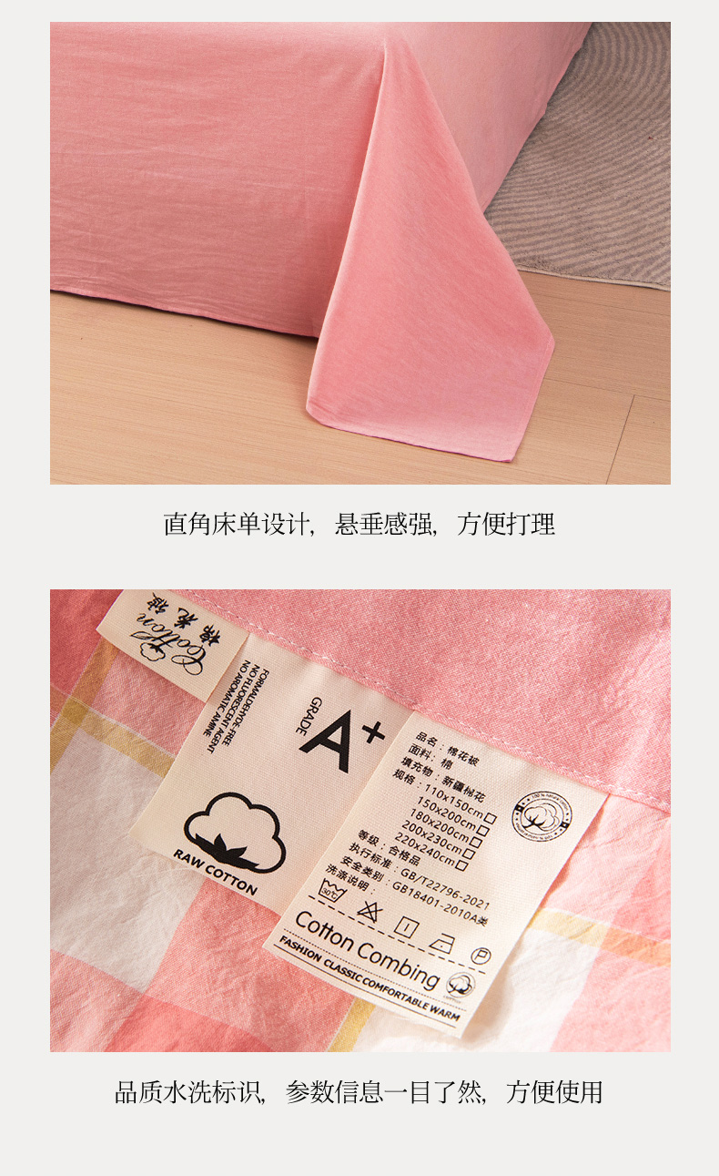 商品名称:(总)鑫棉坊 2025新款全棉色织水洗棉A类棉花夏被可机洗空调被四件套床单枕套