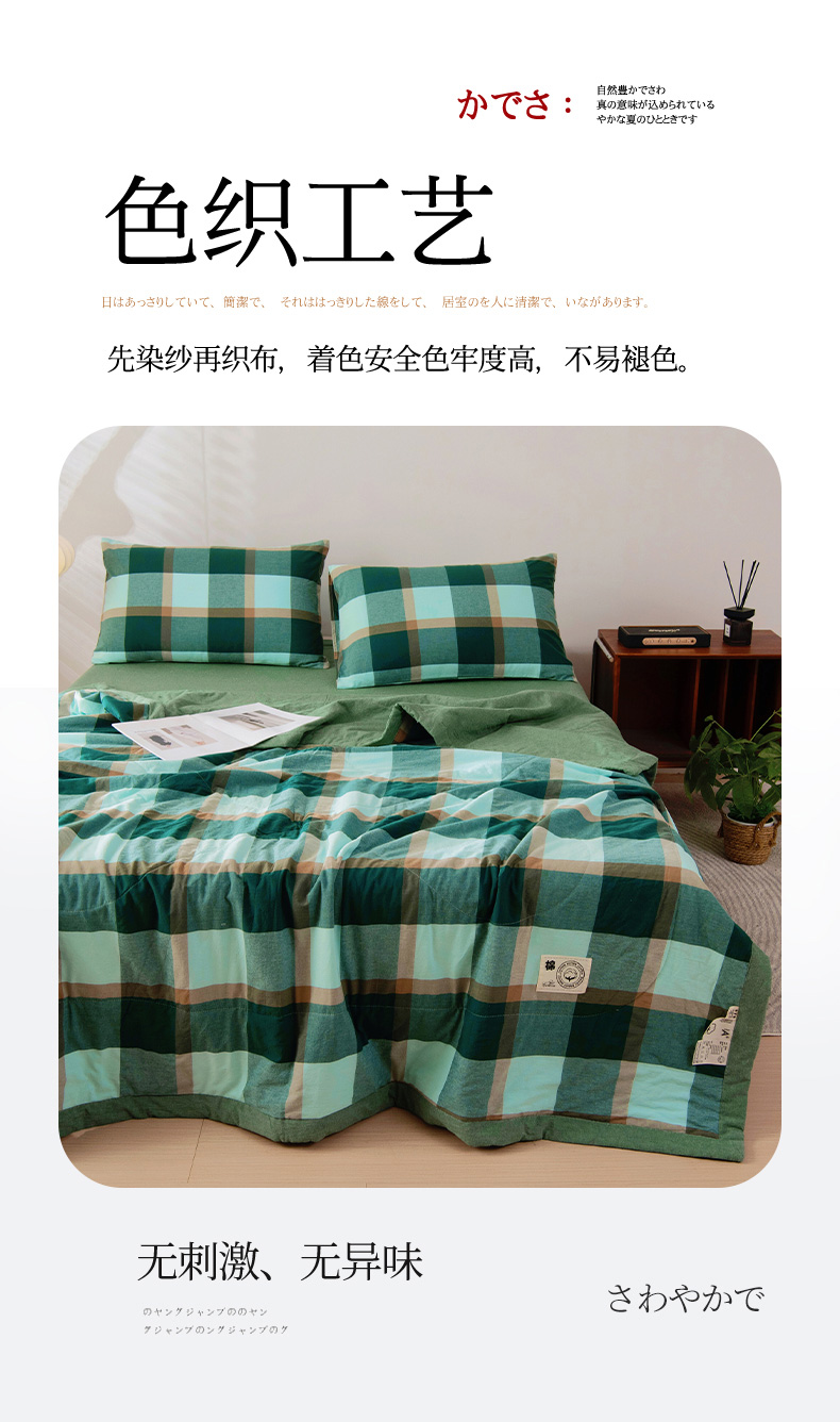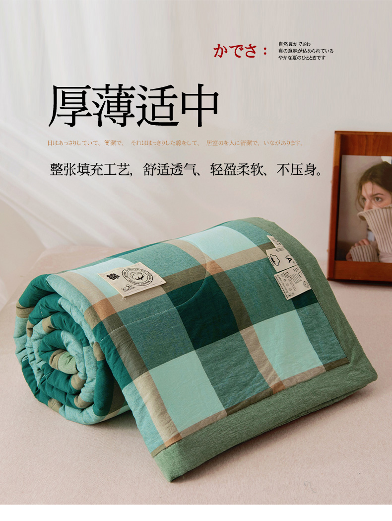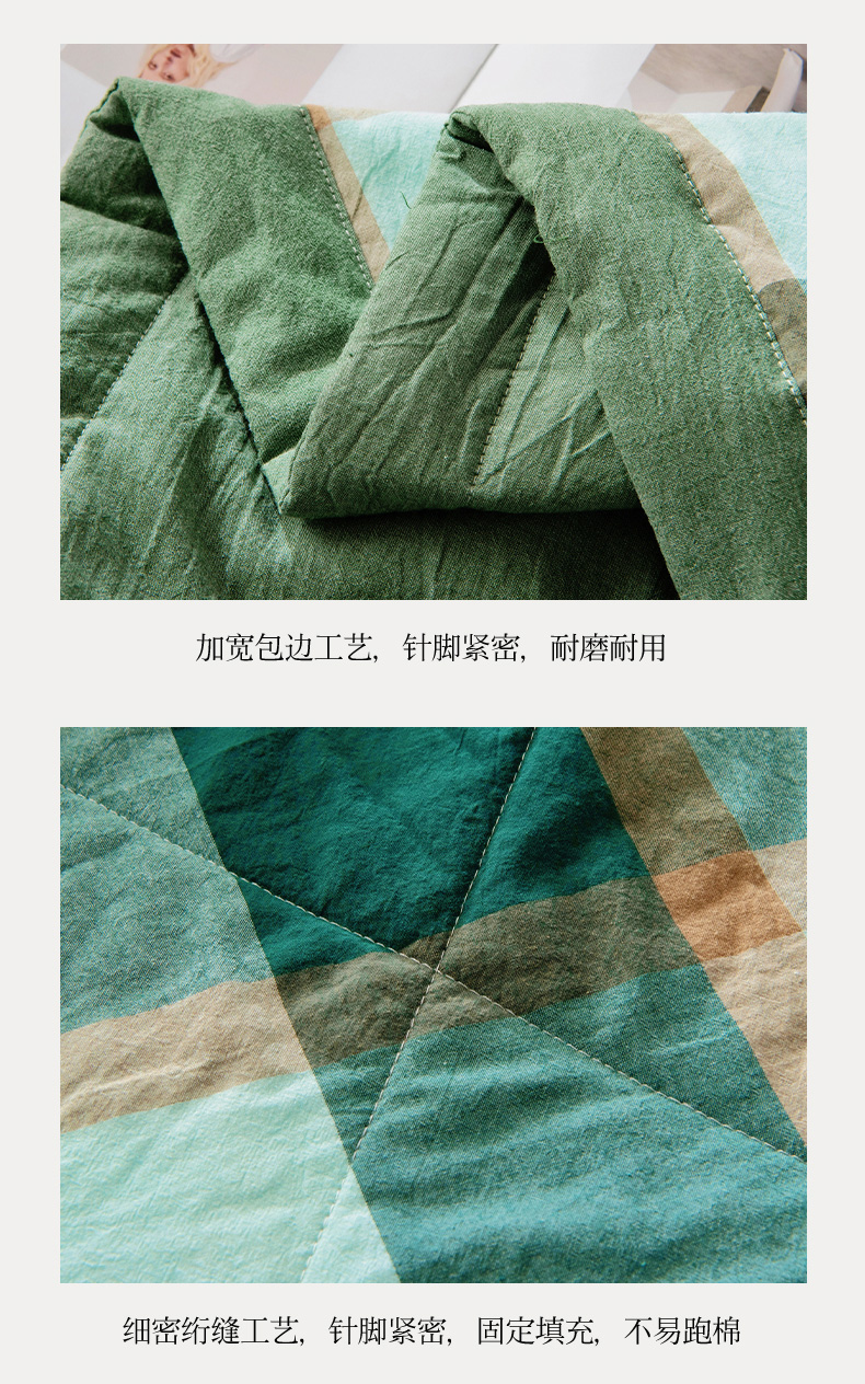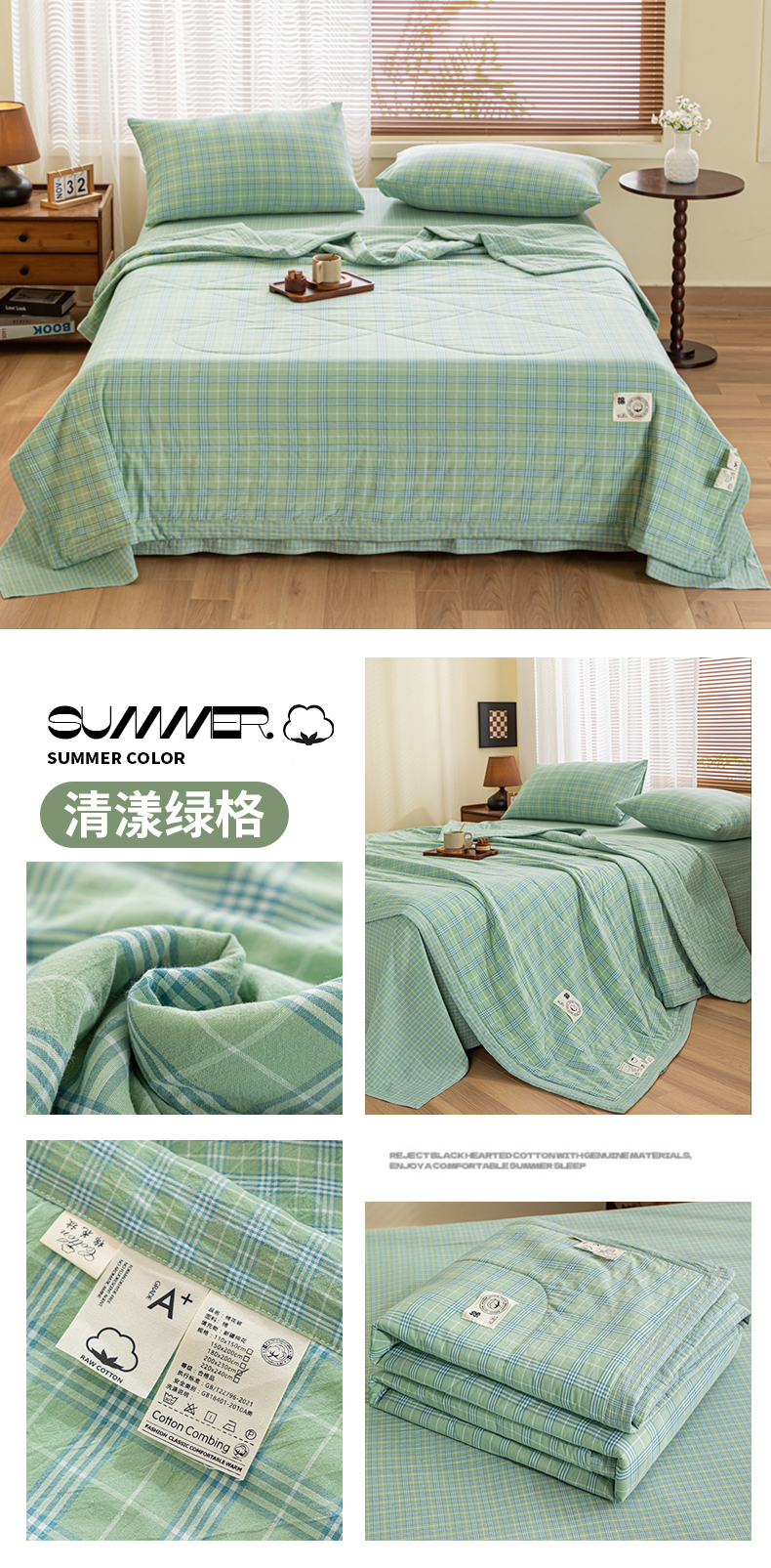 鑫棉坊 2024新款A类烫画款全棉色织水洗棉棉花夏被 抹茶绿,抹茶绿