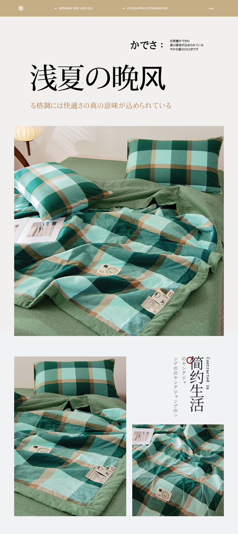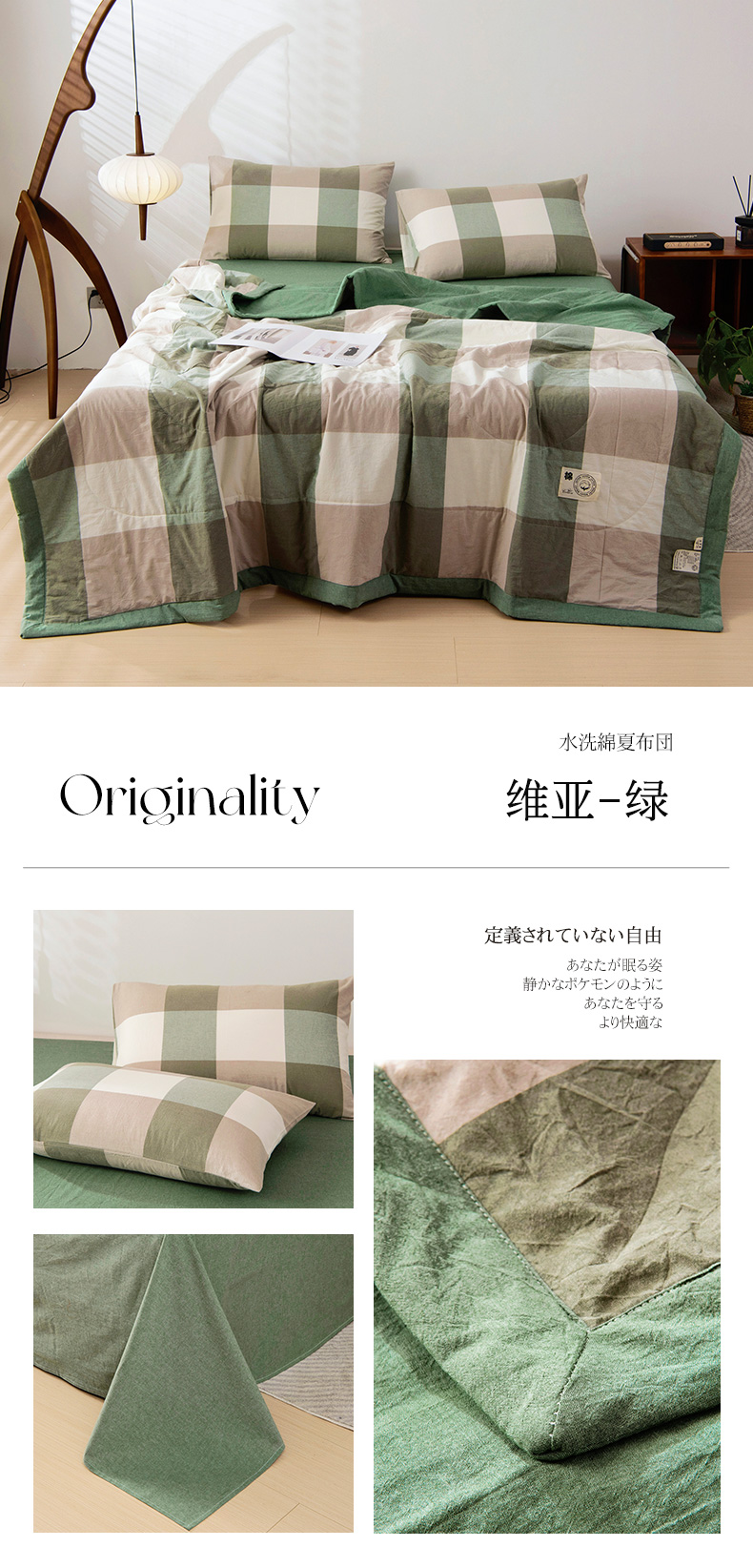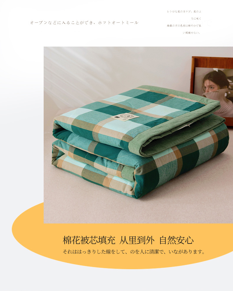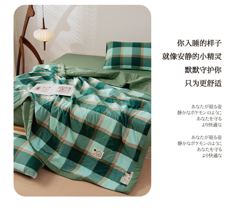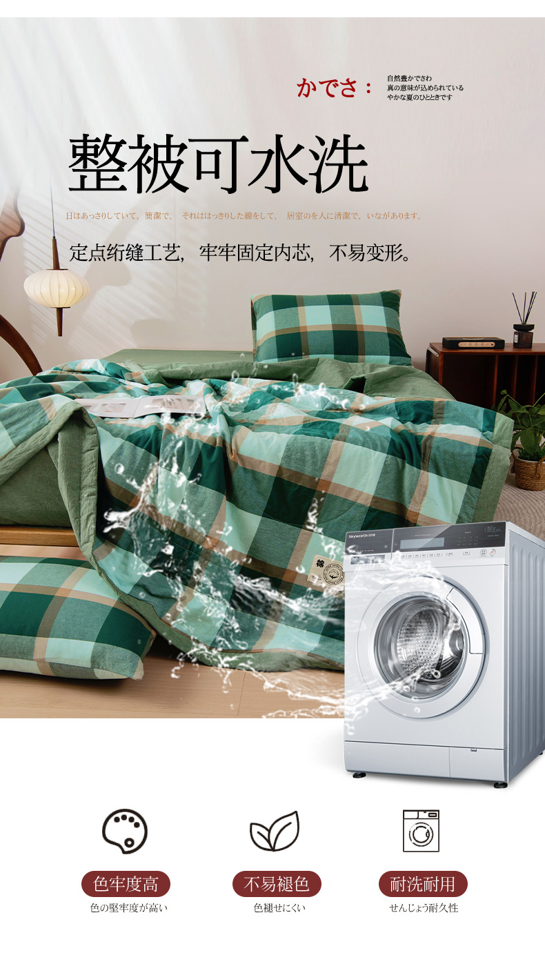 鑫棉坊 2024新款A类烫画款全棉色织水洗棉棉花夏被 抹茶绿,抹茶绿