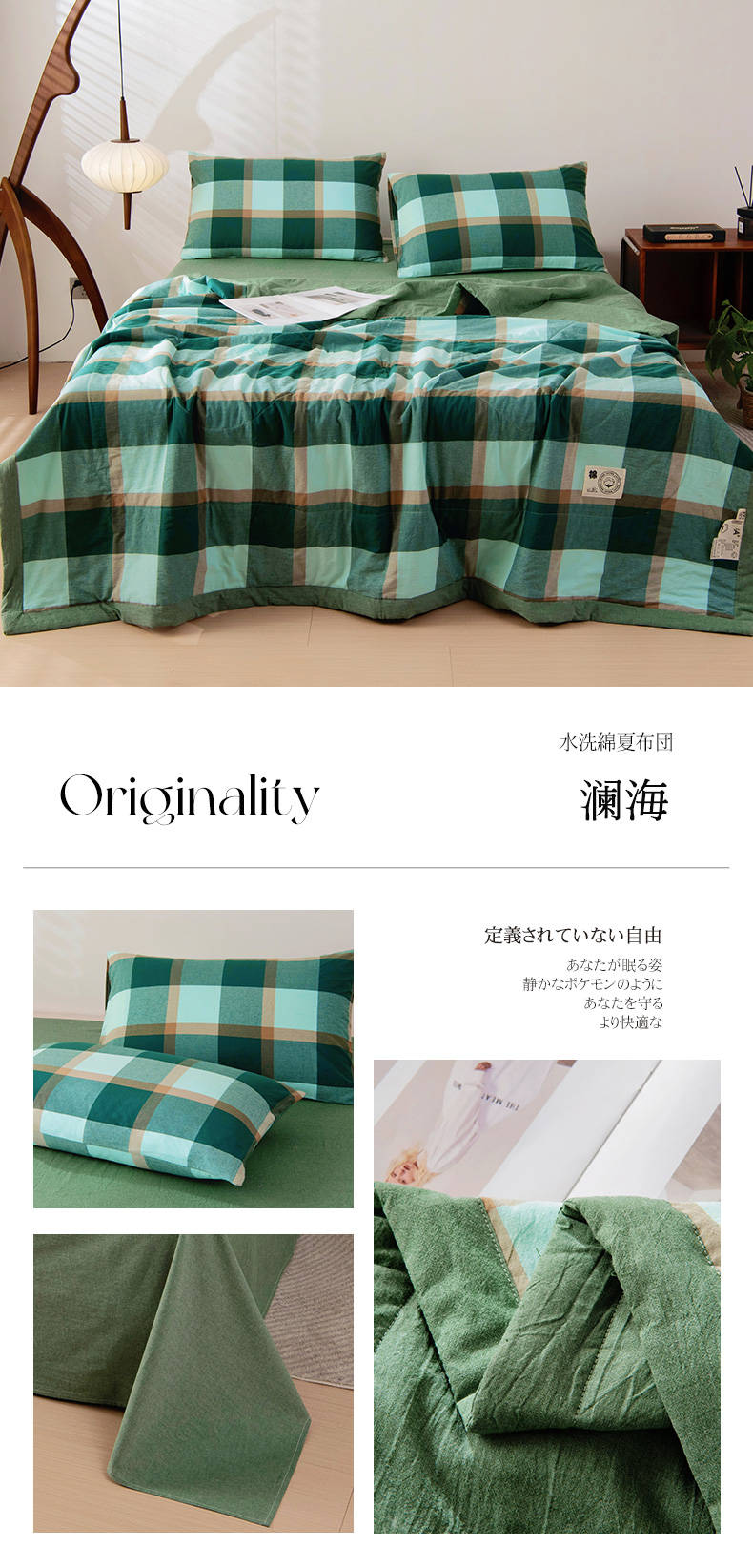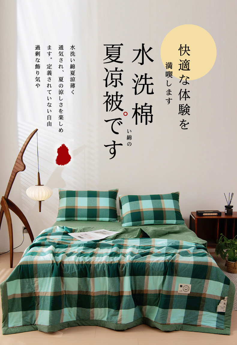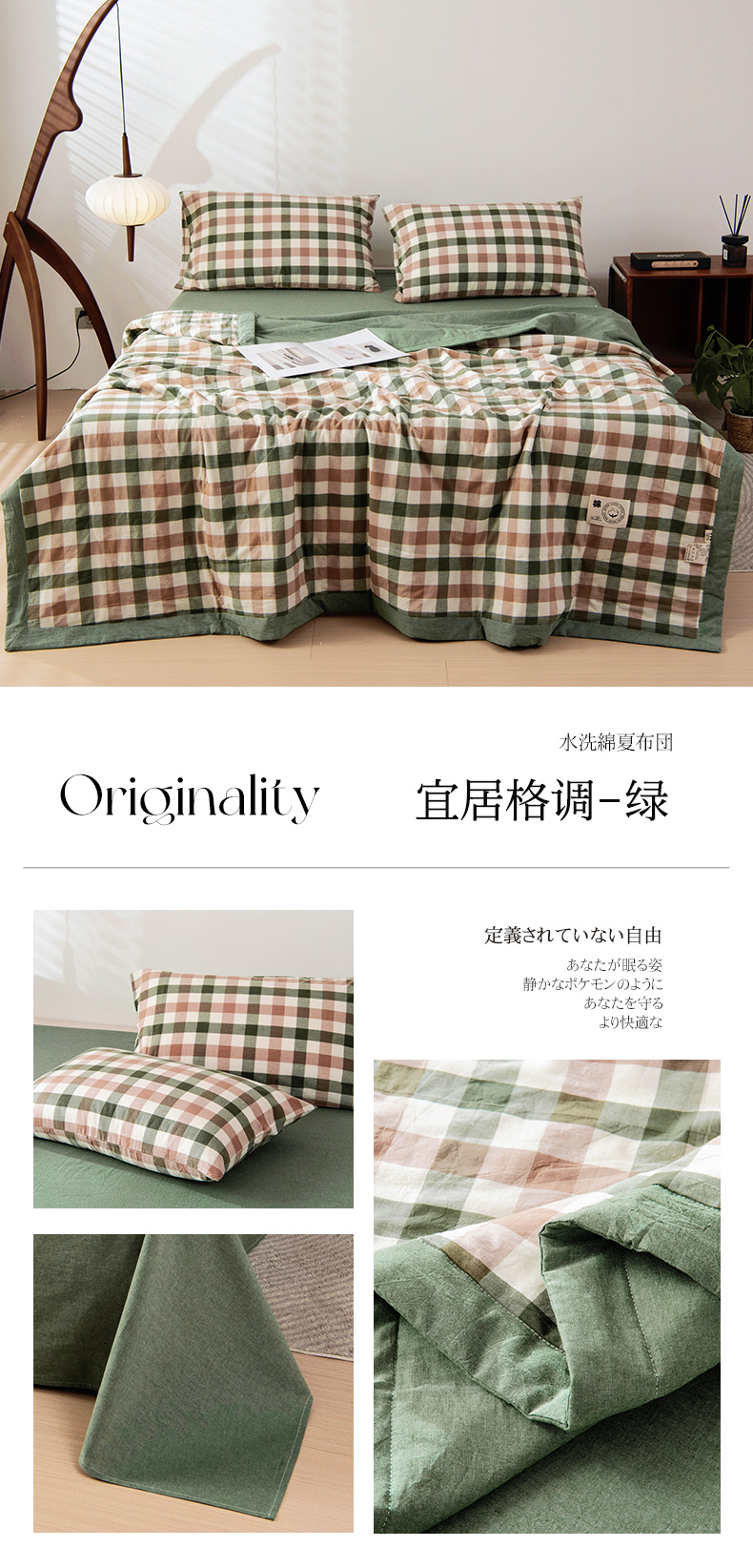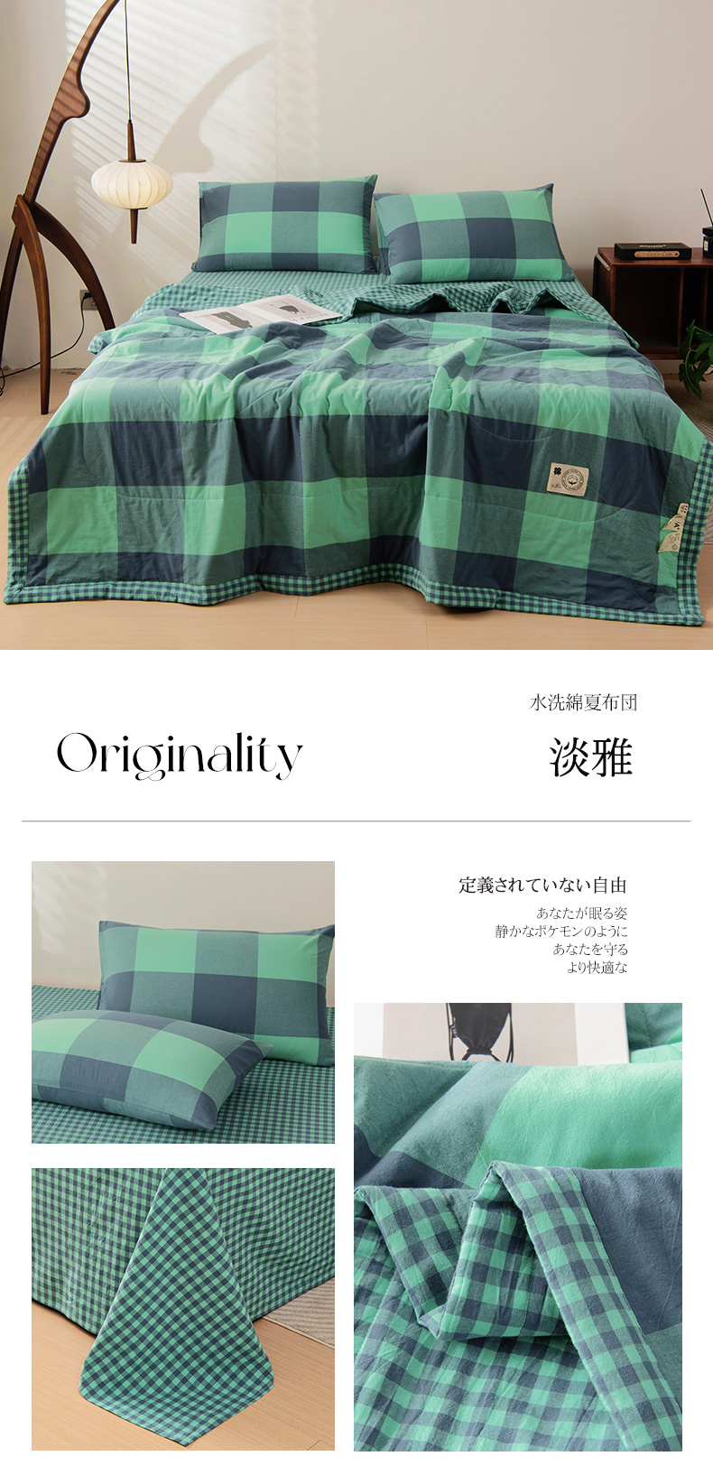 鑫棉坊 2024新款A类烫画款全棉色织水洗棉棉花夏被 抹茶绿,抹茶绿