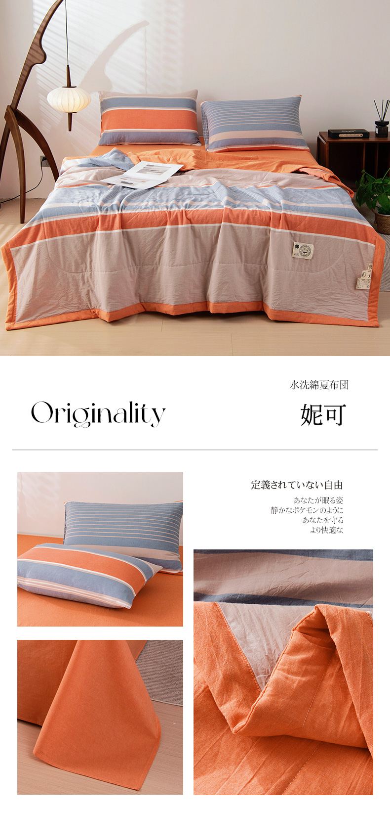 鑫棉坊 2024新款A类烫画款全棉色织水洗棉棉花夏被 明亮橘,明亮橘