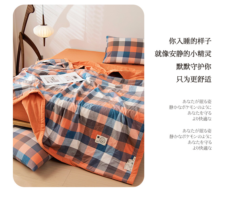 (总)鑫棉坊 2024新款A类烫画款全棉色织水洗棉棉花夏被,冰雪蓝,翠柏绿,芳华杏,凯莉咖,明亮橘,抹茶绿,星空黑,胭脂粉,叠拍主图