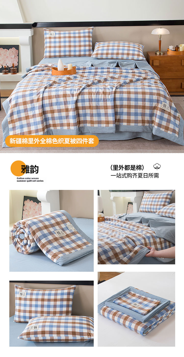 三俏家纺 2025新款新疆棉花被夏被100%里外全棉棉花夏被无印风全棉色织水洗棉夏凉被空调被春秋被单人可机洗-风格二 上野