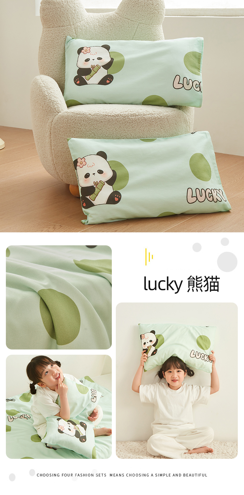 商品名称:艾佳宝贝 2025新款A类全棉纯棉儿童单枕套多尺寸可拆式枕头 lucky 熊猫