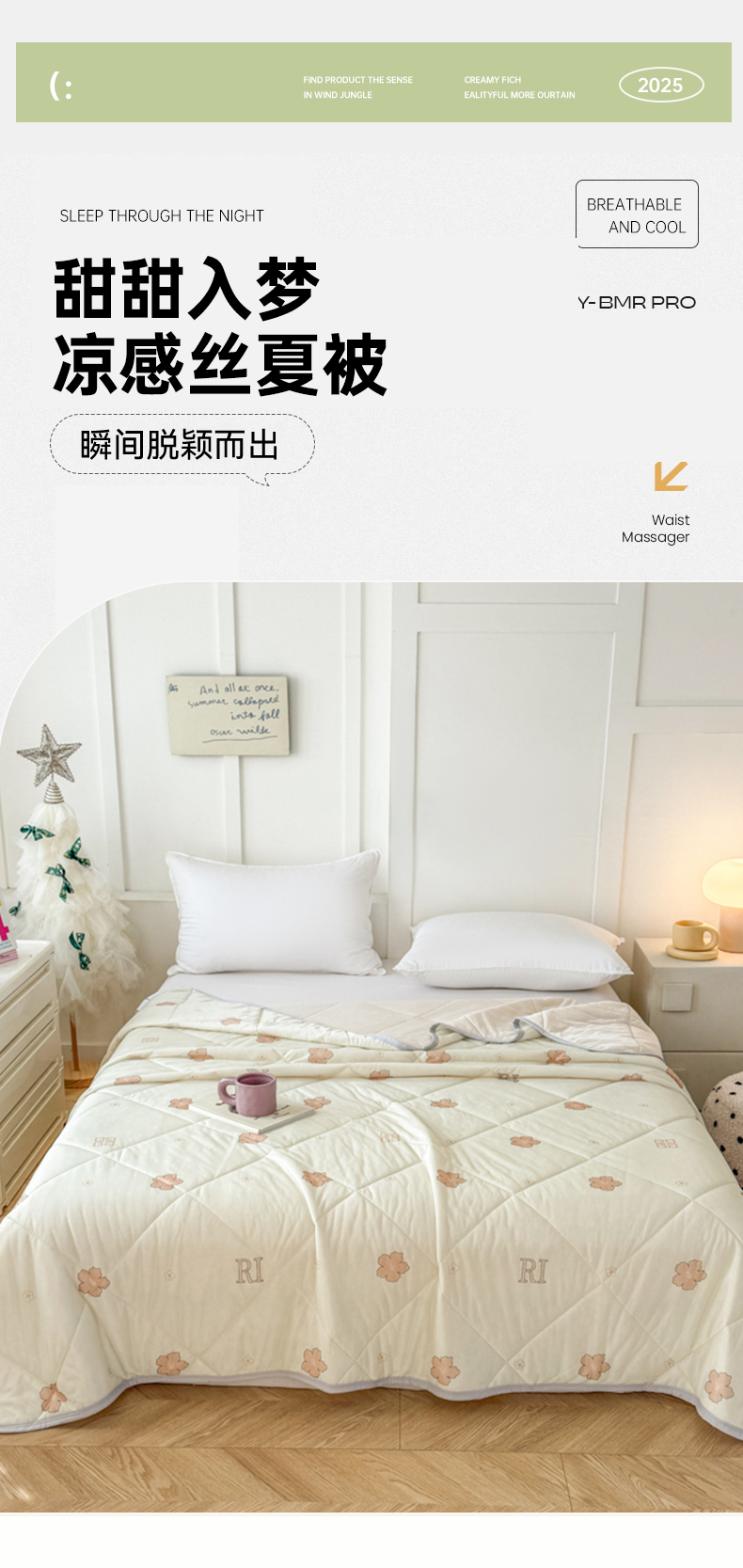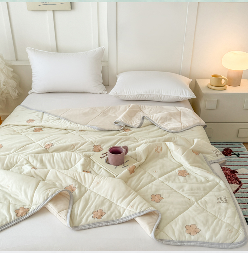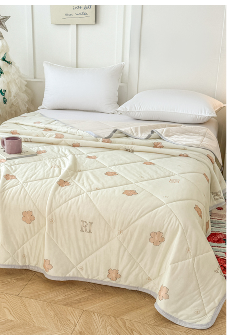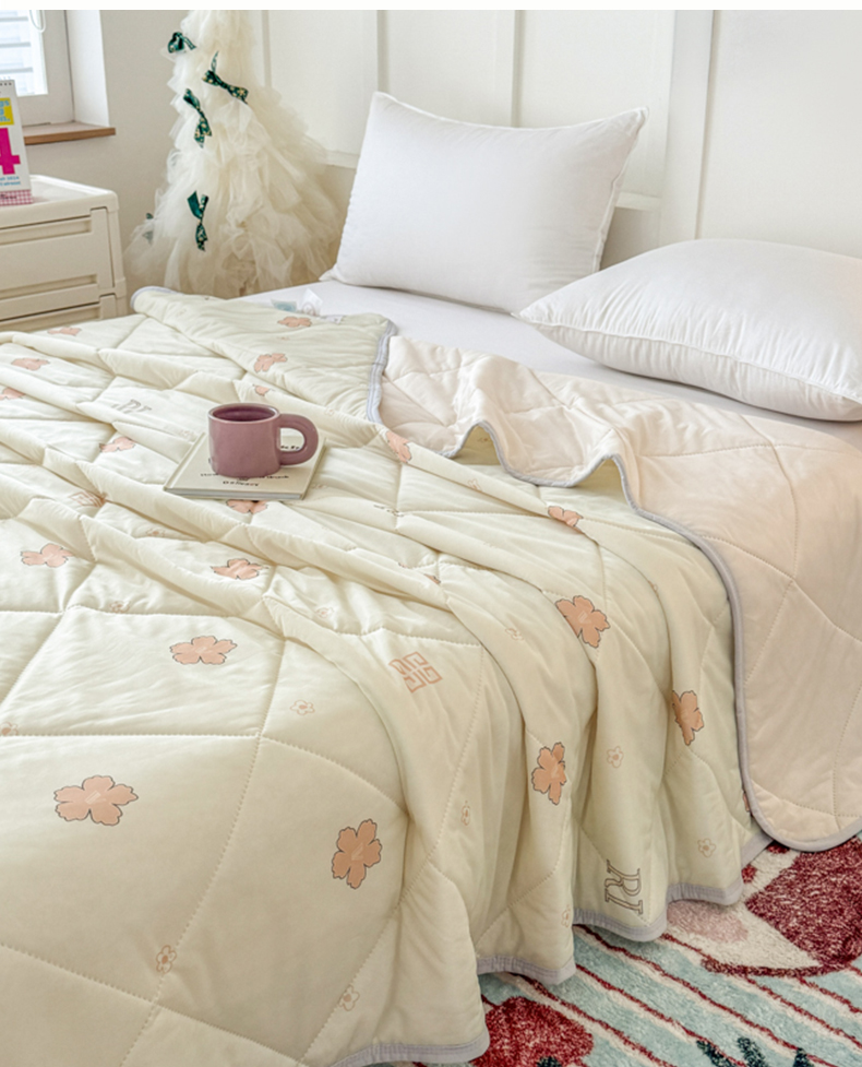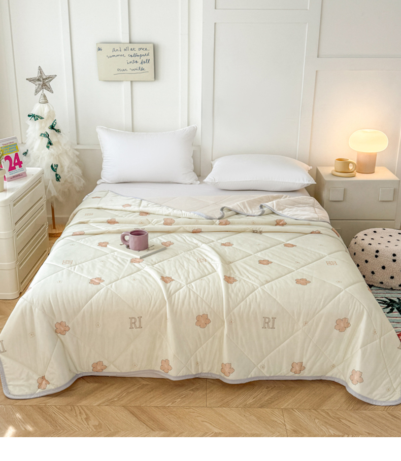 晚爱 2025A类氨纶凉感天丝夏被纯色印花冰淇淋夏凉被可机洗空调被 幸运花