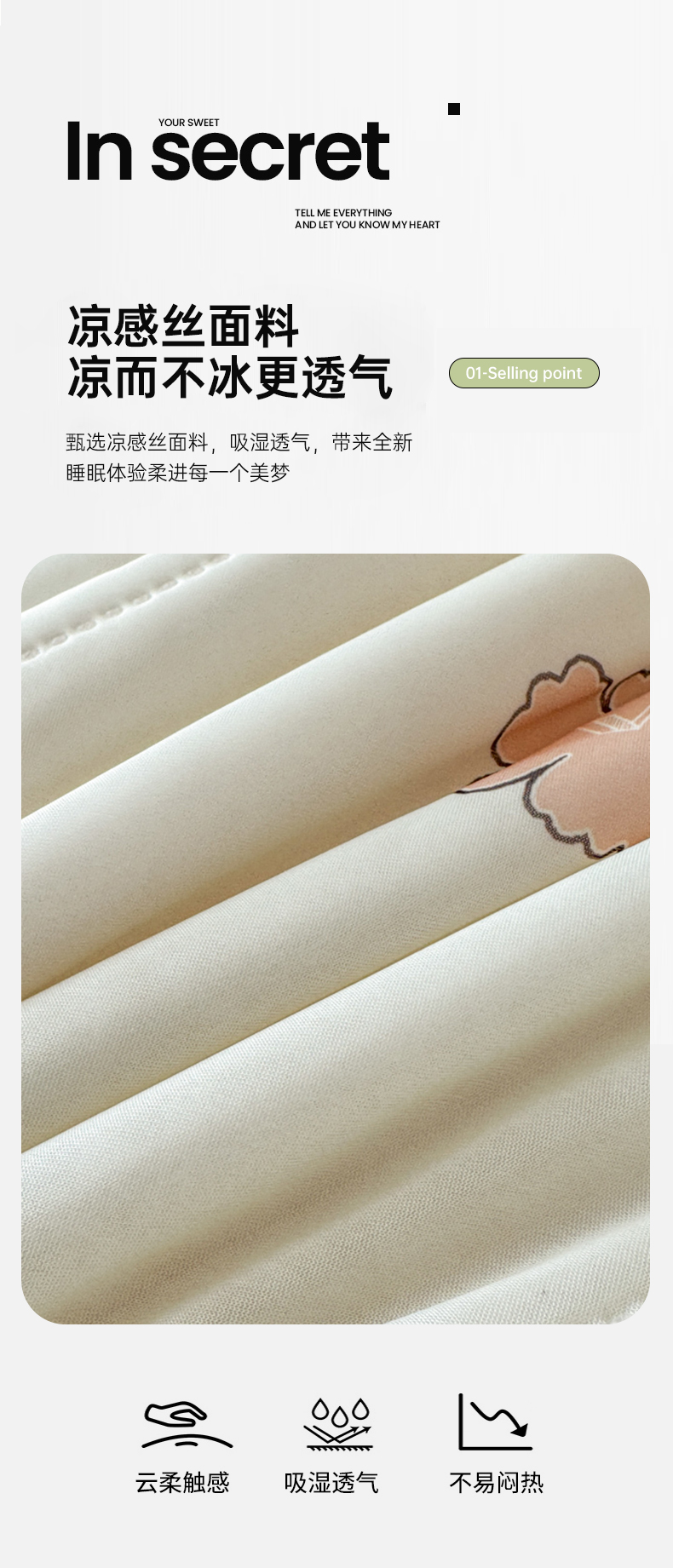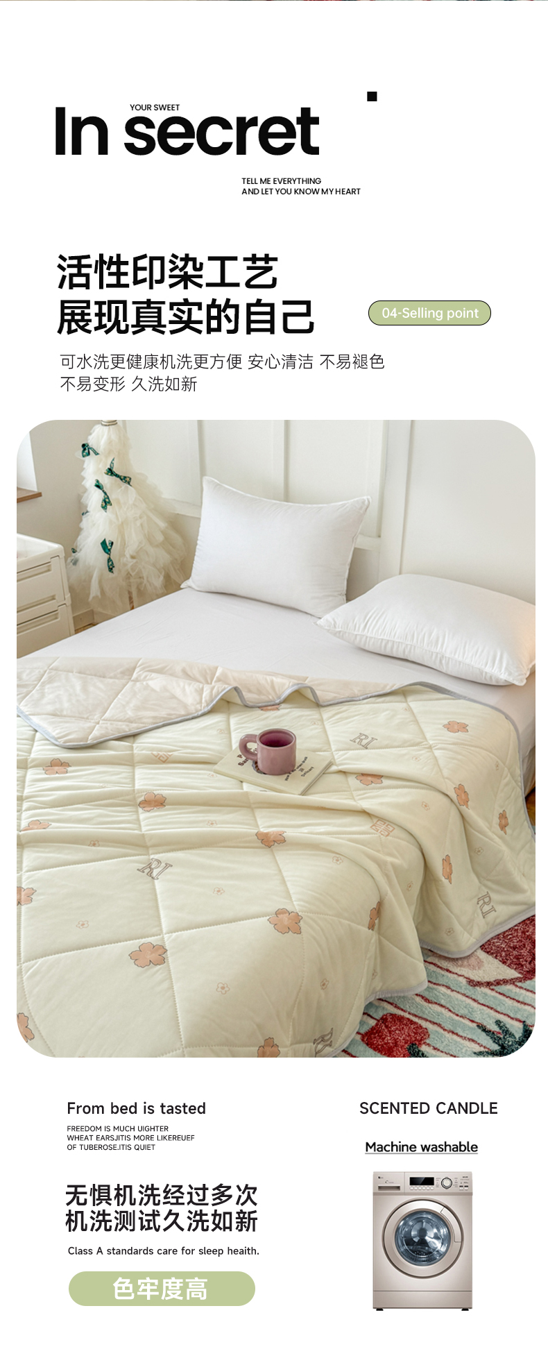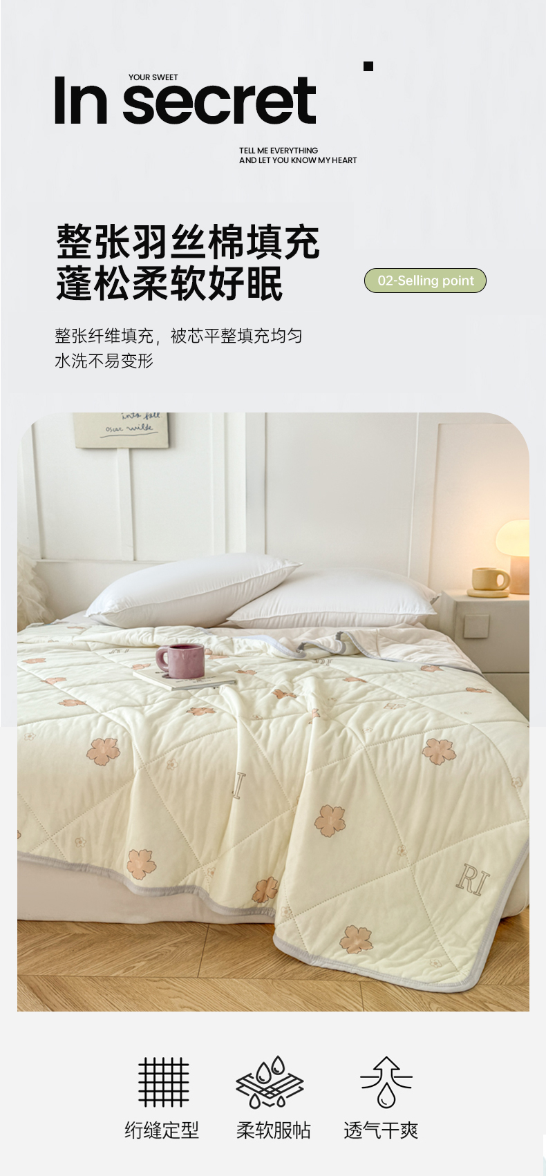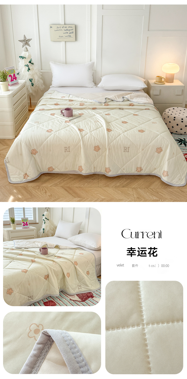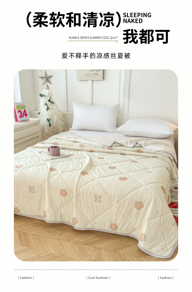商品名称:晚爱 2025A类氨纶凉感天丝夏被纯色印花冰淇淋夏凉被可机洗空调被 幸运花