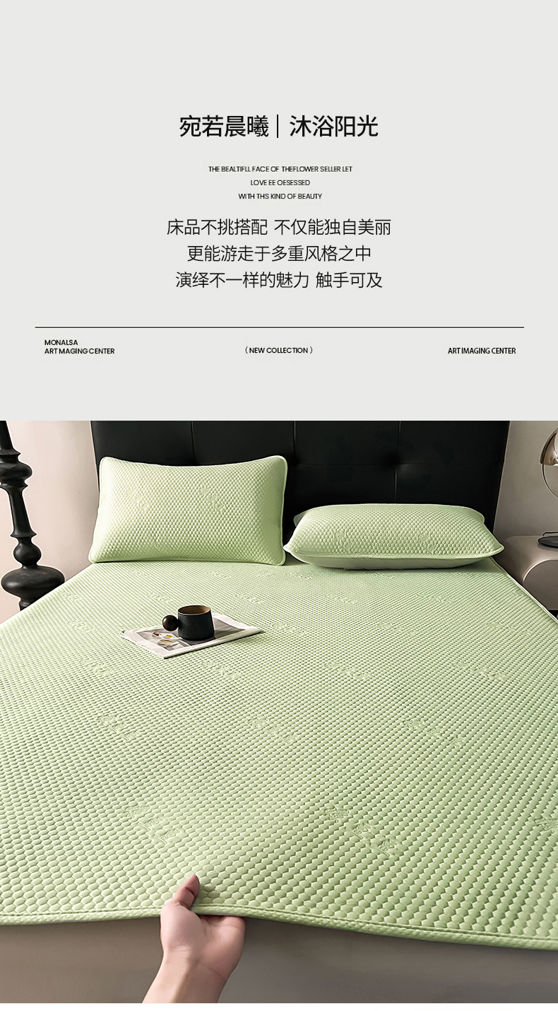 (总)席之家 2025新款高精密三纬可水洗冰提花丝凉席,莫奈-咖,莫奈-灰,莫奈-绿