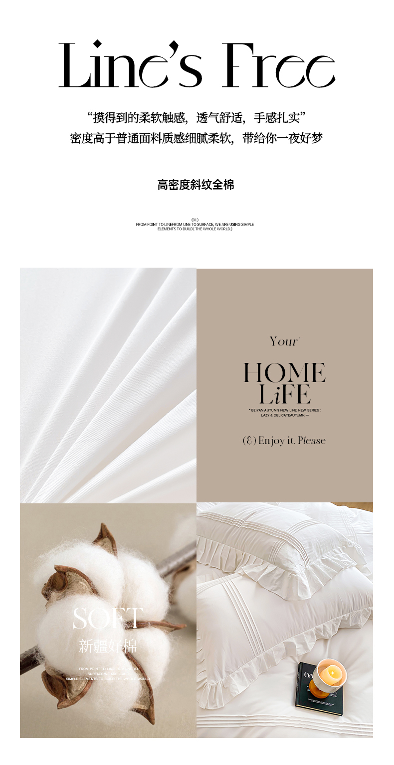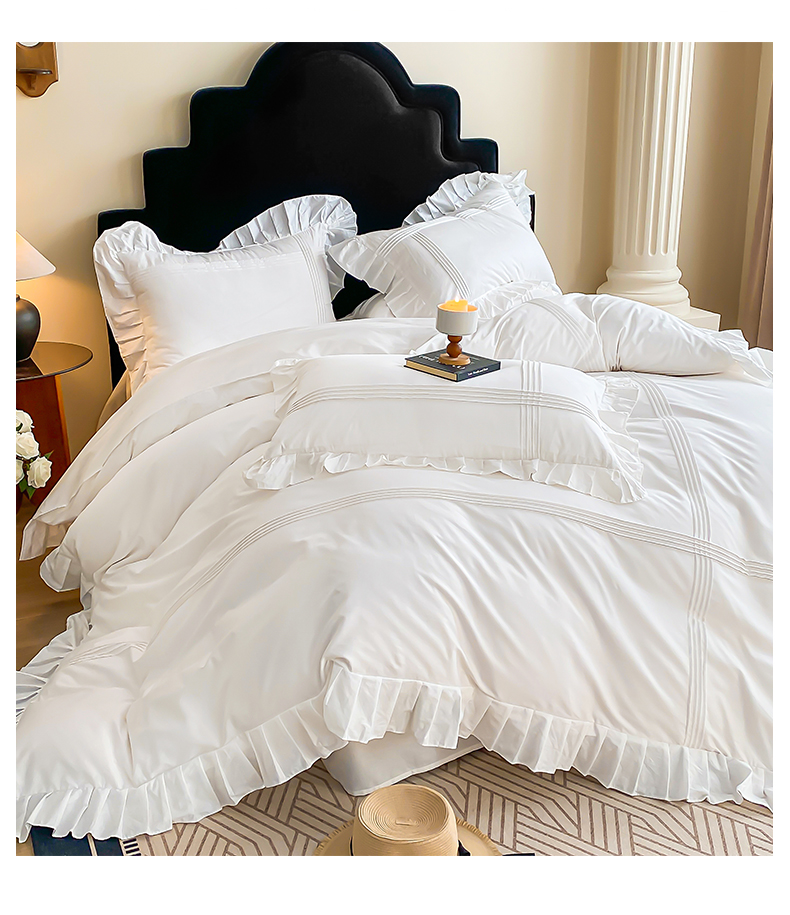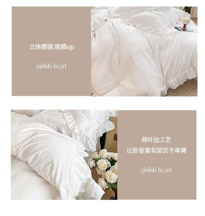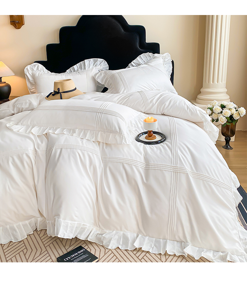 当前位置: 91家纺网 > 商品网购 > 床品套件 > 四件套 > 全棉普通四件套 > 花香四季家纺 2025新款全棉13376公主风纯棉法式手工立体线条四件套 奶油白