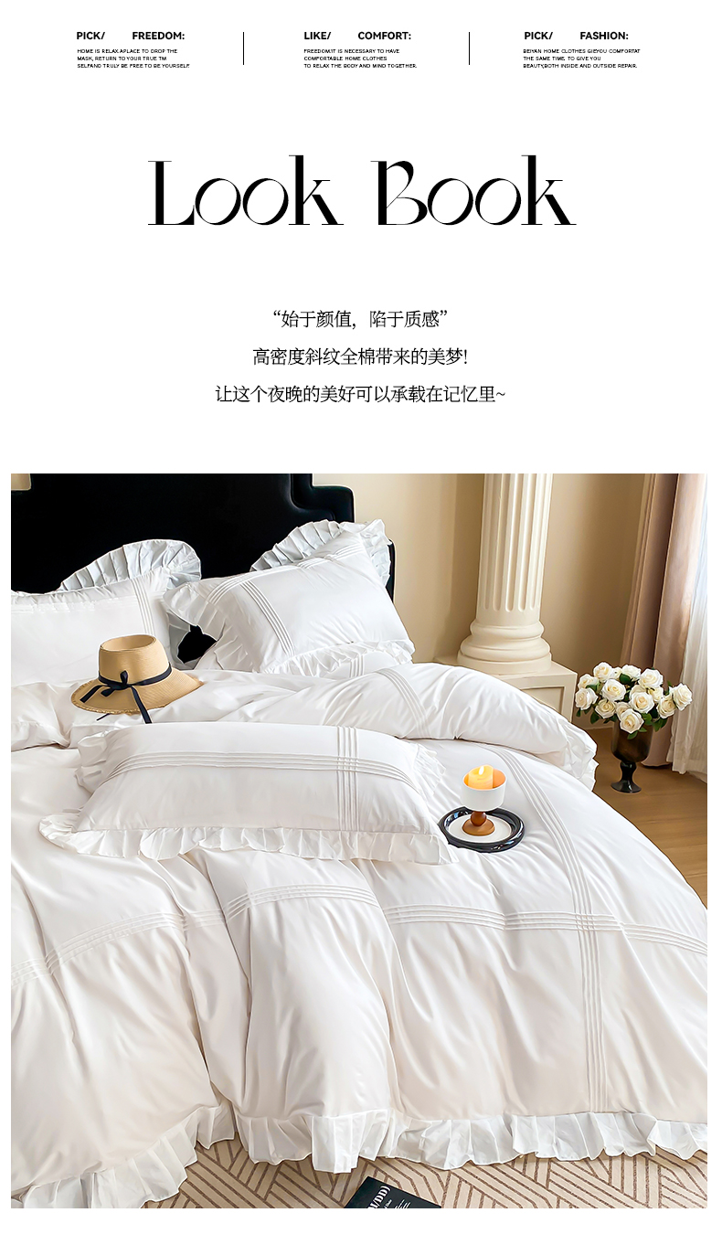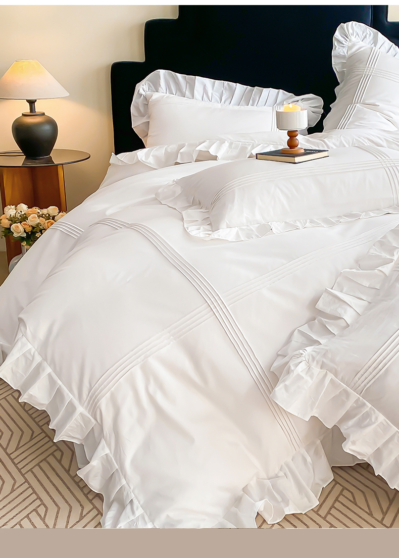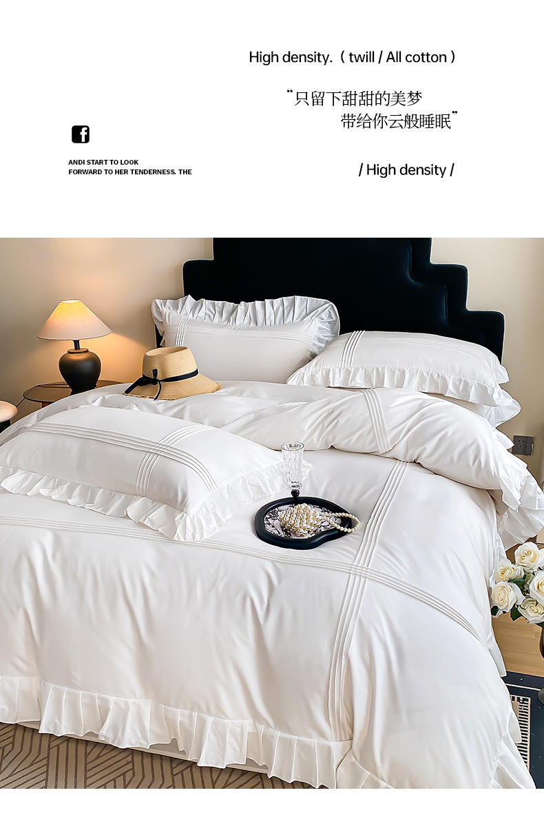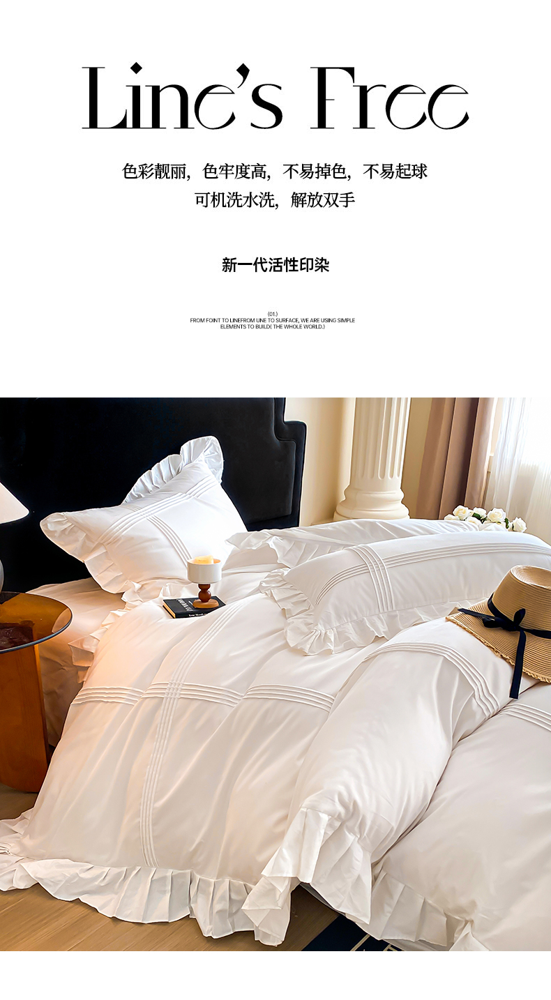 当前位置: 91家纺网 > 商品网购 > 床品套件 > 四件套 > 全棉普通四件套 > 花香四季家纺 2025新款全棉13376公主风纯棉法式手工立体线条四件套 奶油白
