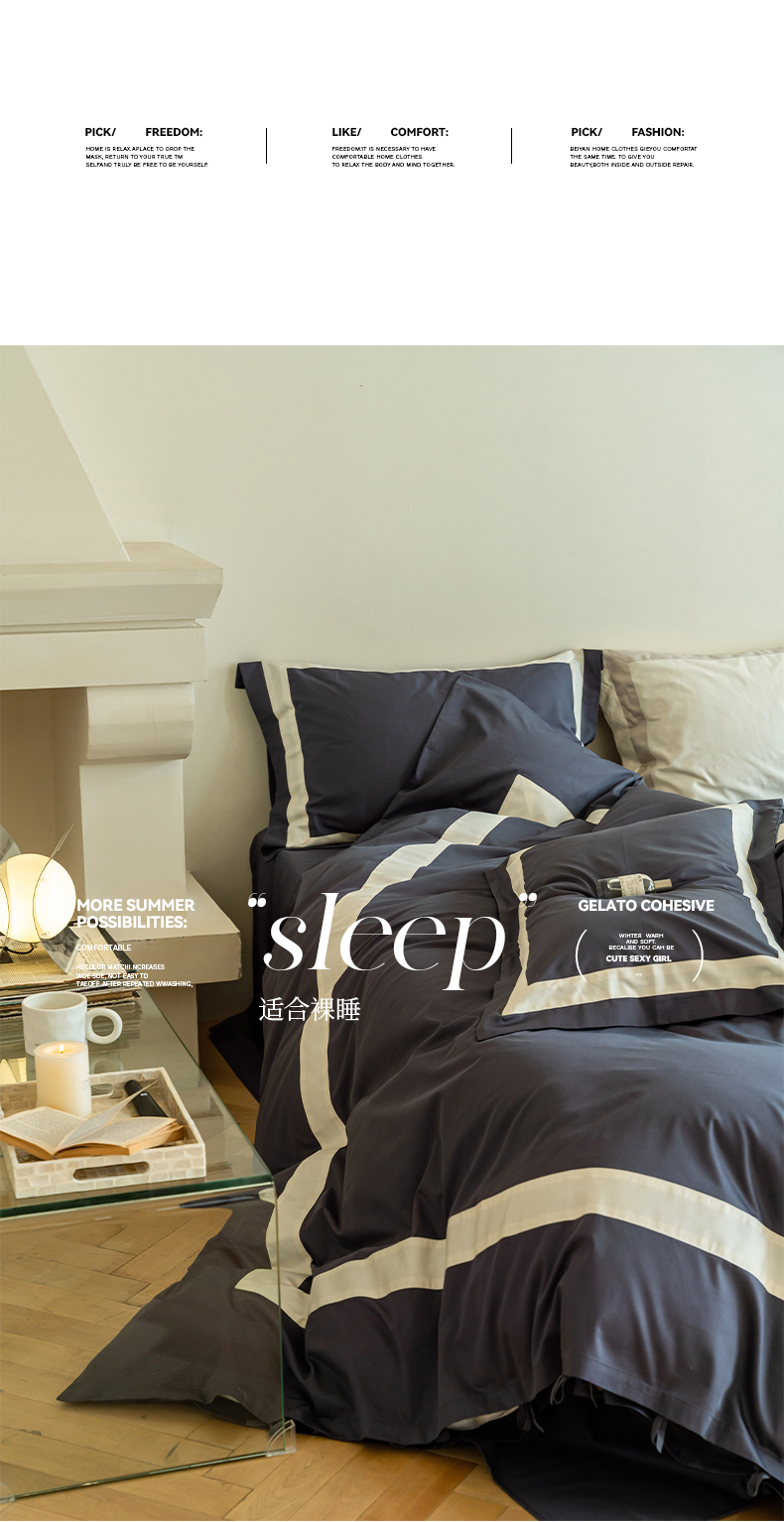 商品名称:华超针织2025新款全棉长绒棉贡缎贴边四件套 静谧灰