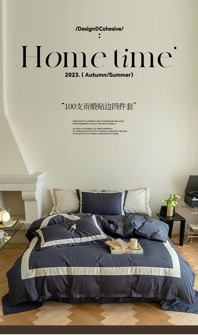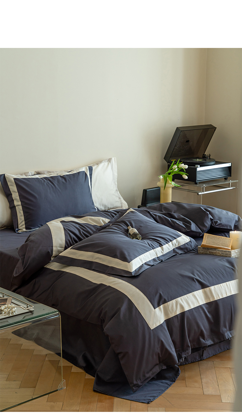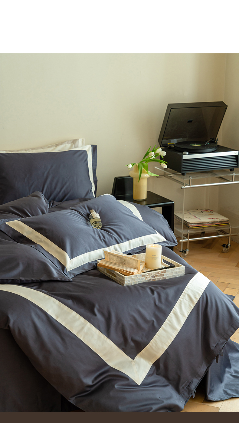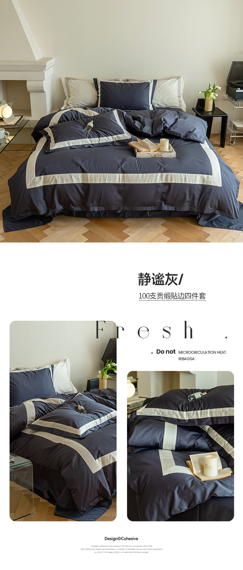 华超针织2025新款全棉长绒棉贡缎贴边四件套 静谧灰