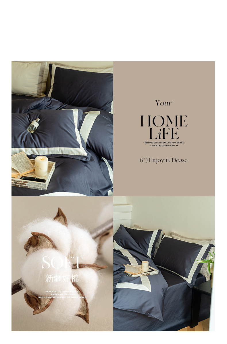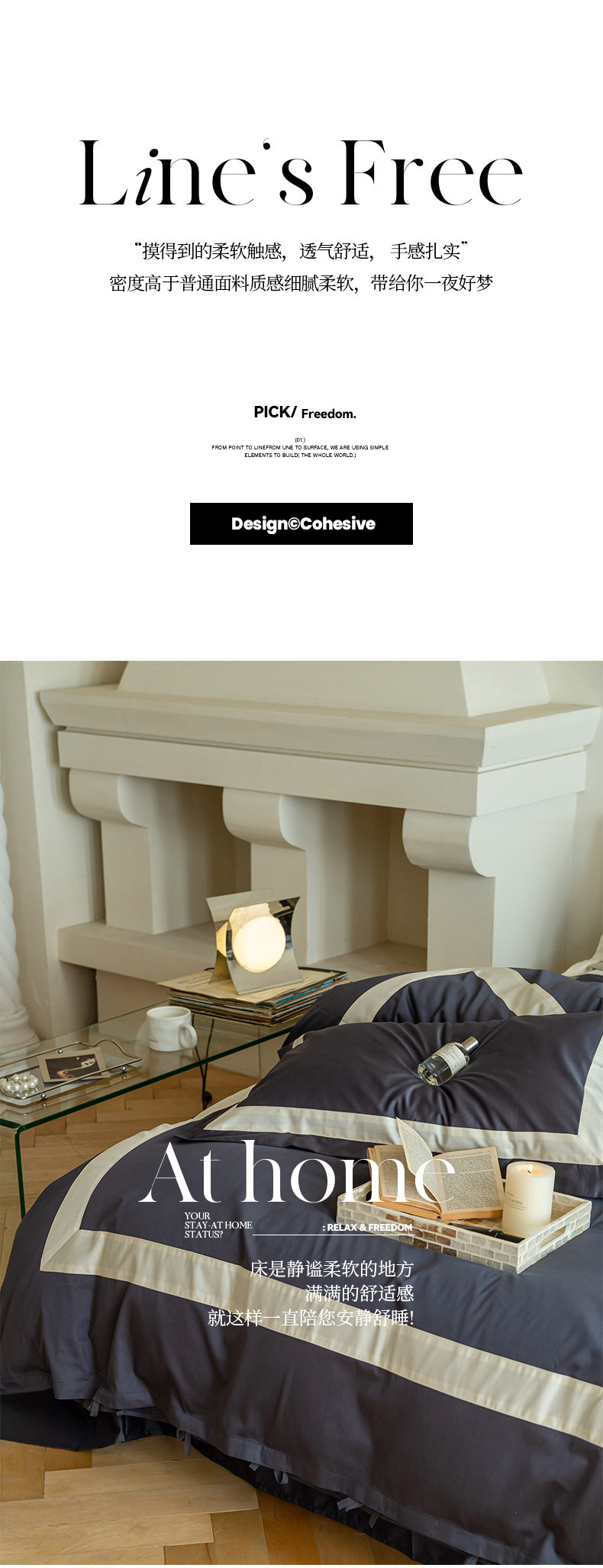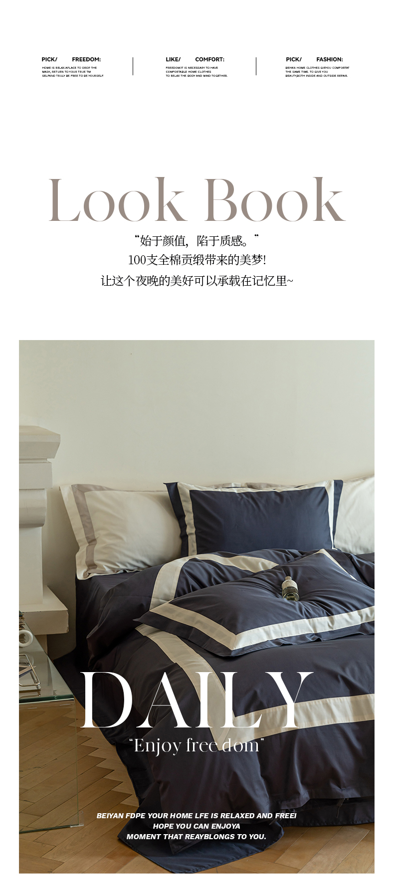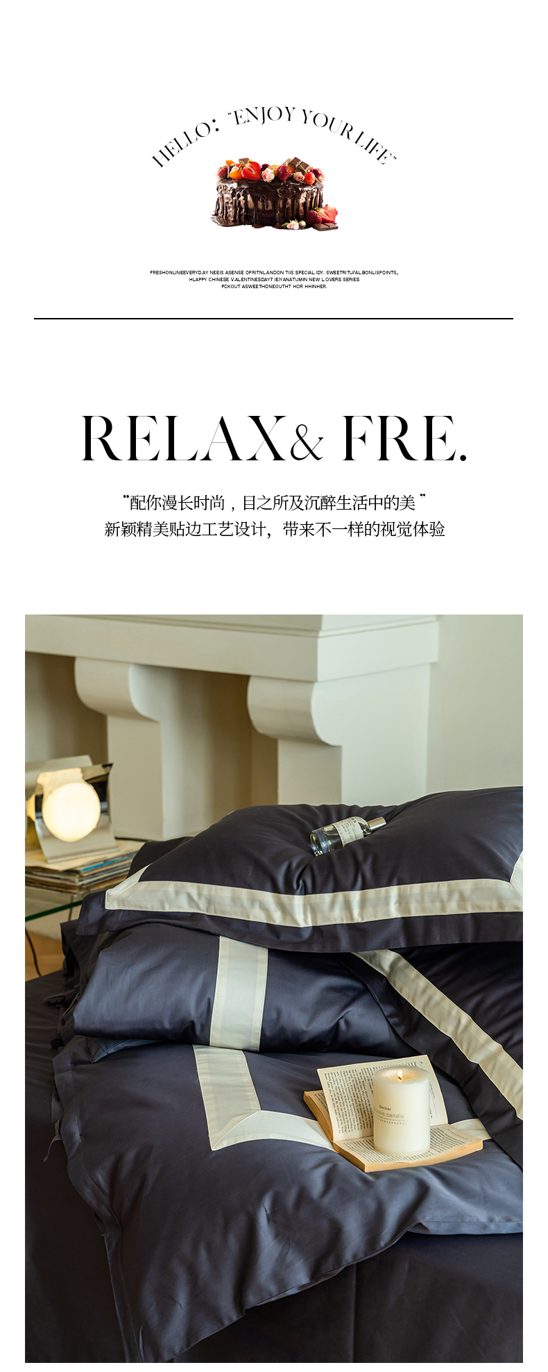 华超针织2025新款全棉长绒棉贡缎贴边四件套 静谧灰