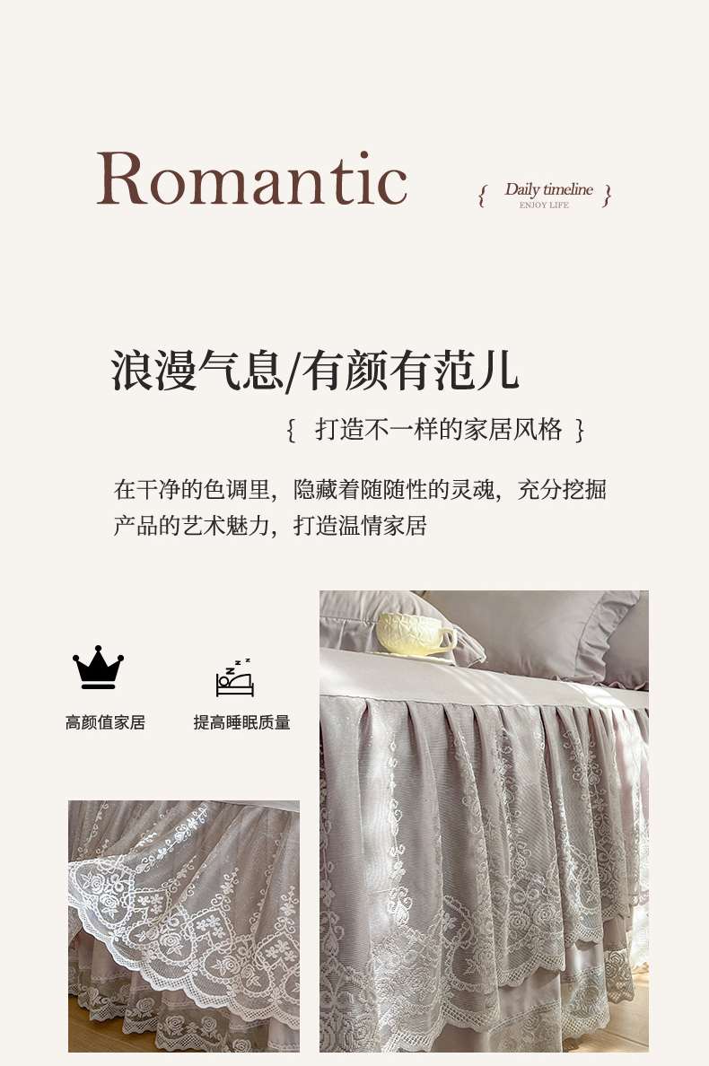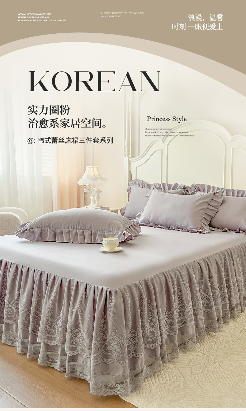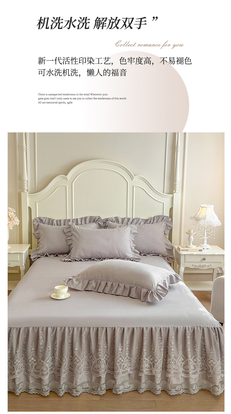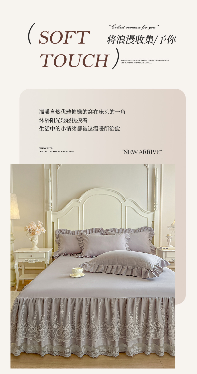 (总)乐朵家居 2025新款 25-1 芯语 蕾丝床裙,豆沙,灰,卡其,绿,米,紫