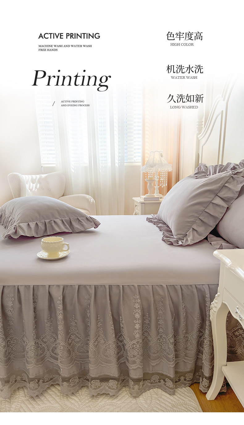 商品名称: 乐朵家居 2025新款 25-1 芯语 蕾丝床裙 灰