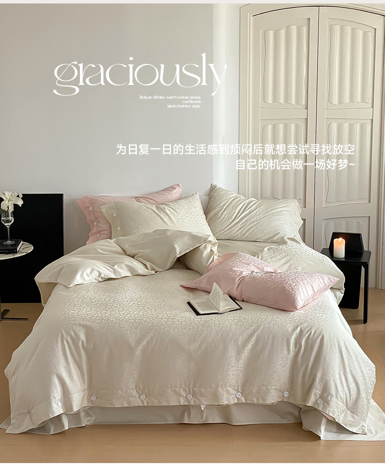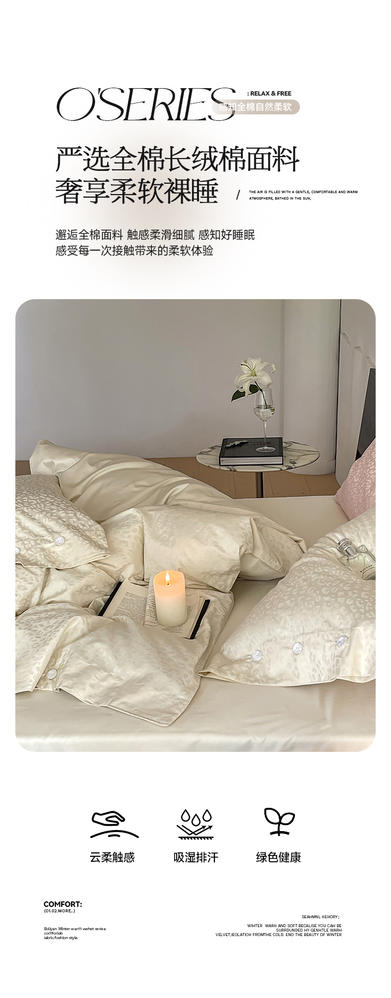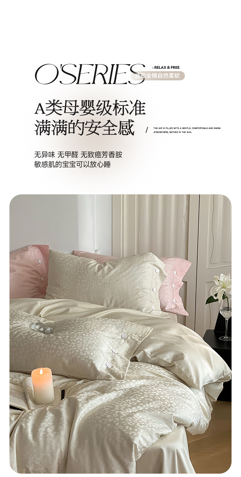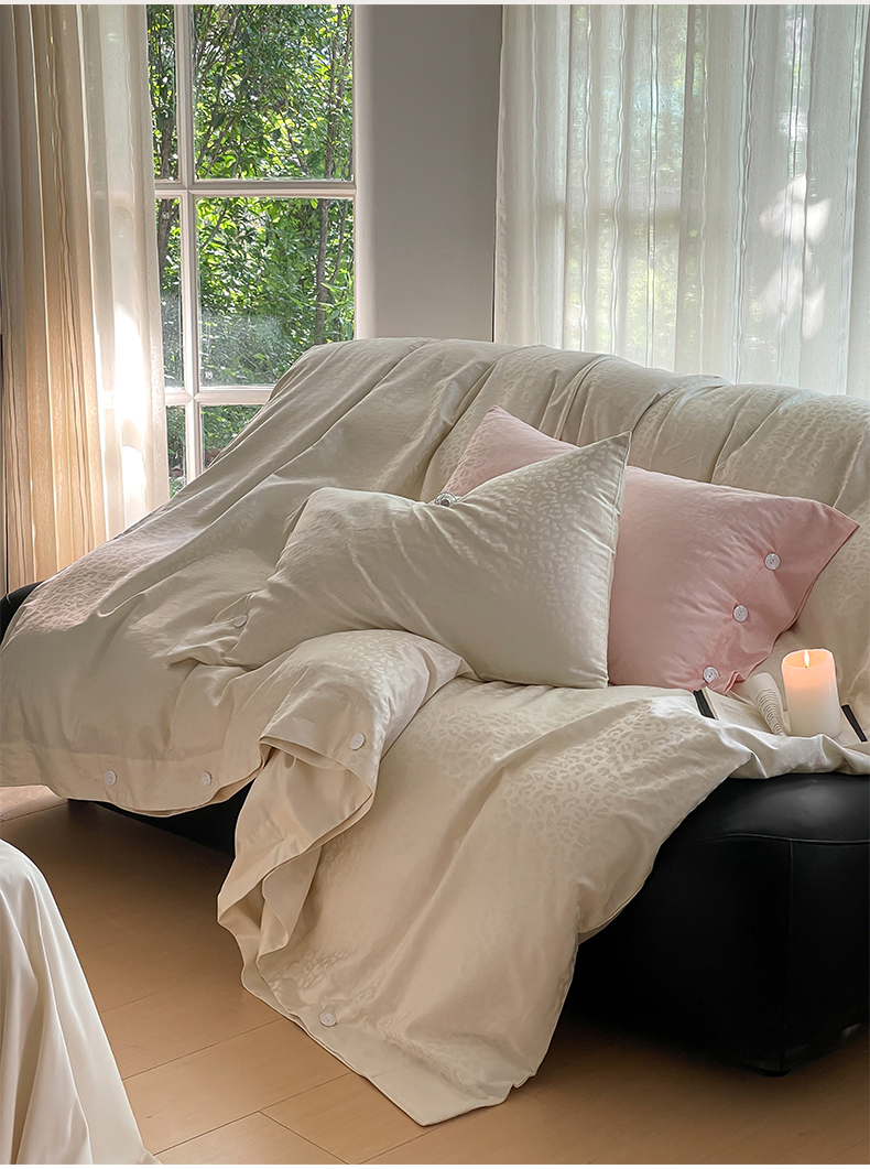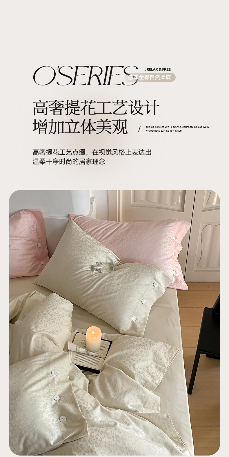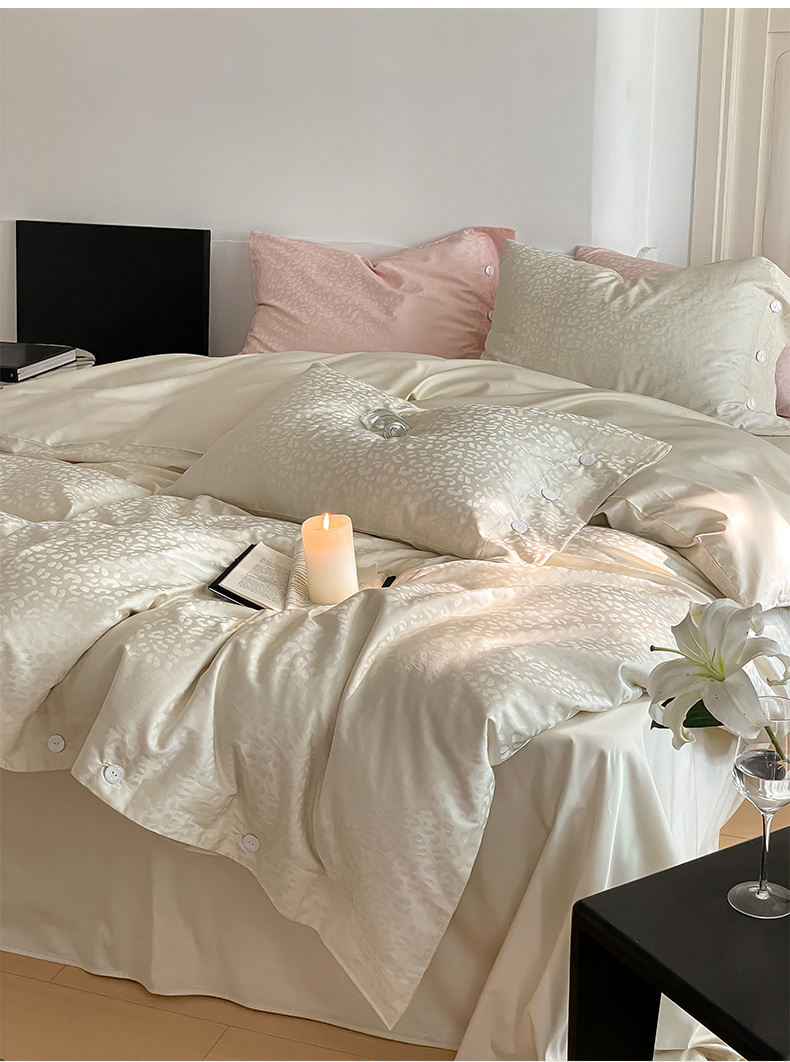 当前位置: 91家纺网 > 商品网购 > 床品套件 > 四件套 > 全棉普通四件套 > 华超针织2025新款100支全棉长绒棉提花四件套-觅豹系列 觅豹白