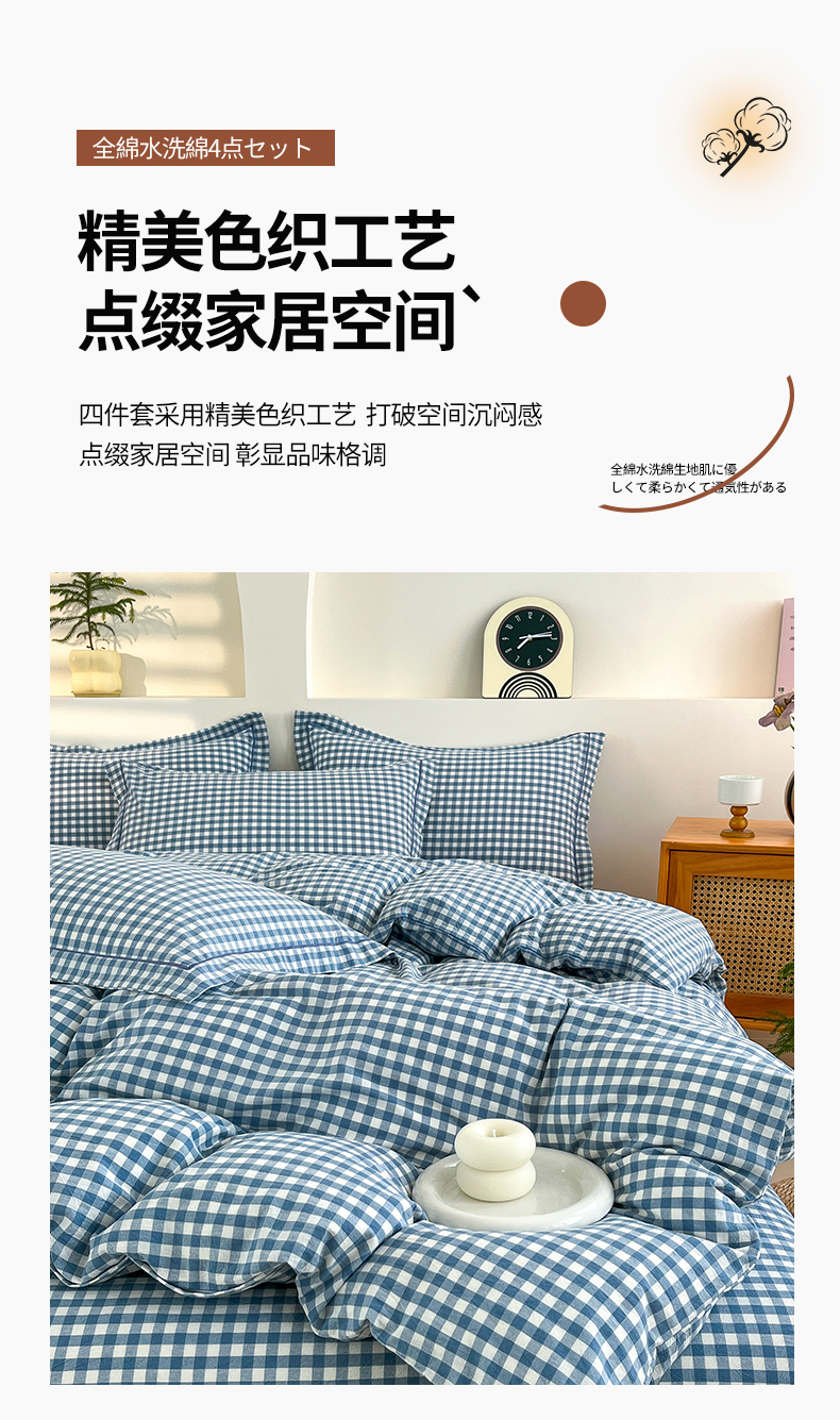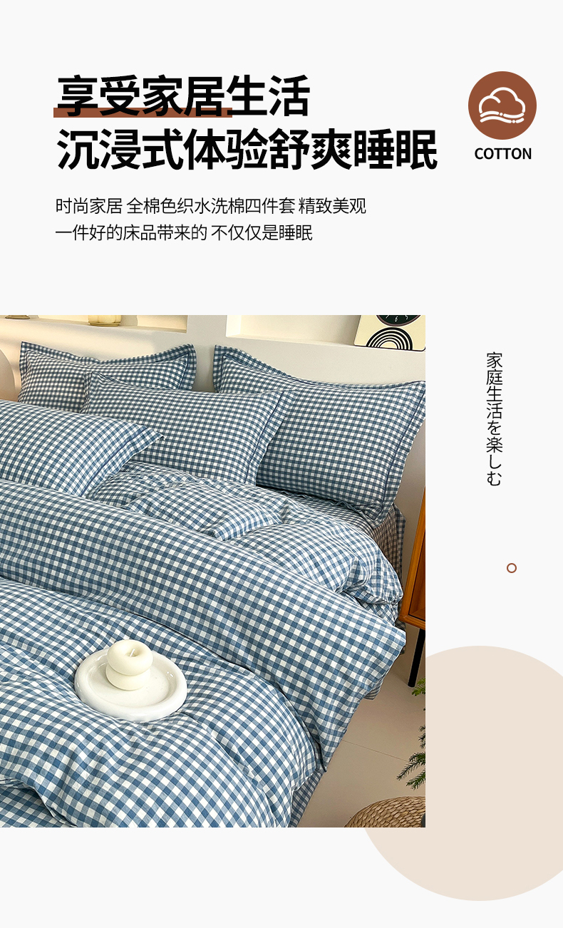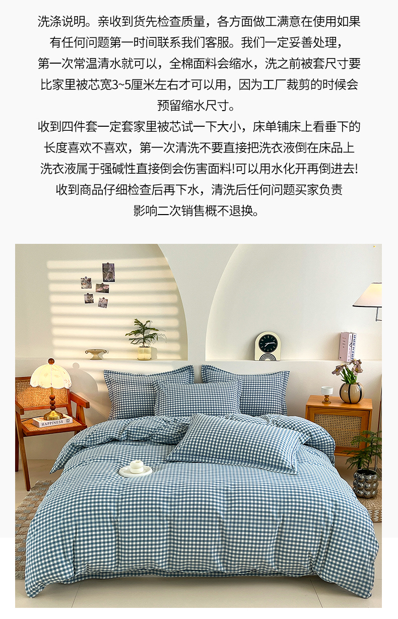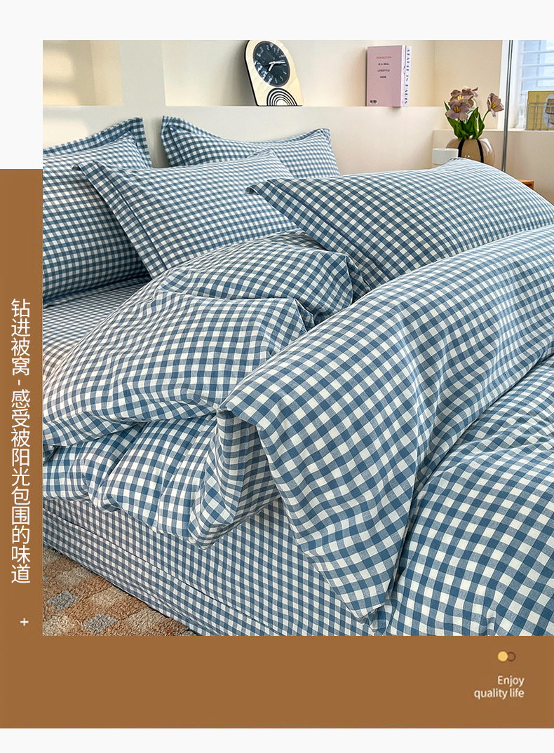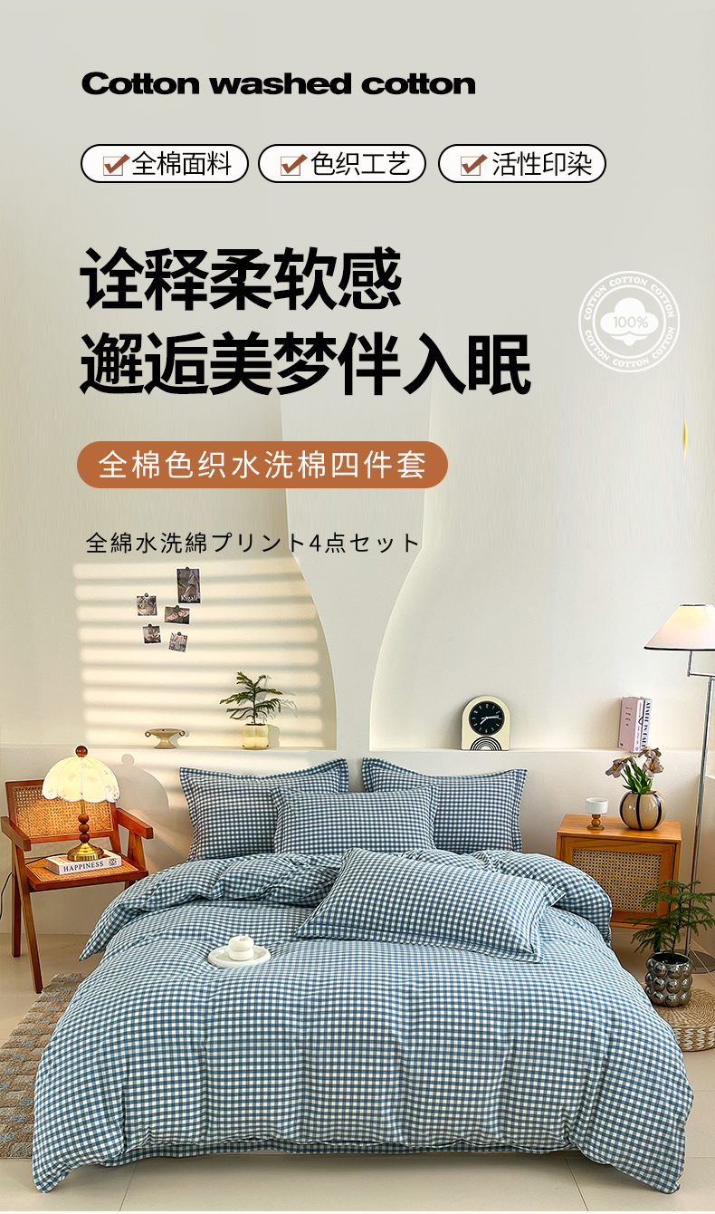 (总)金窝窝家纺 2025新款纯棉水洗棉四件套,爱锦灰,巴黎彩格,巴黎灰,春意盎然淡绿色,大发格粉蓝,大发格绿,多爱多粉,繁星奶咖米格,假日阳光彩格,绿咖时尚格,绿小格,米格,浅蓝小格,三彩格,时尚风蓝灰,相遇兰橙,相遇小粉,意境蓝灰,优雅粉格,优雅橘,优雅兰