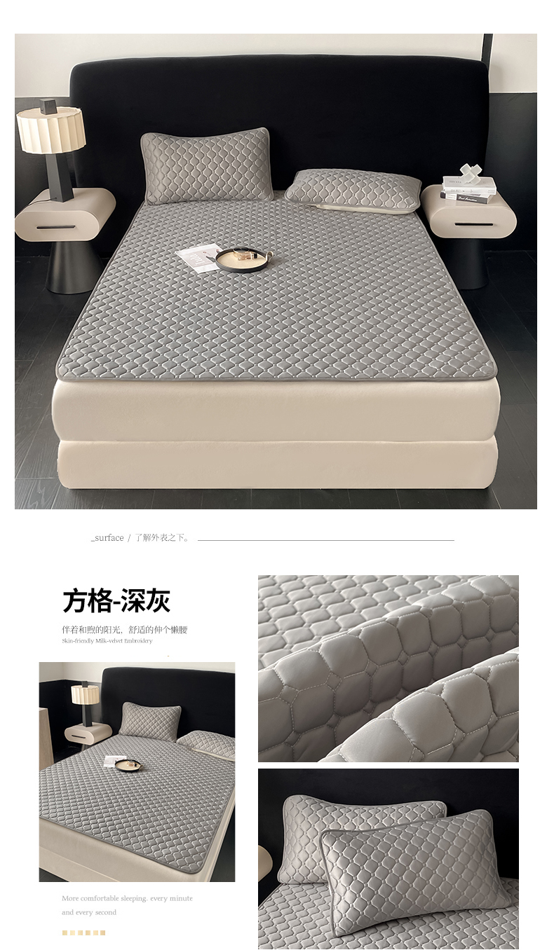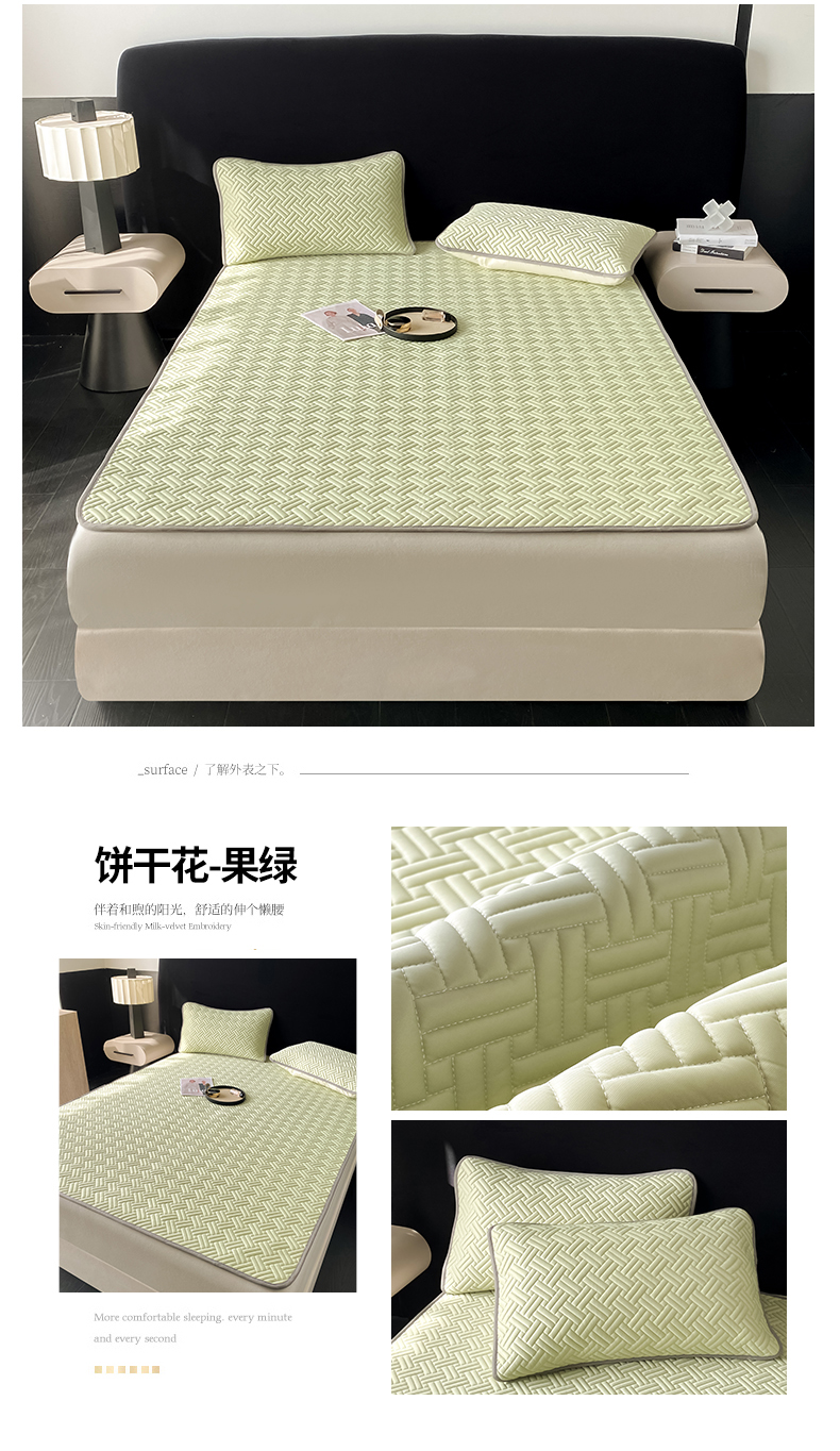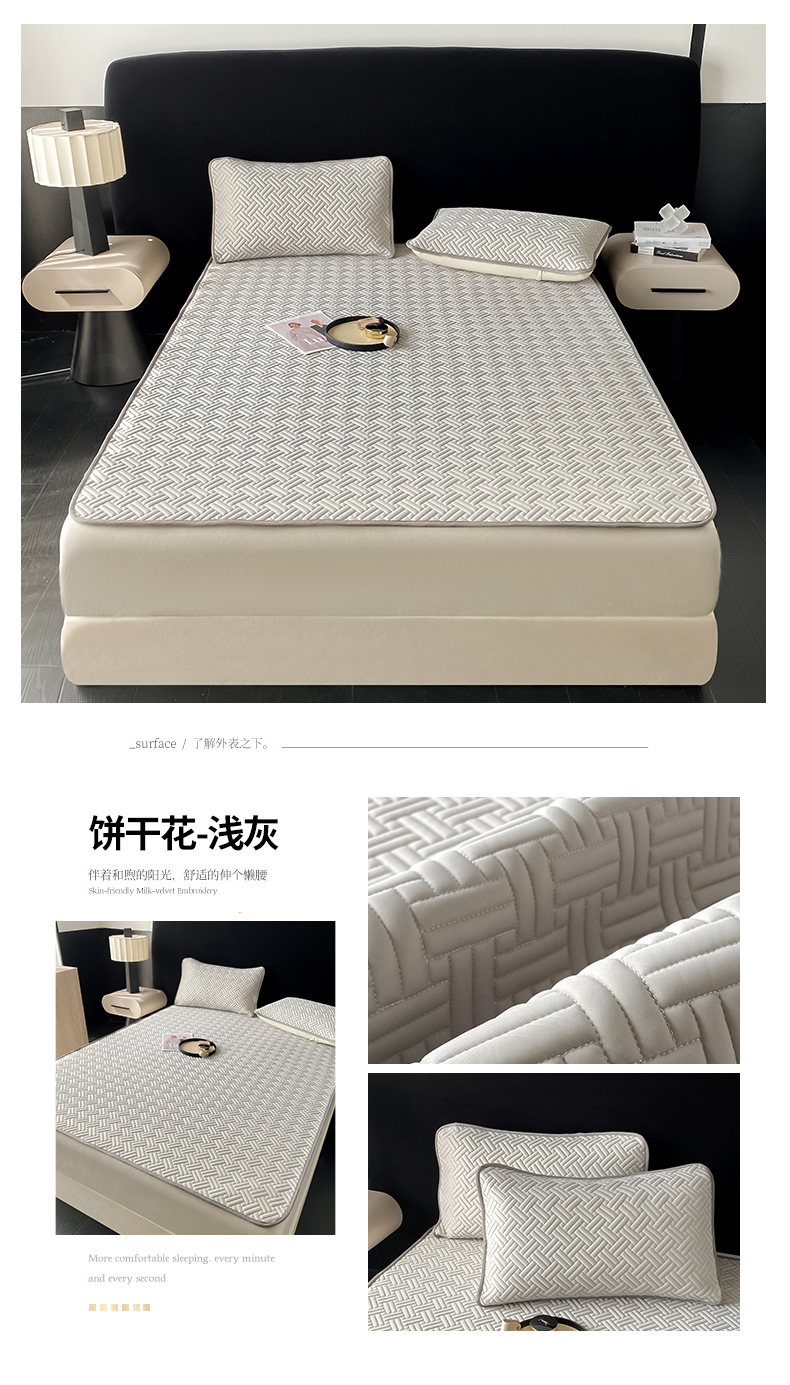 (总)欧邦 2025新款提花暖阳绒单床笠,苍穹蓝,初雪白,海棠粉,慕斯灰,青瓷绿,檀木咖