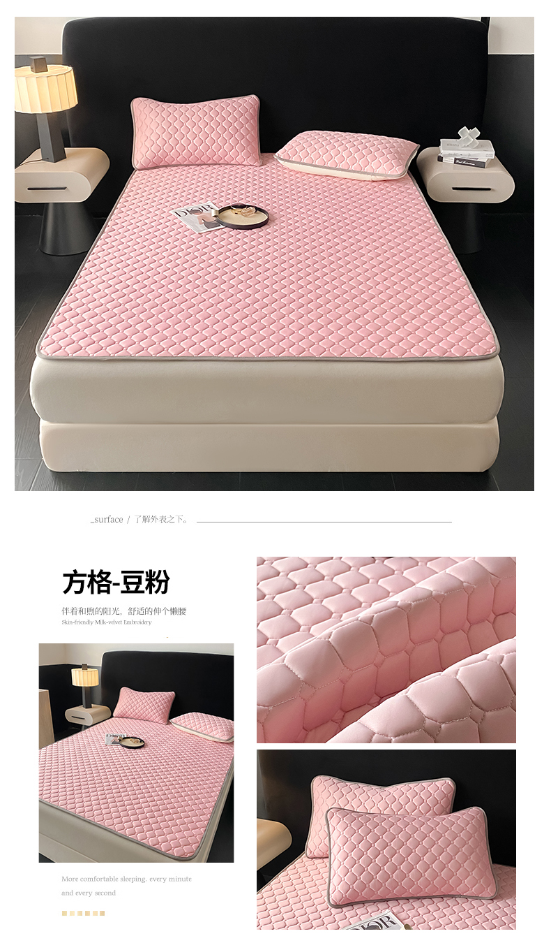 (总)欧邦 2025新款提花暖阳绒单床笠,苍穹蓝,初雪白,海棠粉,慕斯灰,青瓷绿,檀木咖