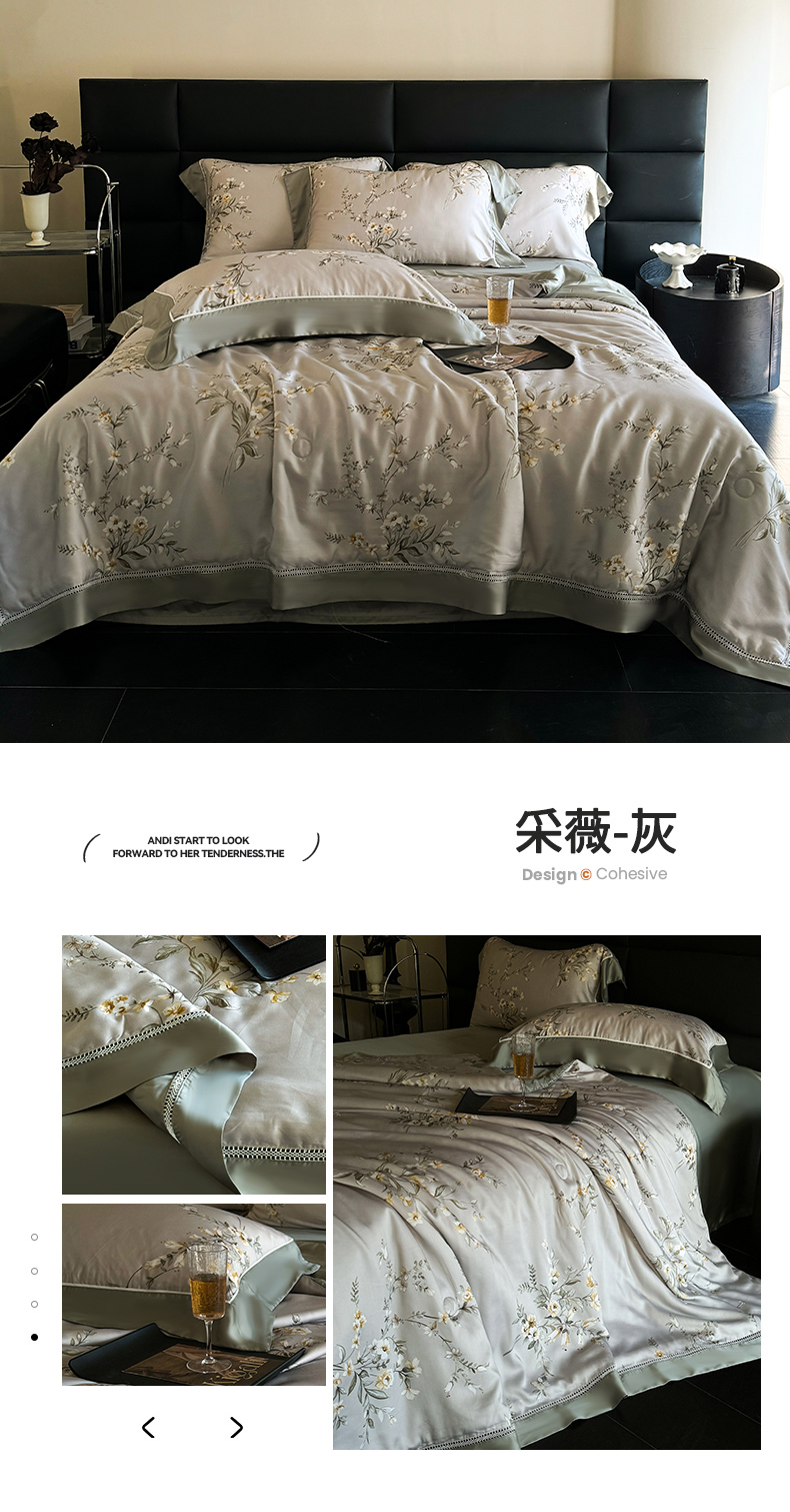 娇逸家居 2025新品60支天丝数码印花高端夏被四件套 采薇-灰