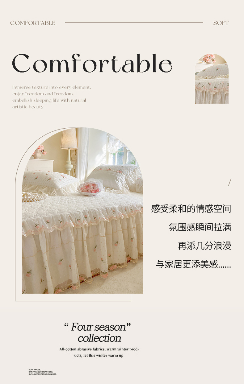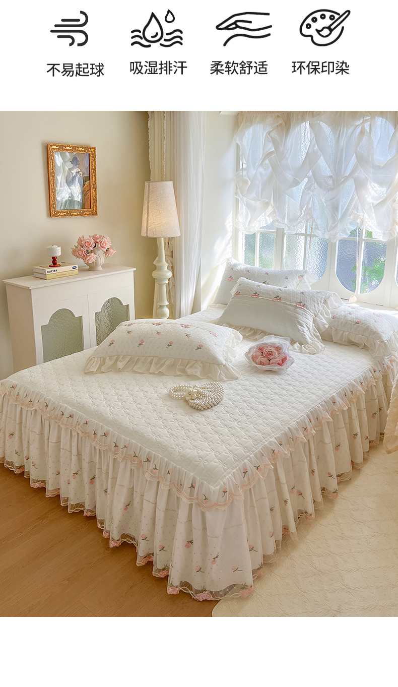 商品名称:(总)网红馆(ck家纺)2025新款优舒棉蕾丝花边床裙三件套-玛格丽