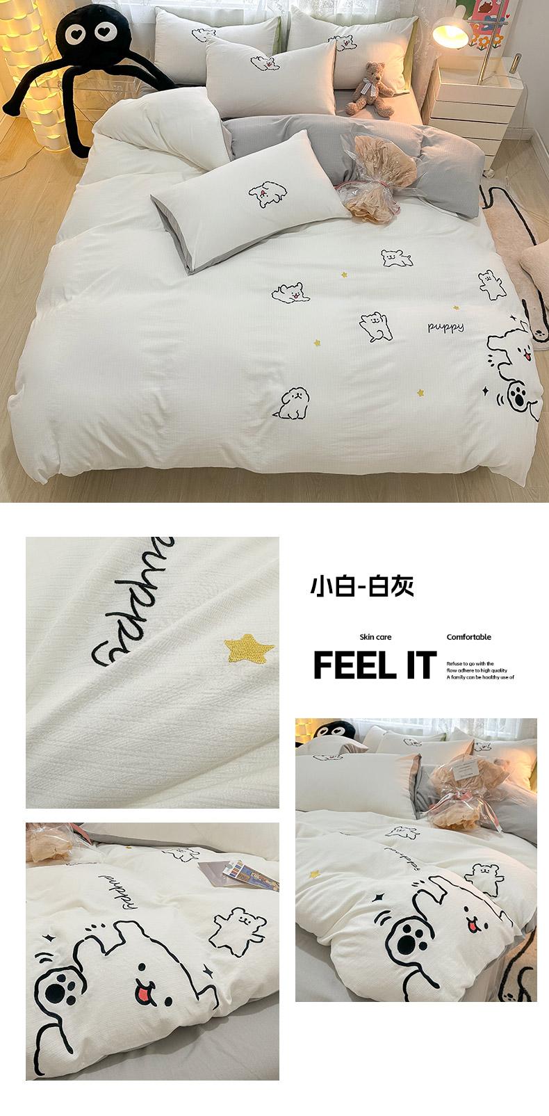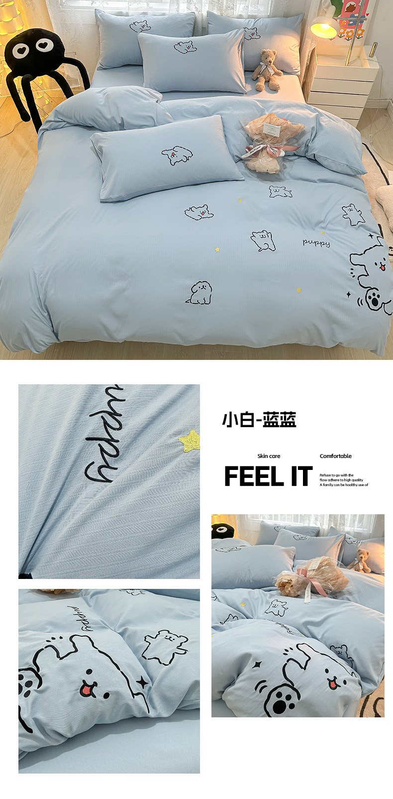 当前位置: 91家纺网 > 商品网购 > 床品套件 > 四件套 > 针织棉四件套 > 多乐家纺 2025新款超柔加厚有氧提花针织小竺棉绣花四件套(提供买家秀) 大脸猫-白绿