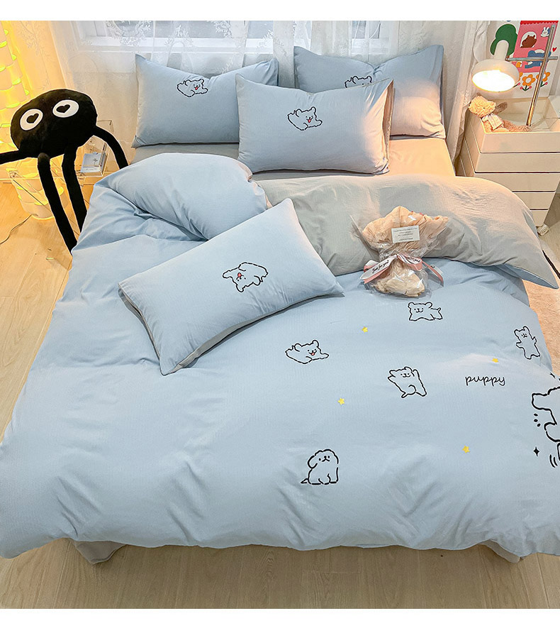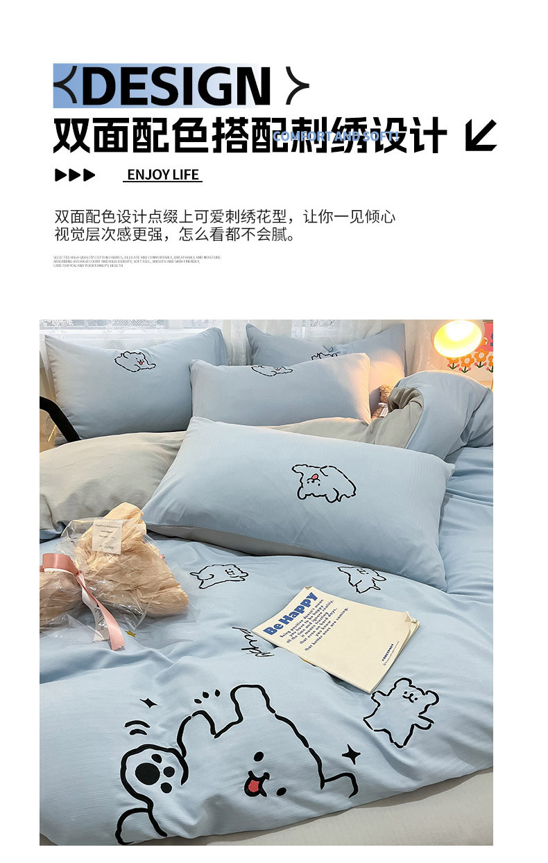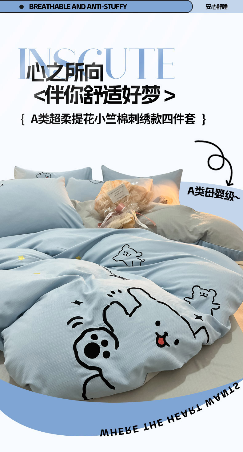 当前位置: 91家纺网 > 商品网购 > 床品套件 > 四件套 > 针织棉四件套 > 多乐家纺 2025新款超柔加厚有氧提花针织小竺棉绣花四件套(提供买家秀) 小白-蓝灰