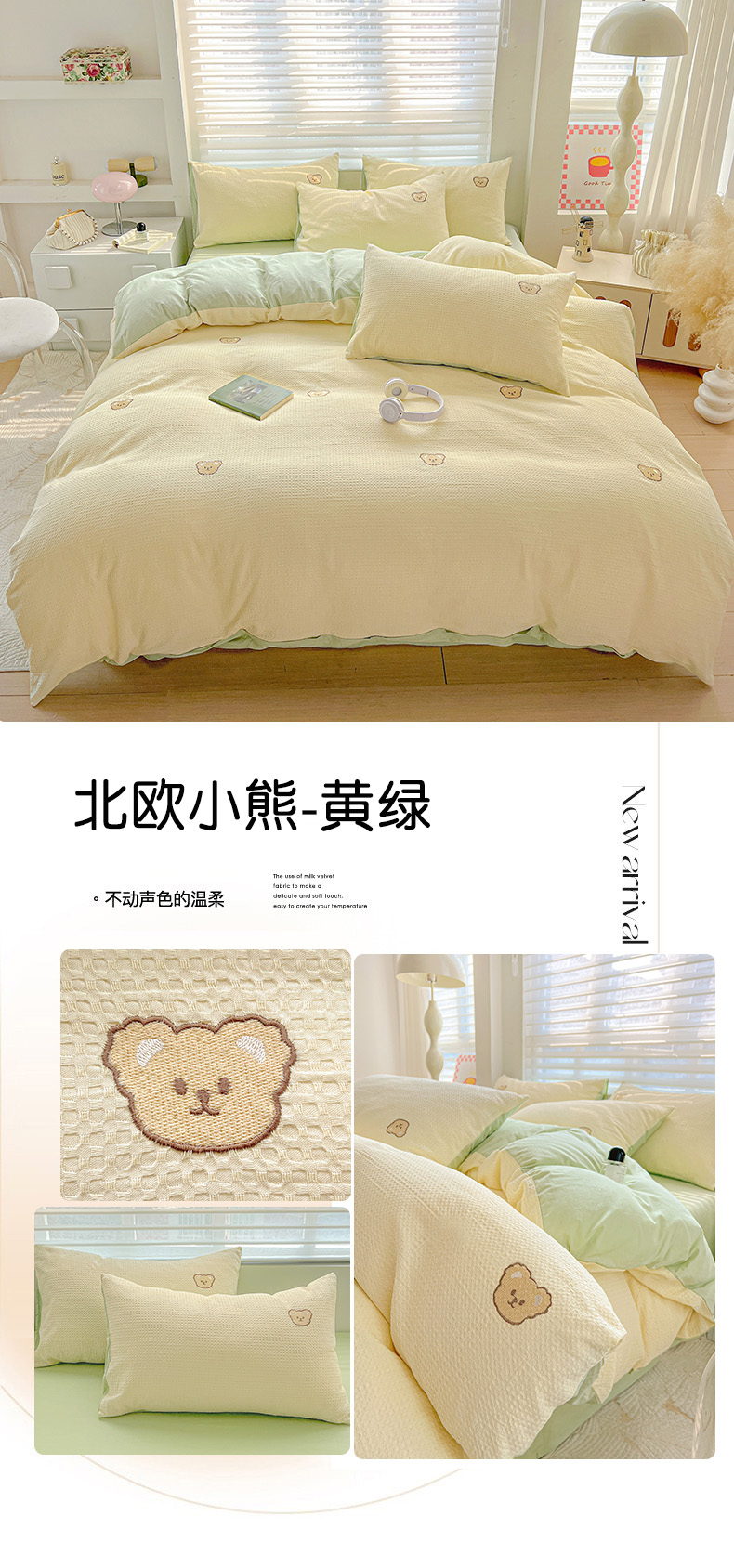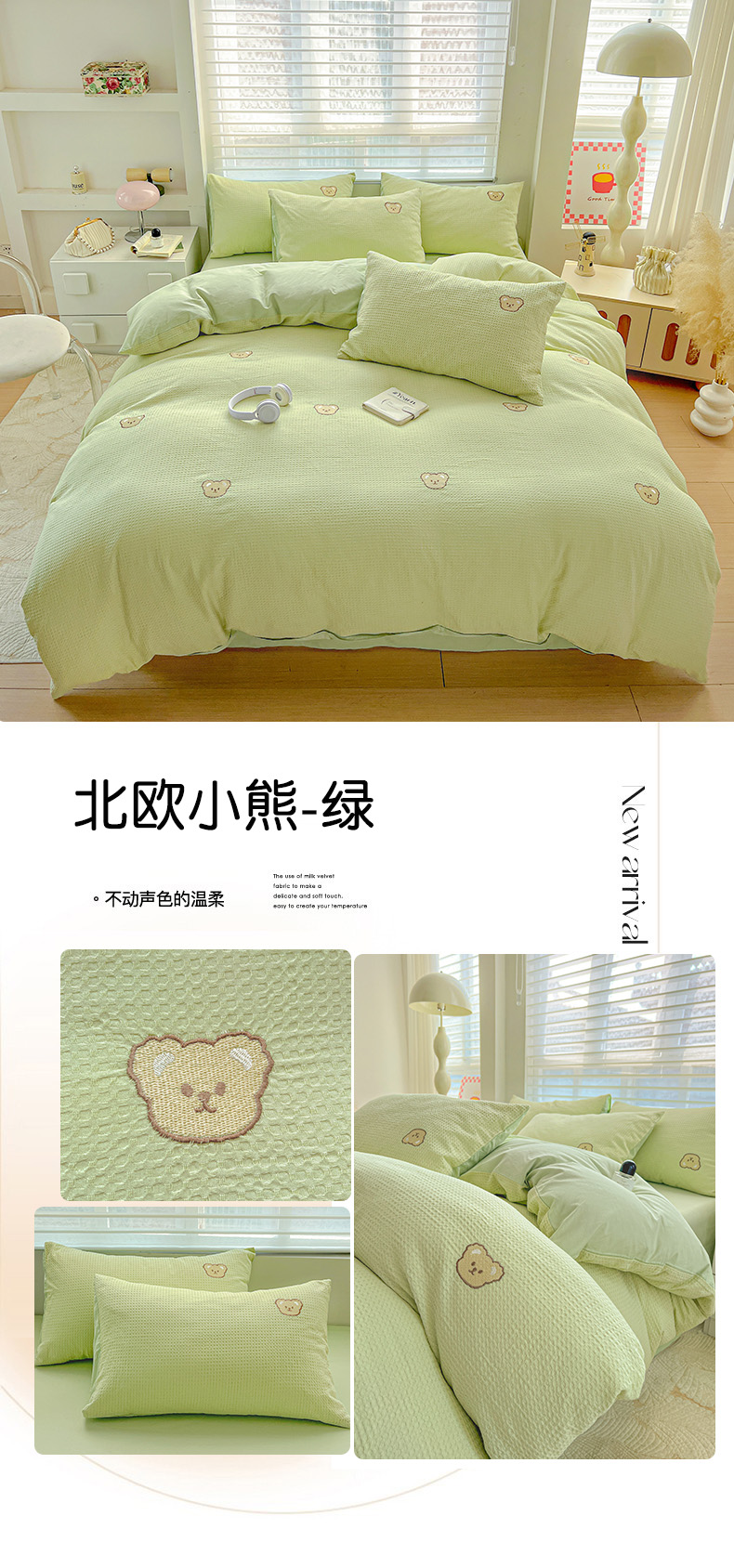 (总)静家居 2025新款全棉纯棉华夫格北欧小熊刺绣四件套系列-风格二,北欧小熊-白咖,北欧小熊-鹅黄,北欧小熊-粉玉,北欧小熊-黄绿,北欧小熊-咖,北欧小熊-露草,北欧小熊-绿,北欧小熊-浅灰
