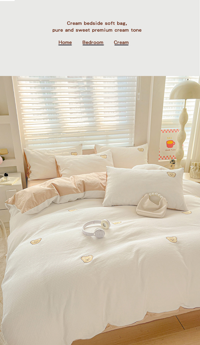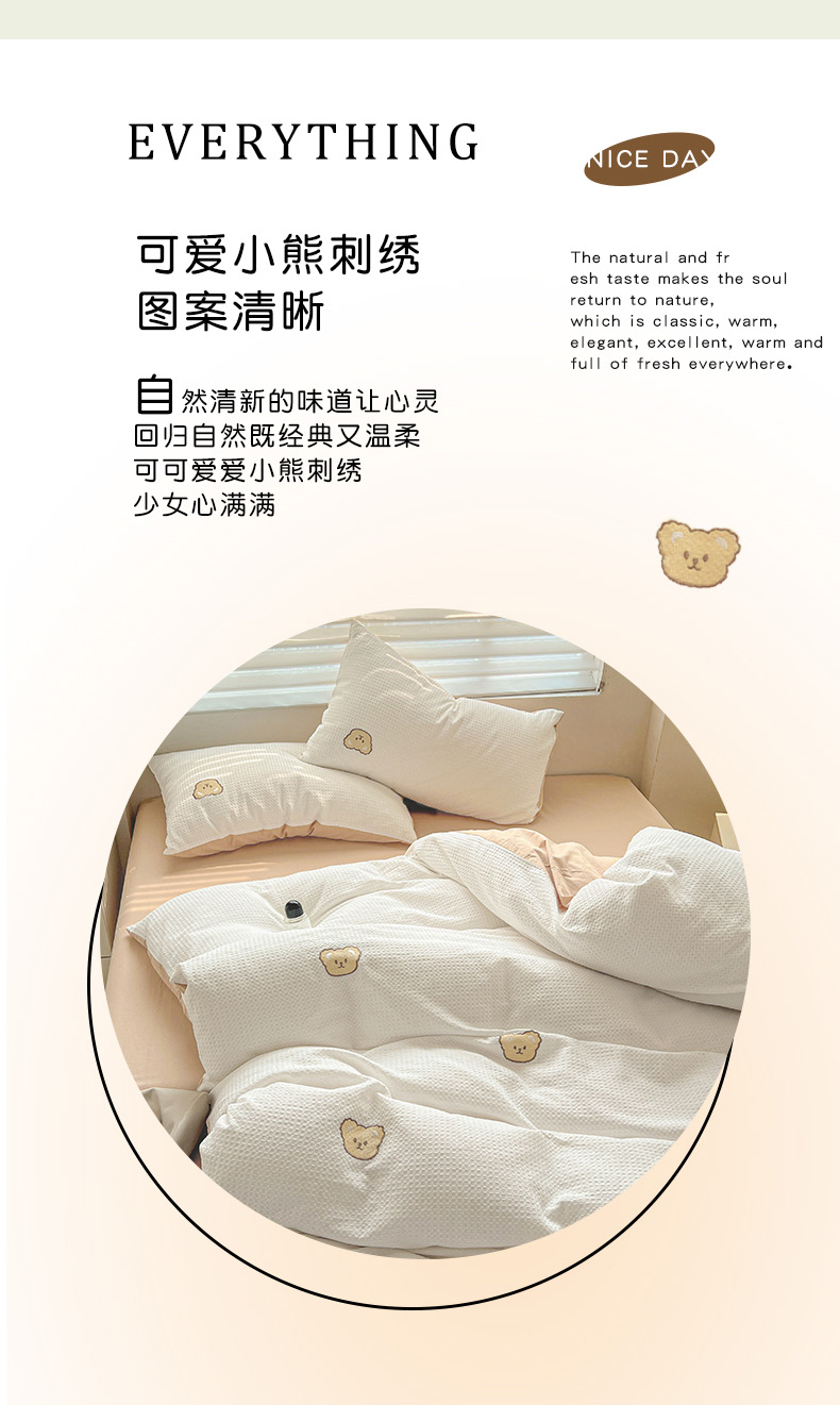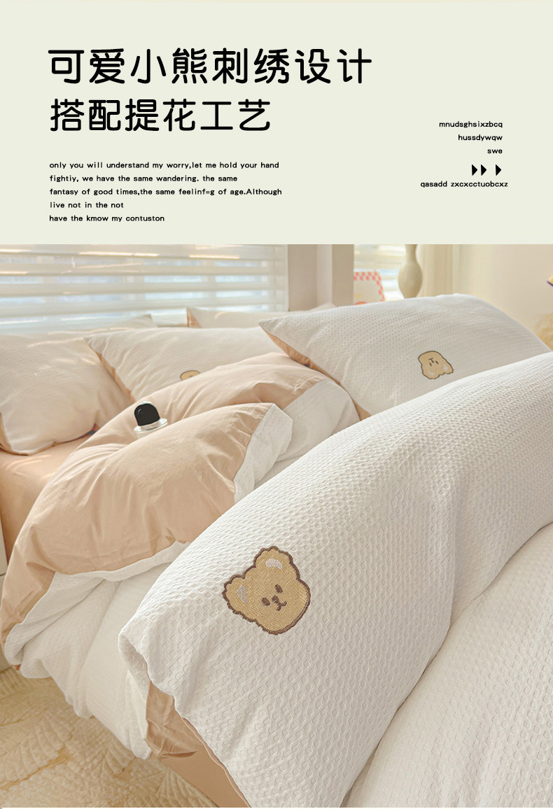 商品名称:(总)静家居 2025新款全棉纯棉华夫格北欧小熊刺绣四件套系列-风格一