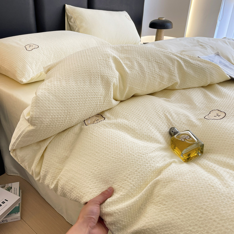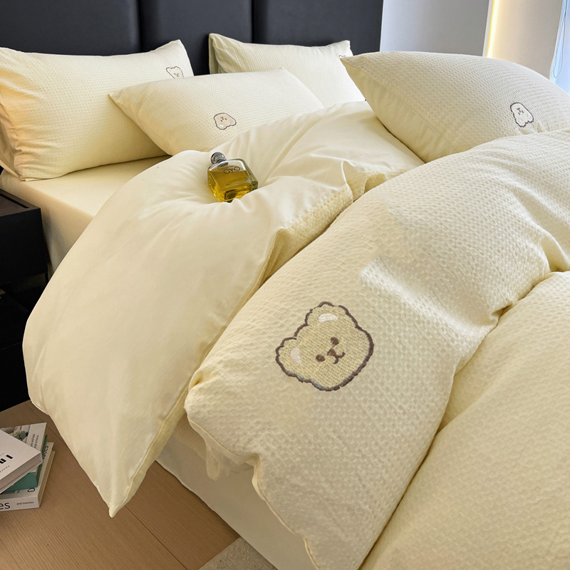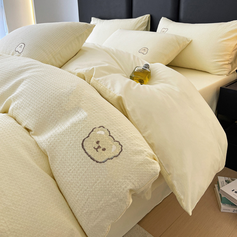 当前位置: 91家纺网 > 商品网购 > 床品套件 > 四件套 > 全棉普通四件套 > 静家居 2025新款全棉纯棉华夫格北欧小熊刺绣四件套系列-风格二 北欧小熊-鹅黄