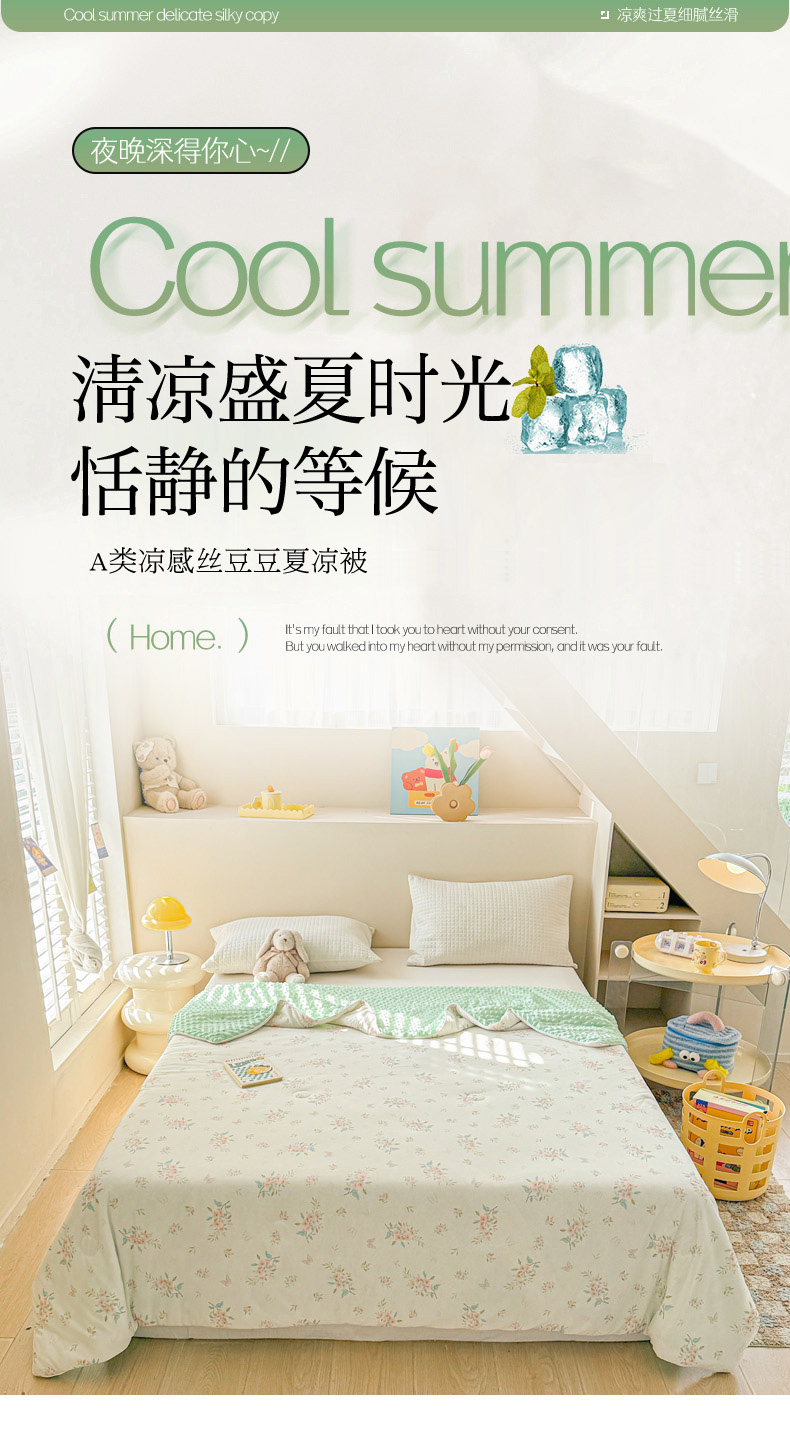 商品名称:米可 2025新款A类凉感丝冰豆豆夏凉被 繁花