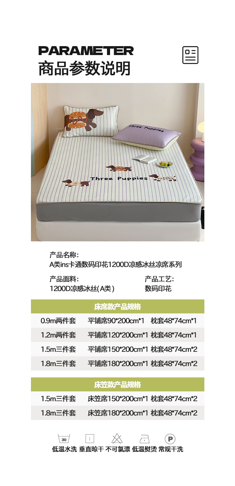 商品名称:(总)桃子家居 2025新款A类ins卡通数码印花1200D冰感冰丝凉席系列