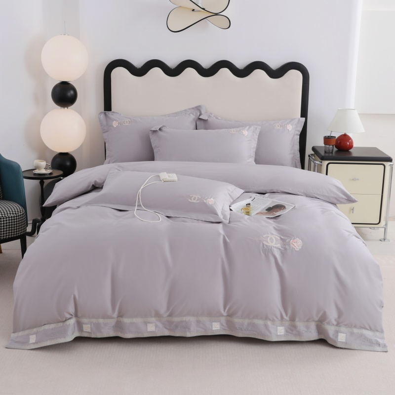 优姿家纺2025新品高端加密全棉100支绣花宽边四件套 奢侈生活-淡雅灰