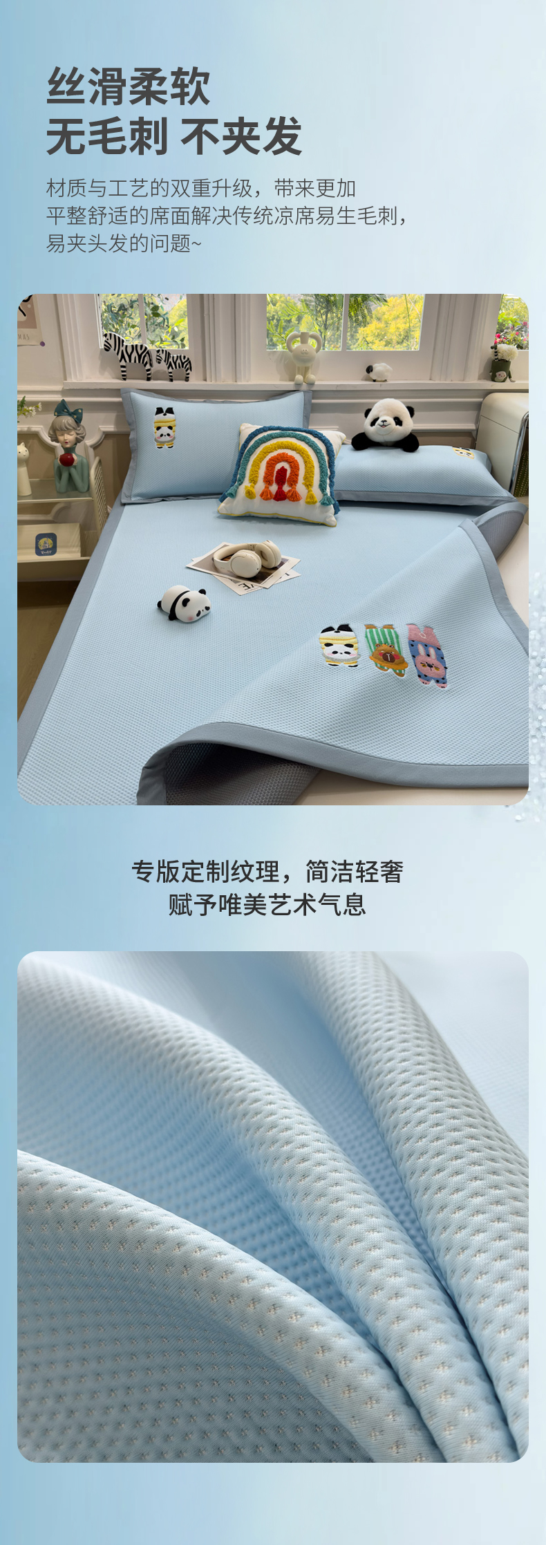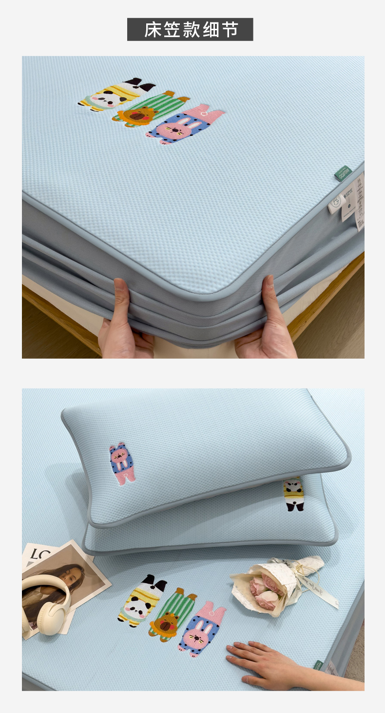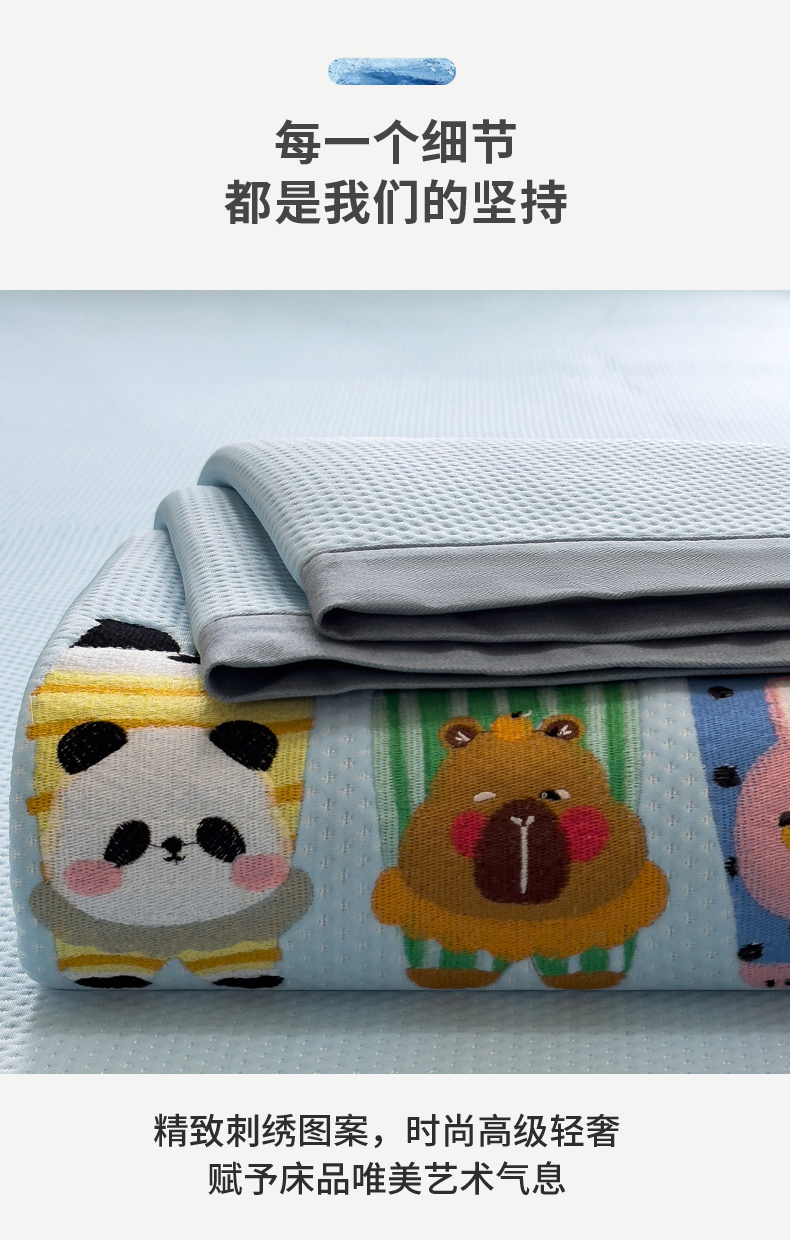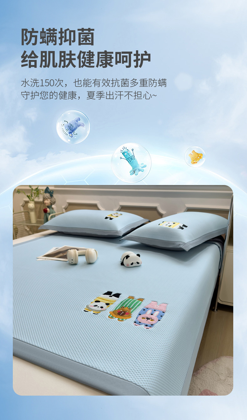 (总)席世家 2025新款A类凉感冰豆豆凉席-花卉卡通系列,呆萌熊猫,绿意,萌兔,小熊-粉,小熊-蓝,花漾