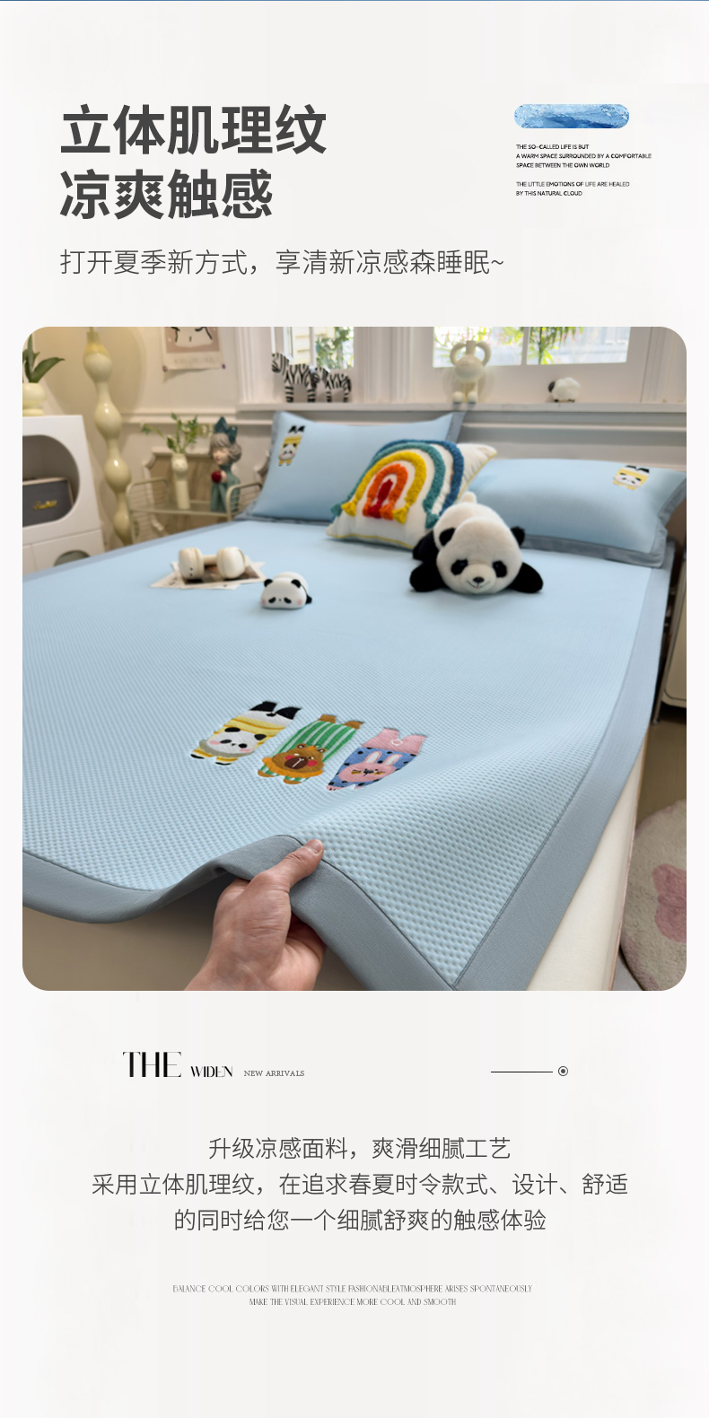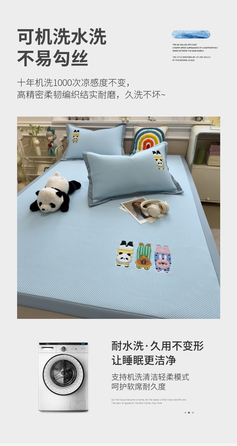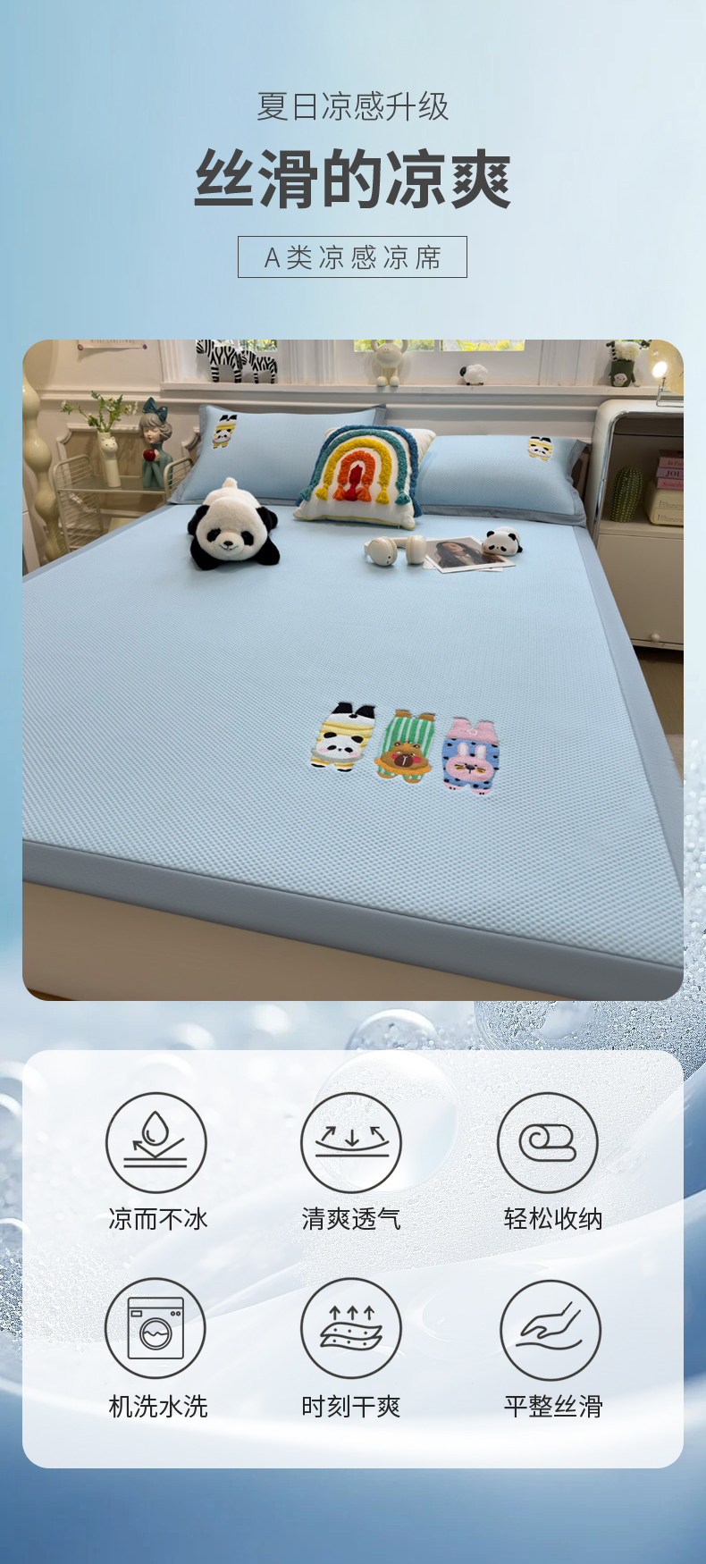 (总)席世家 2025新款A类凉感冰豆豆凉席-花卉卡通系列,呆萌熊猫,绿意,萌兔,小熊-粉,小熊-蓝,花漾