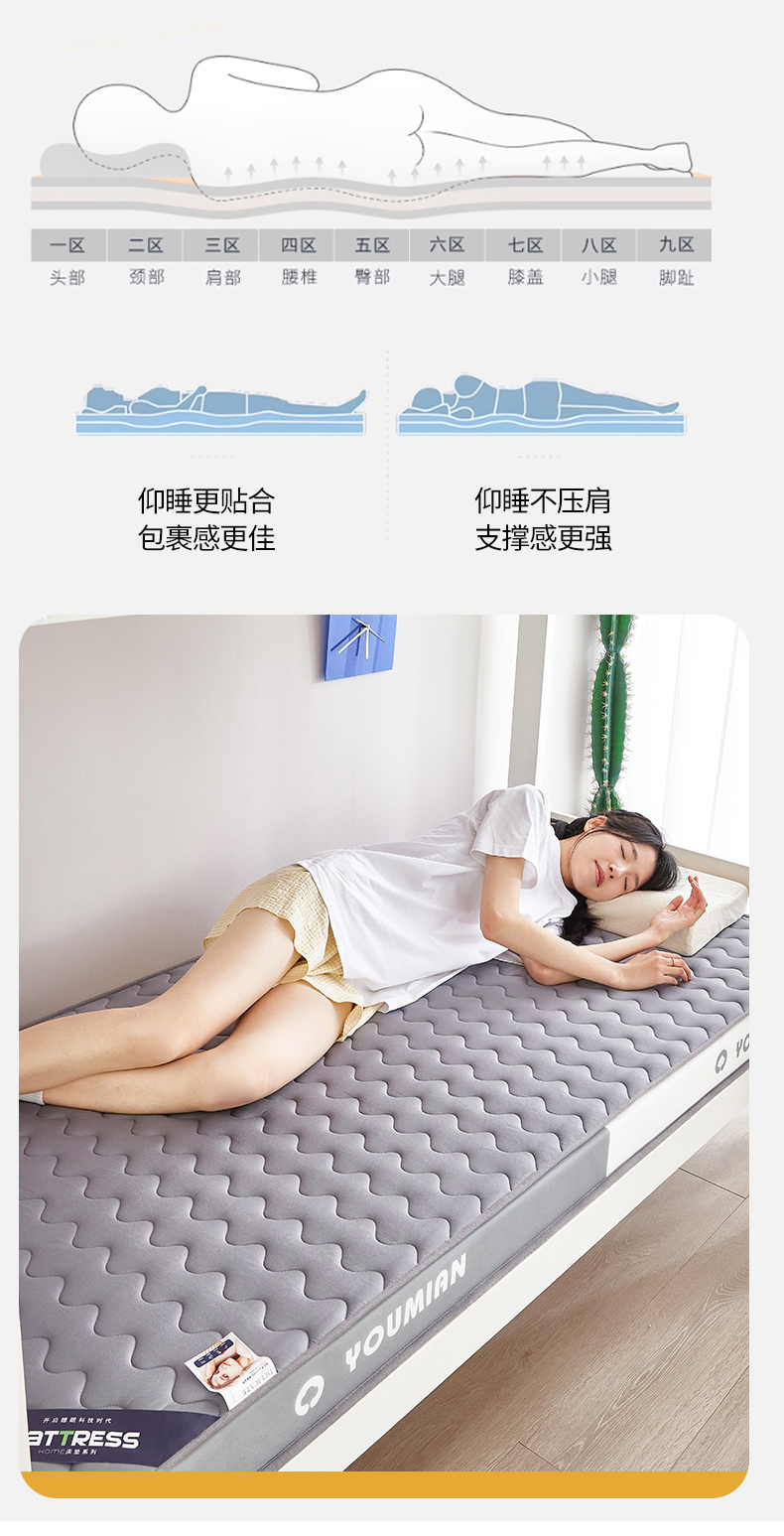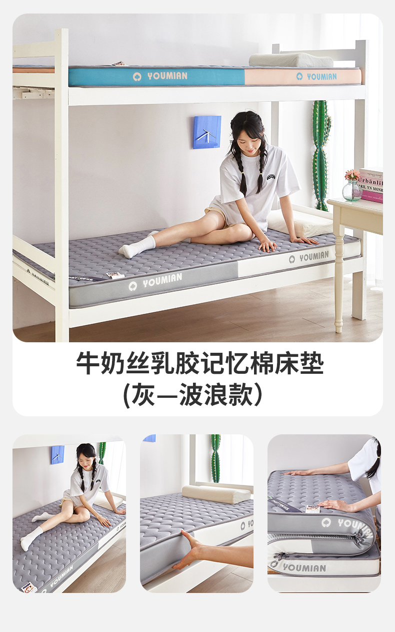 优承佳生活馆(床垫) 2025新款字母牛奶丝双边乳胶床垫-学生款 立体款(字母边)-灰-波浪