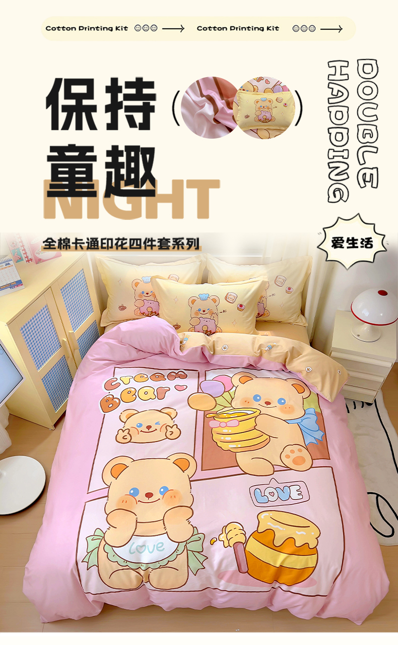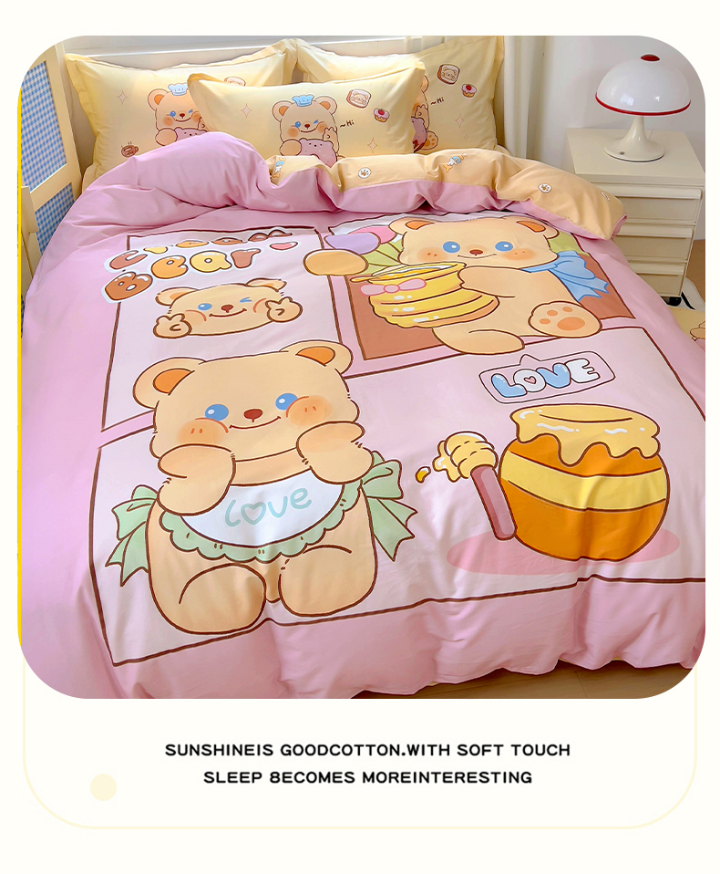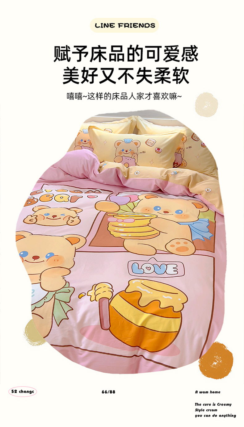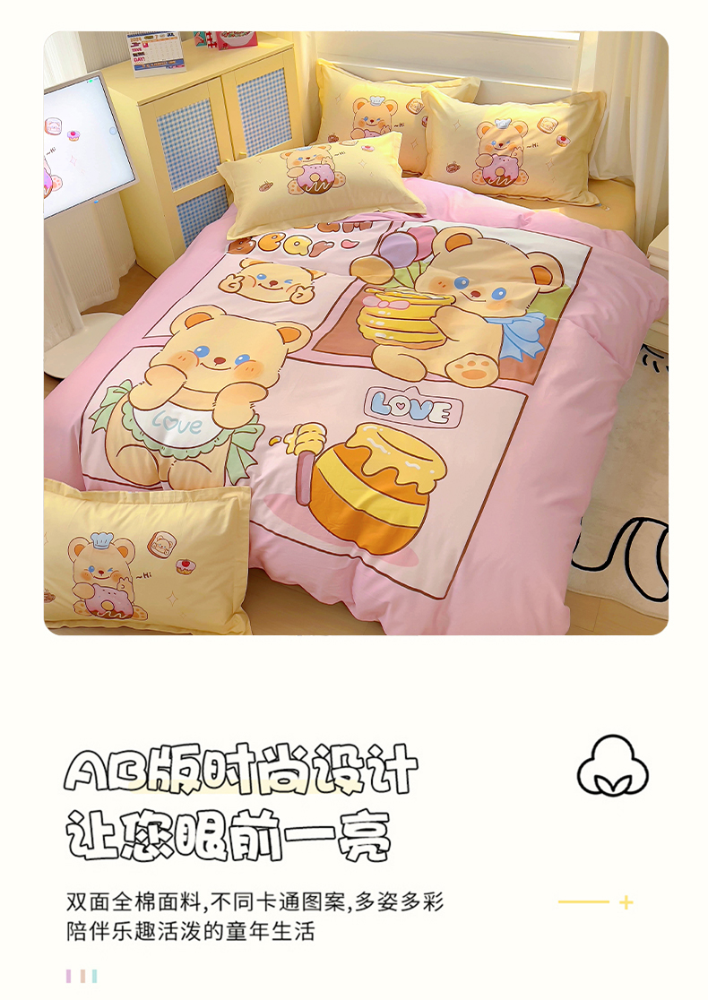 当前位置: 91家纺网 > 商品网购 > 床品套件 > 四件套 > 全棉普通四件套 > 浩诚 2025新款原创IP奶油小熊(黄油小熊)全棉纯棉四件套 蜂蜜小熊